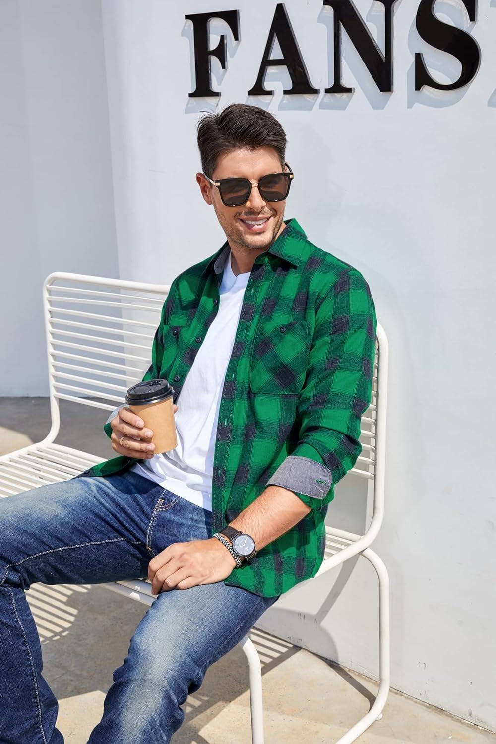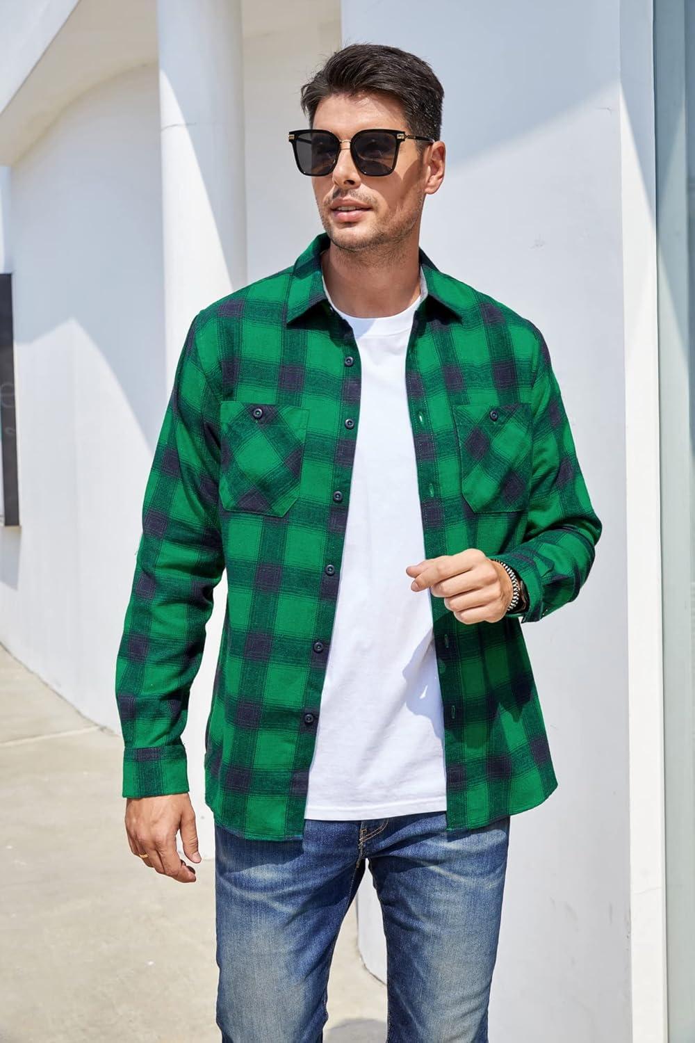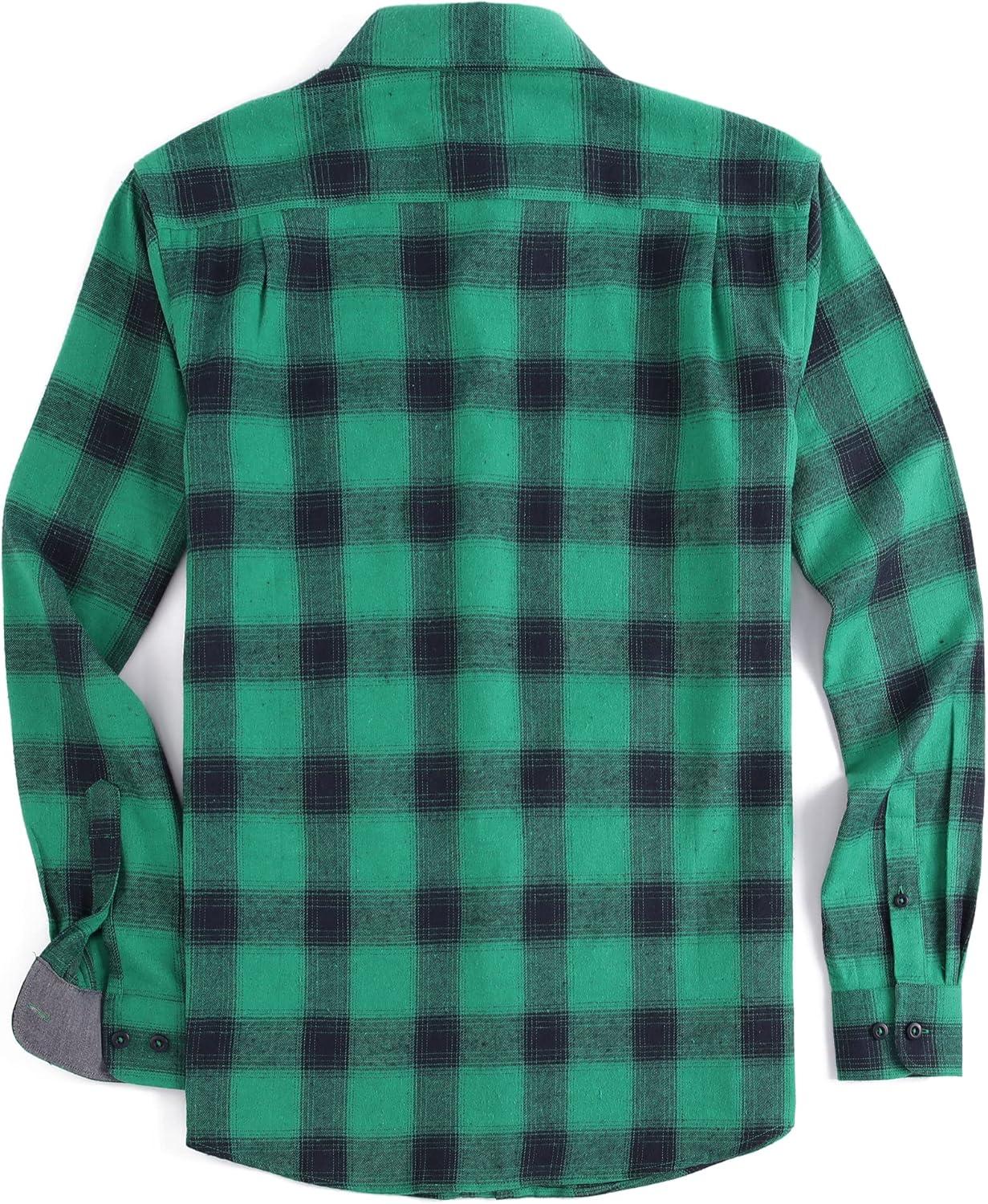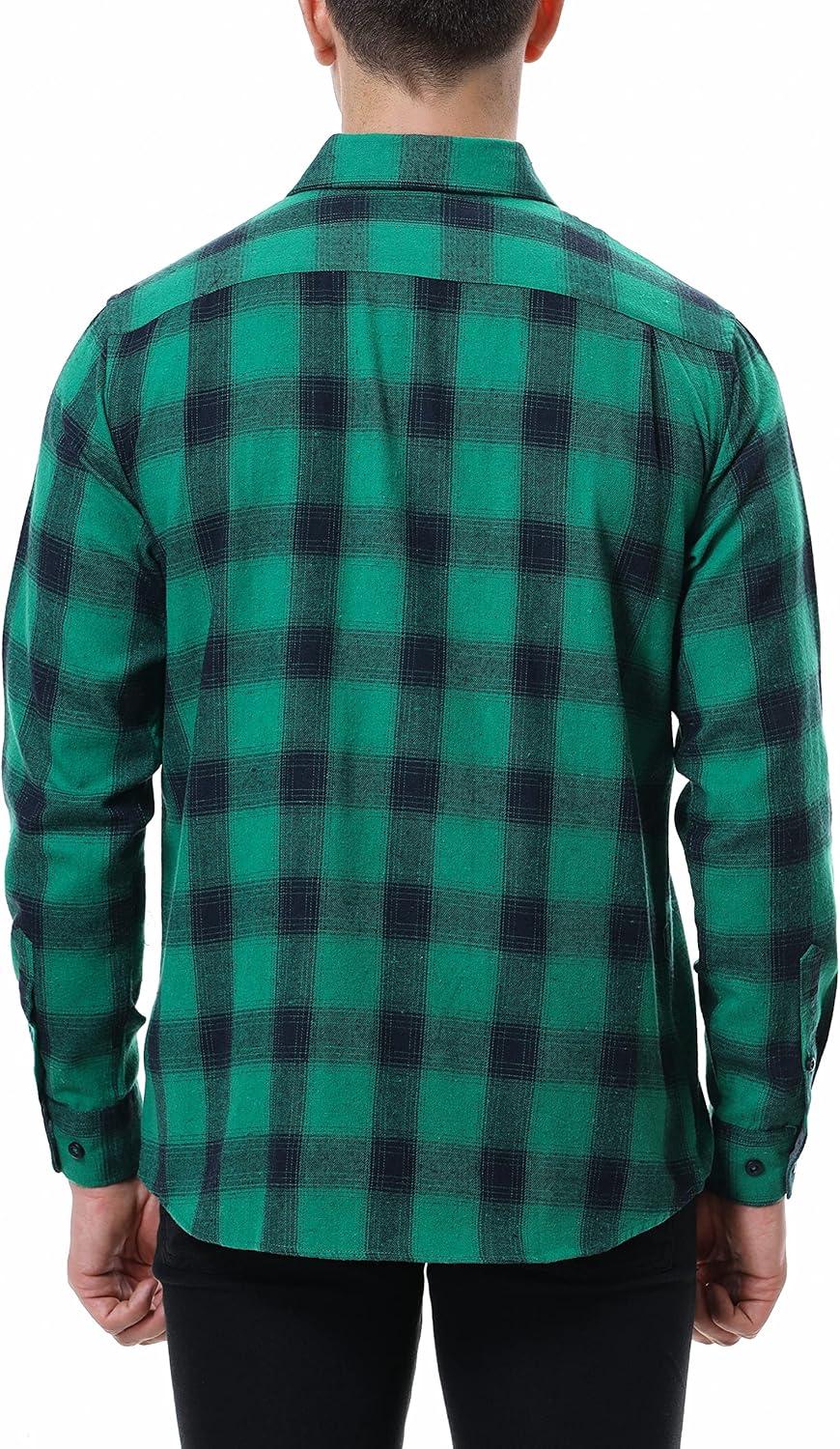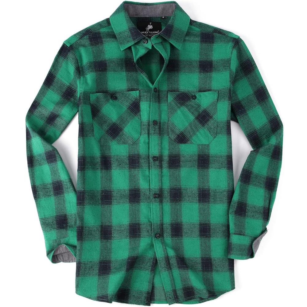 Alex Vando Mens Button Down Shirts Flannel Shirt Long Sleeve(Green/Navy)