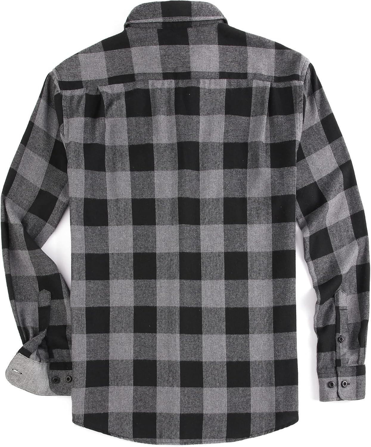 Alex Vando Mens Button Down Shirts Flannel Shirt Long Sleeve(Grey/Coffee)