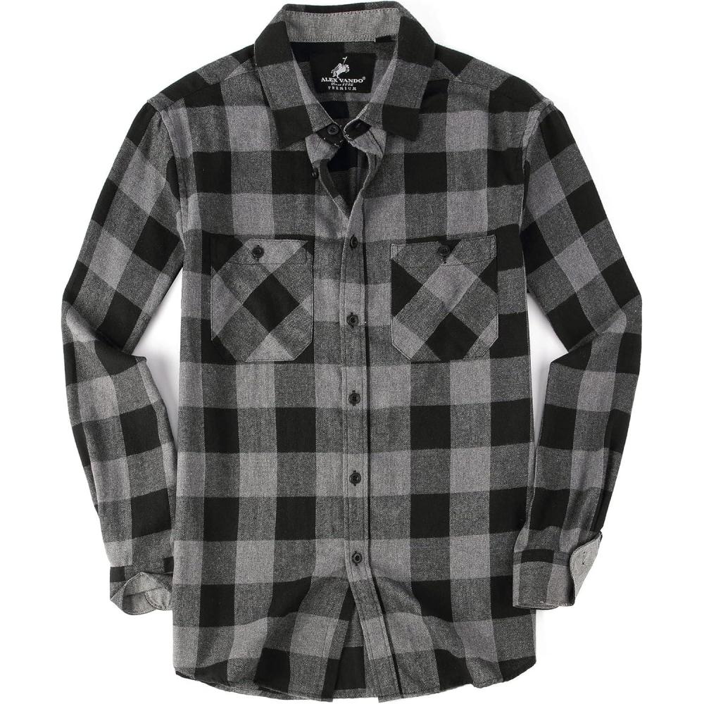Alex Vando Mens Button Down Shirts Flannel Shirt Long Sleeve(Grey/Black)