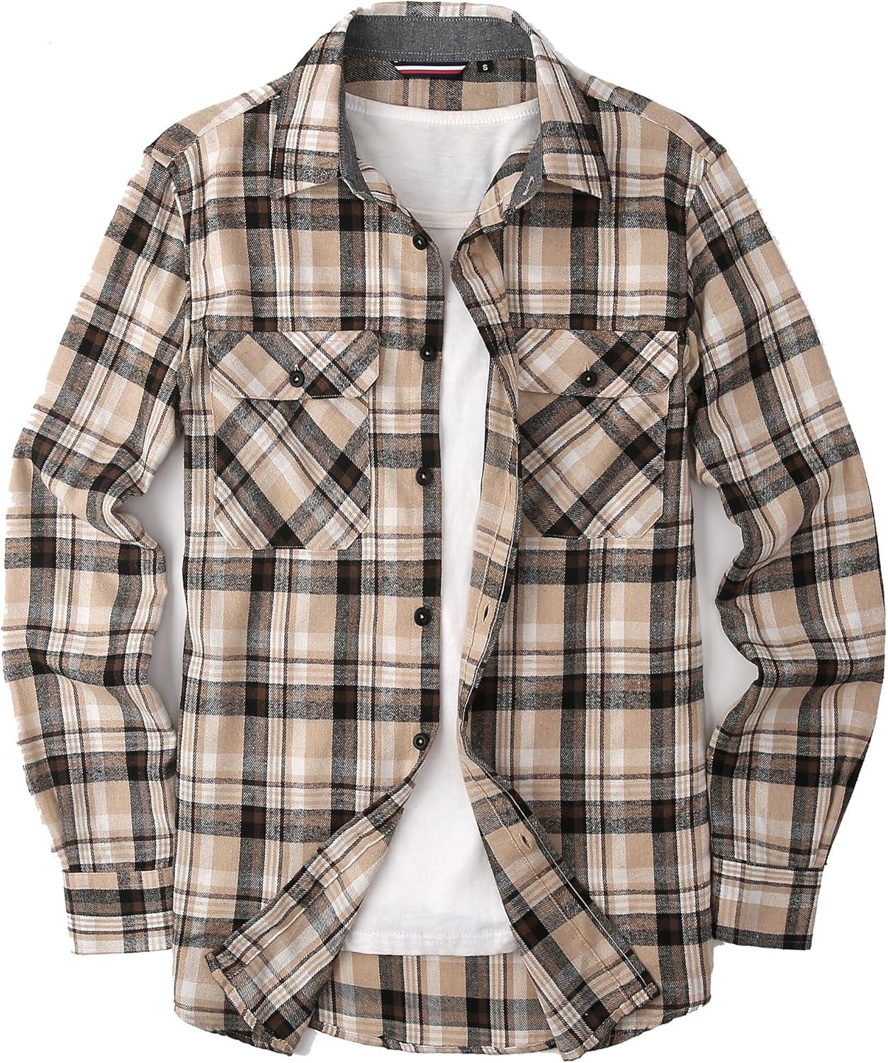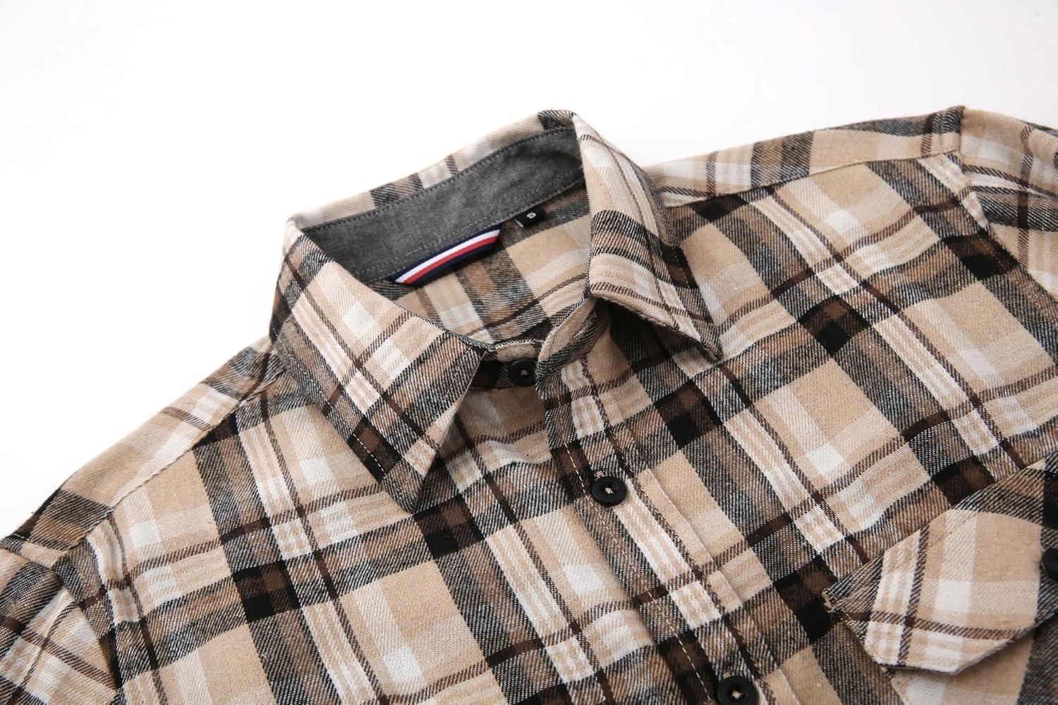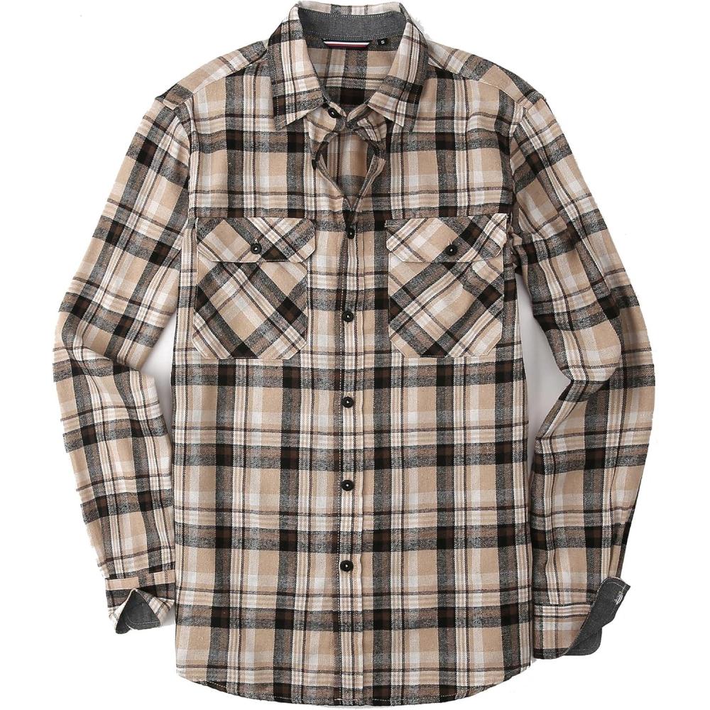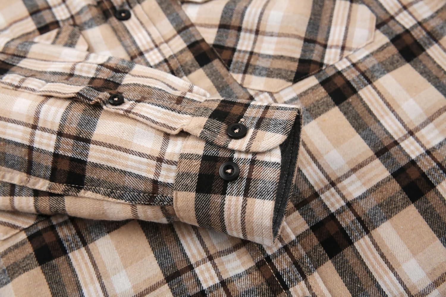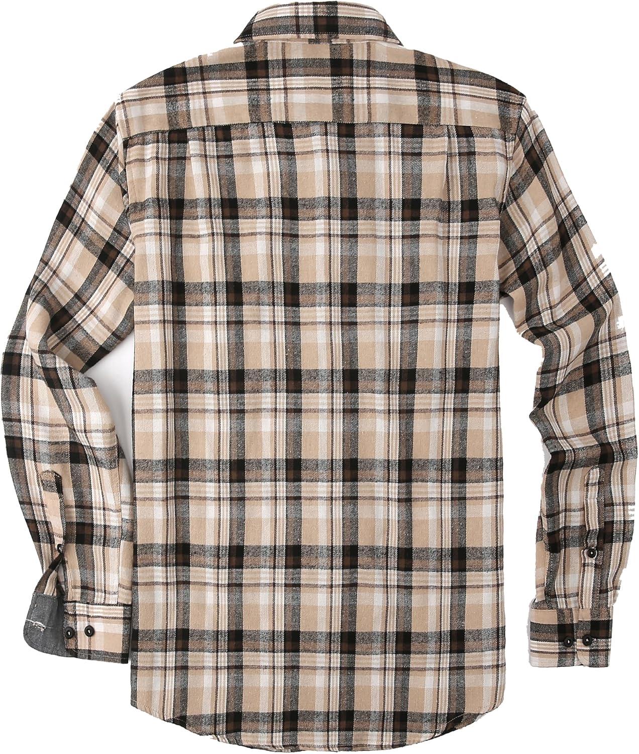 Alex Vando Mens Button Down Shirts Flannel Shirt Long Sleeve(Khaki/Black 613)