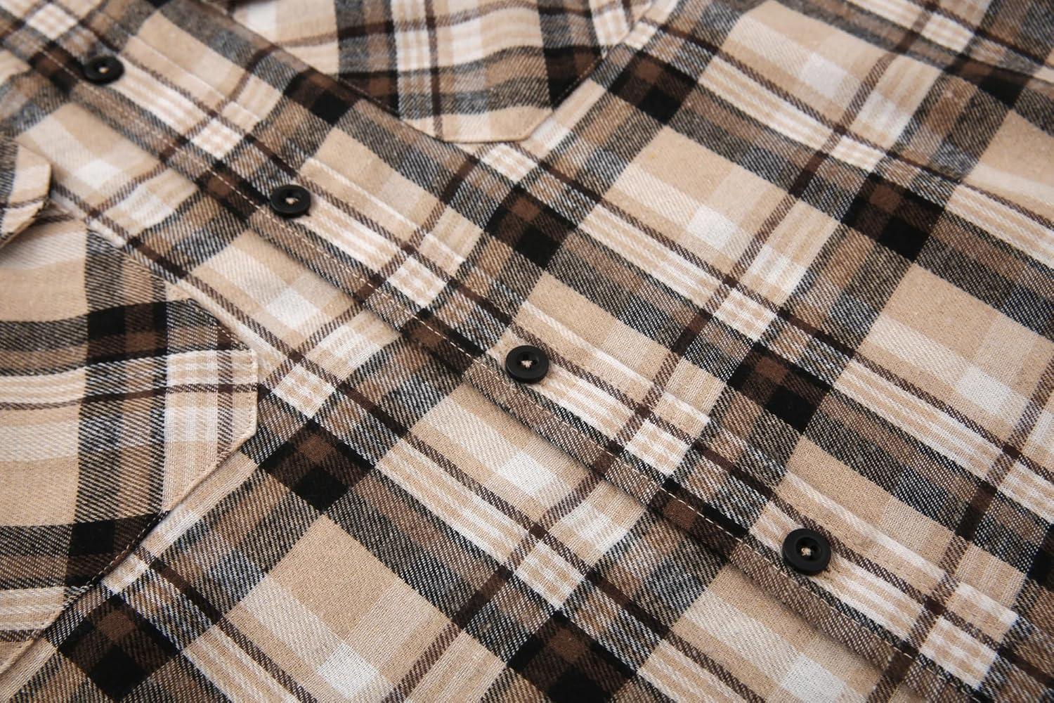 Alex Vando Mens Button Down Shirts Flannel Shirt Long Sleeve(Coffee/White)