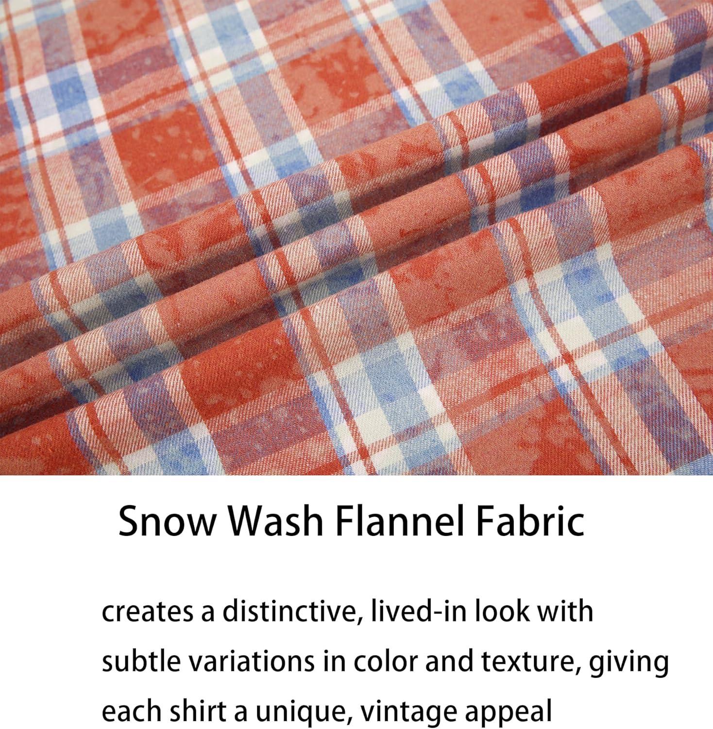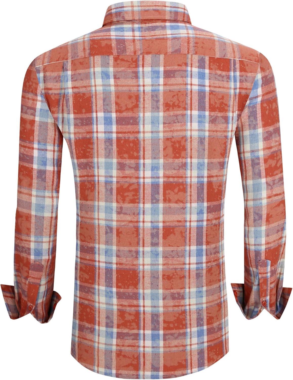 Alex Vando Mens Button Down Shirts Flannel Shirt Long Sleeve(Snow Red)