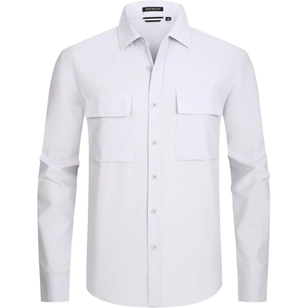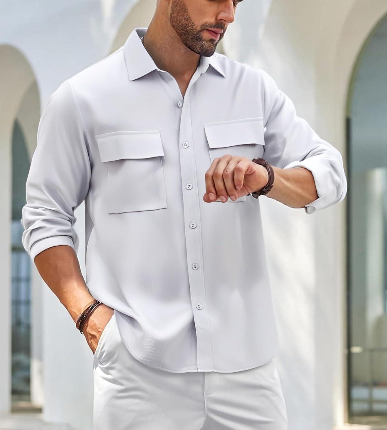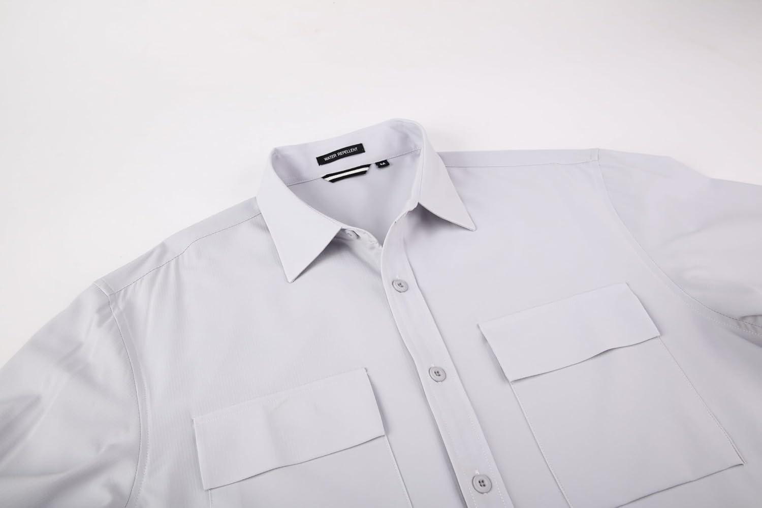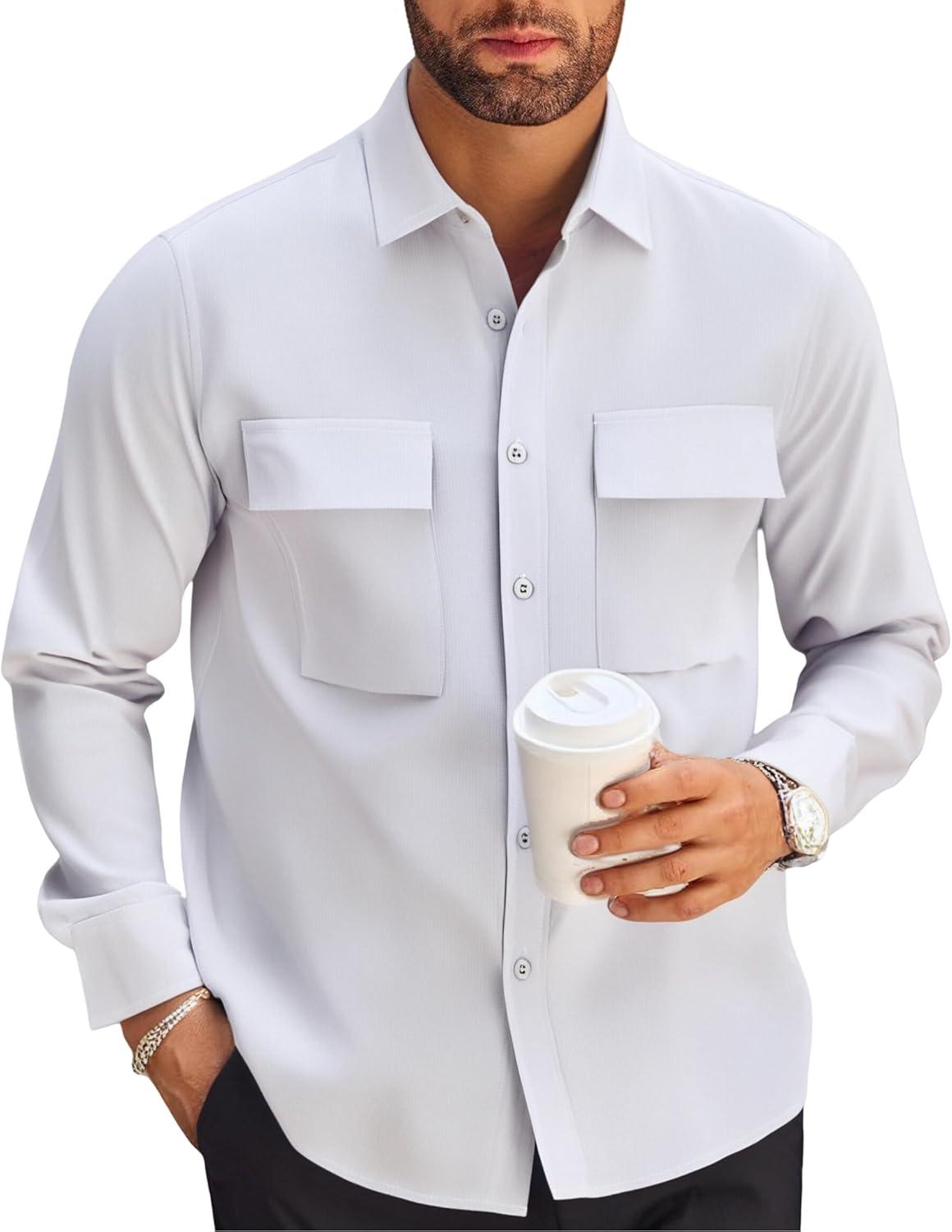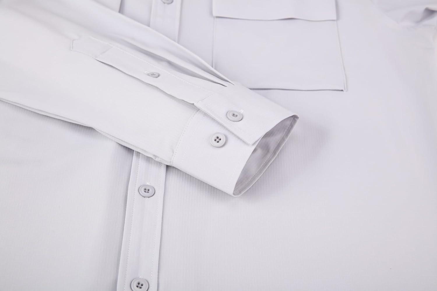 Alex Vando Mens Button Down Shirts Two Pockets Long Sleeve Casual Dress Shirt for Men(Grey)