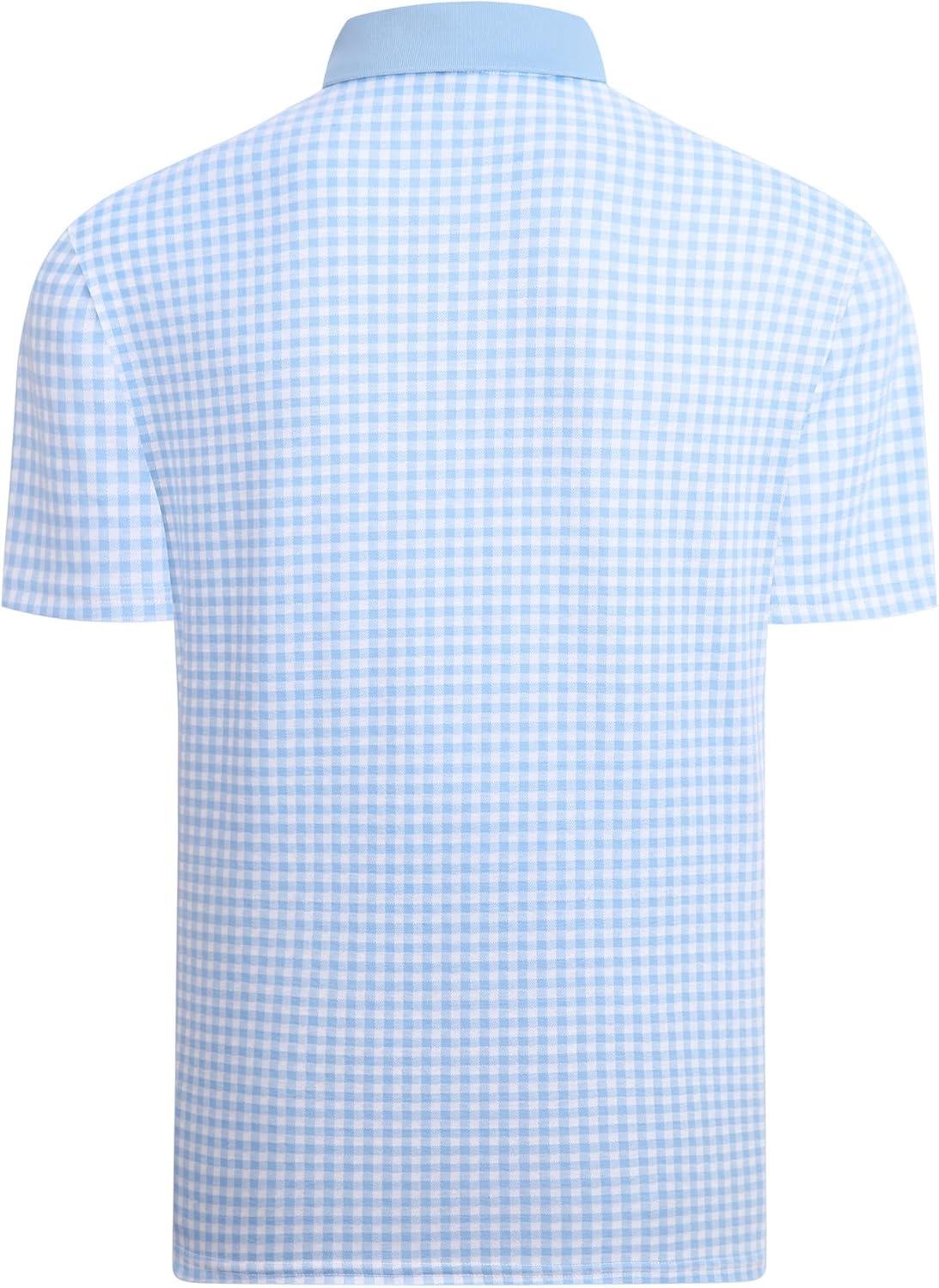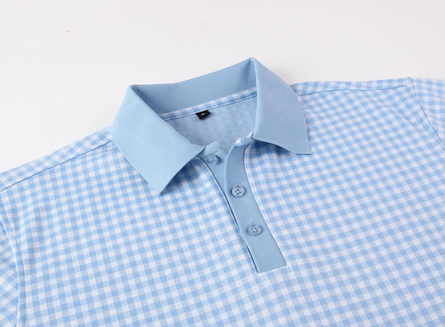 Alex Vando Mens Check Golf Shirt Contrast Rib Collar Short Sleeve Polo Shirts for Men(Blue/White)