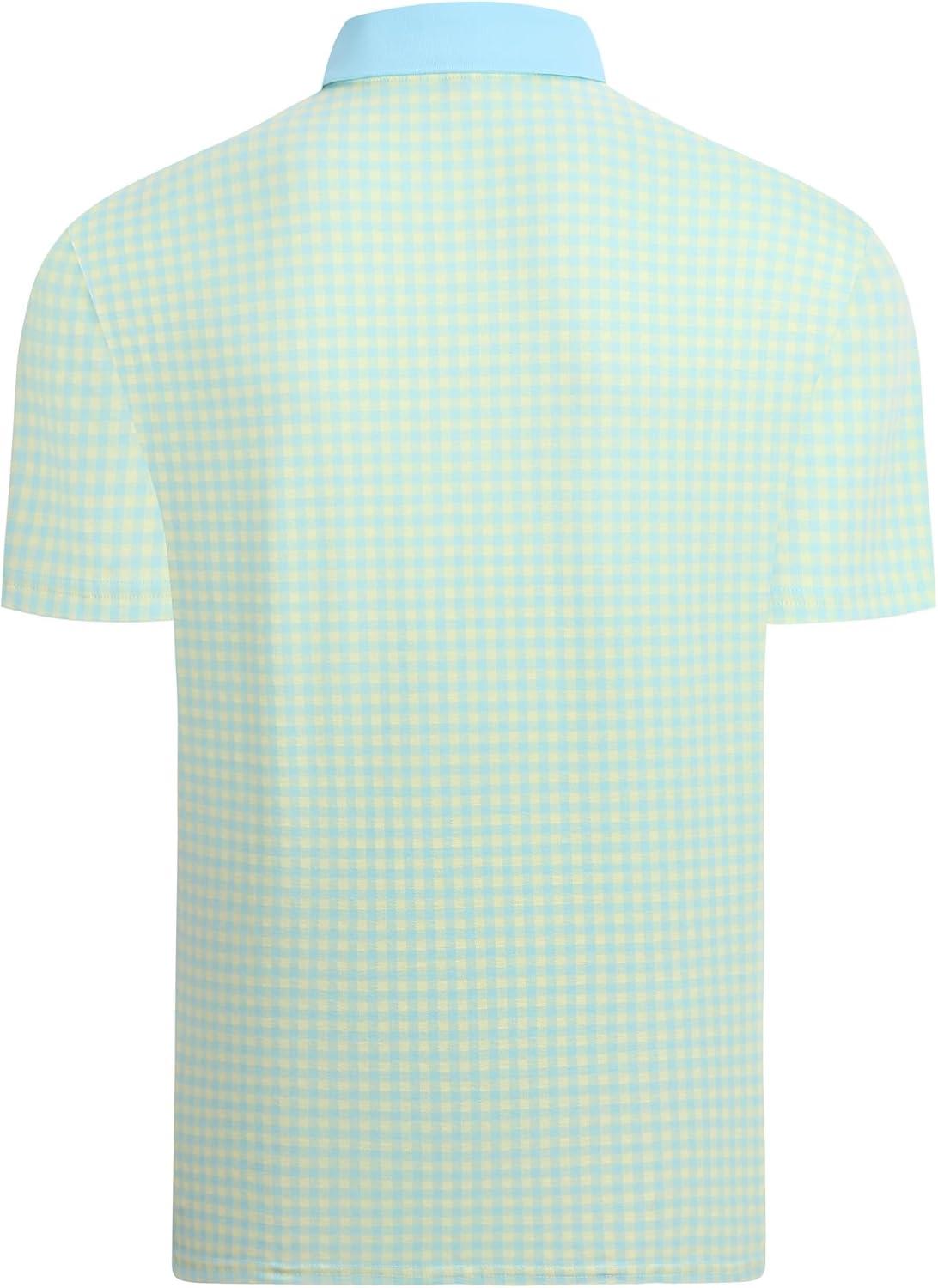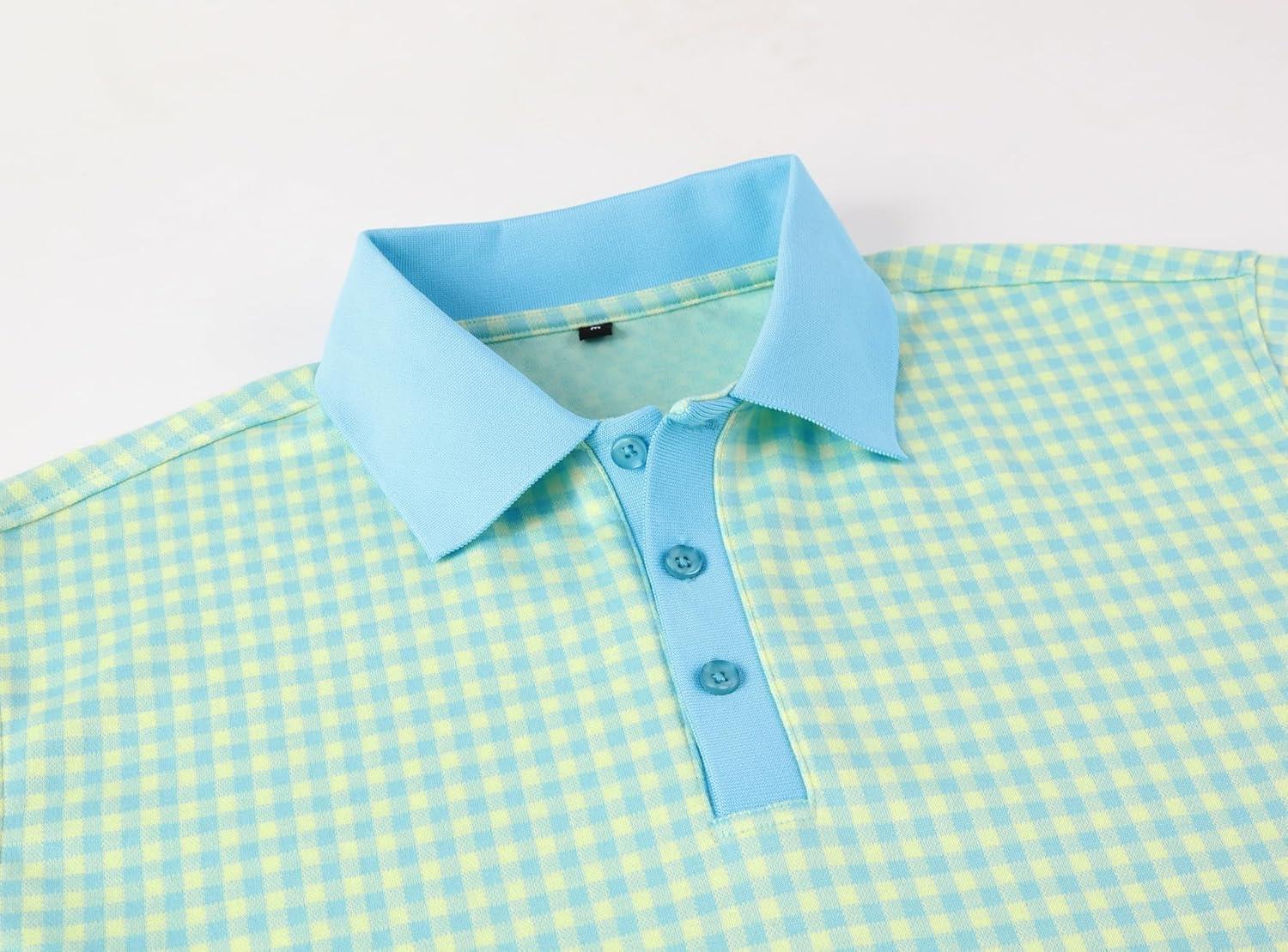 Alex Vando Mens Check Golf Shirt Contrast Rib Collar Short Sleeve Polo Shirts for Men(Blue/Yellow)