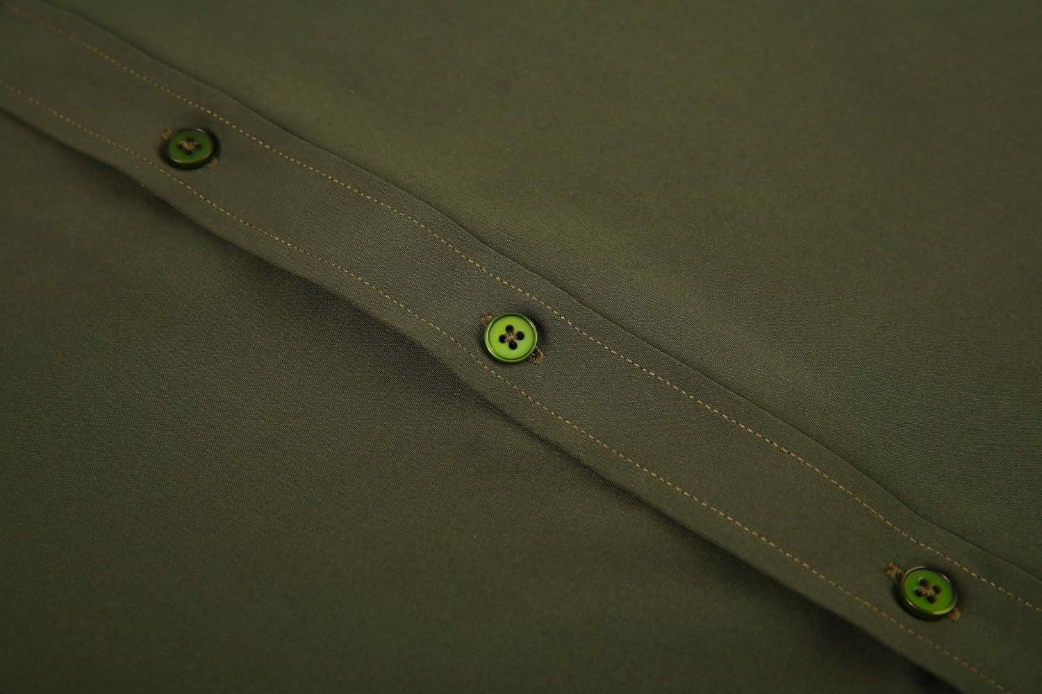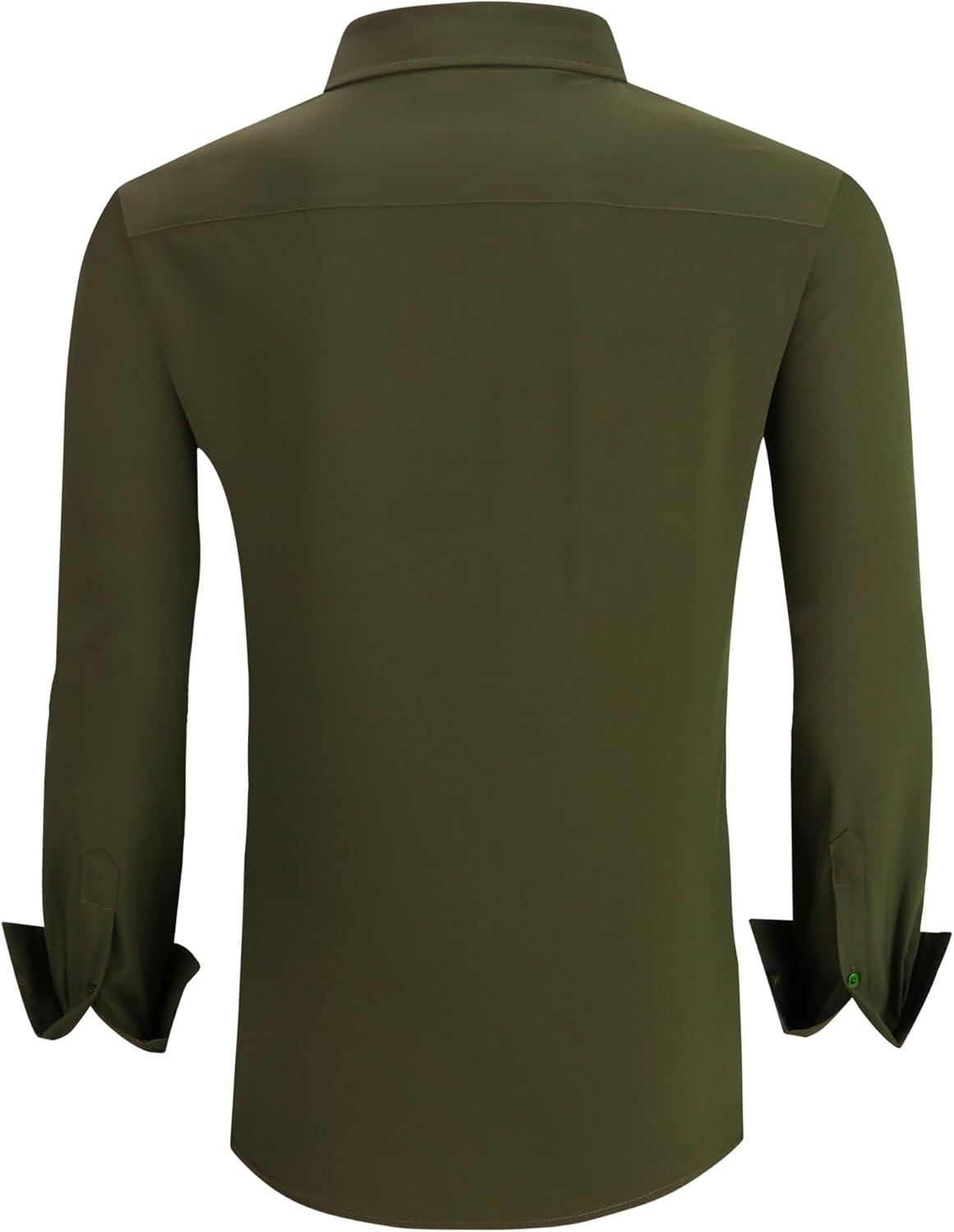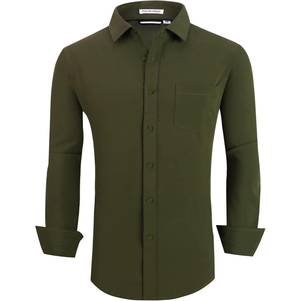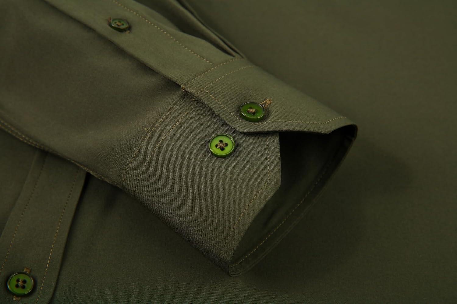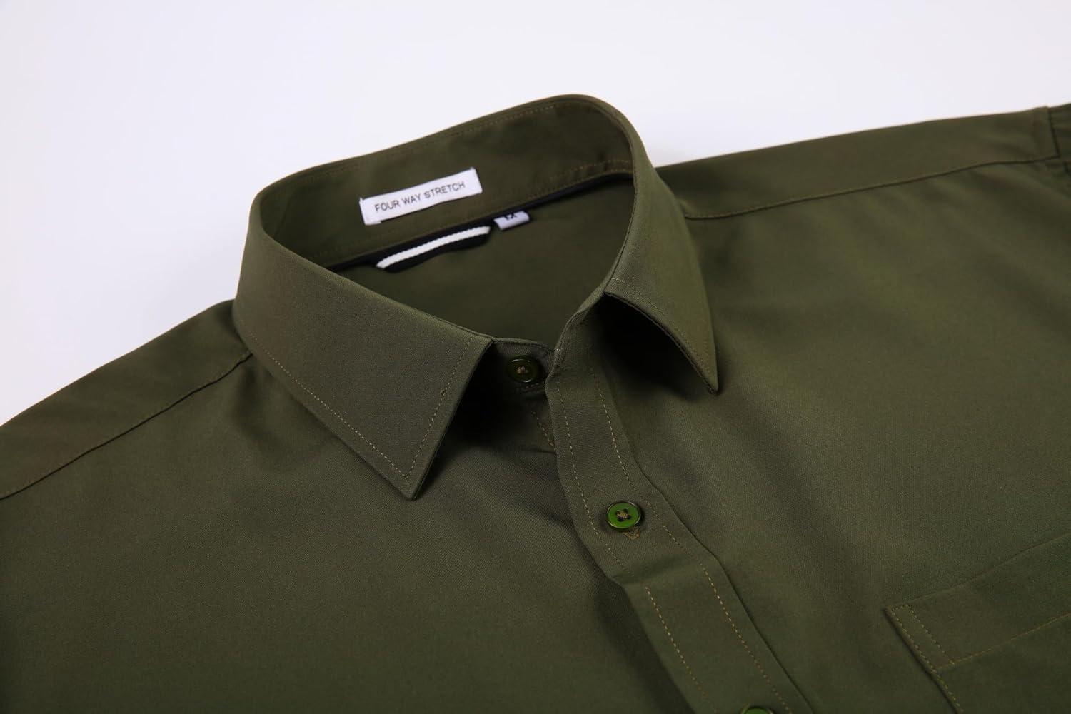 Alex Vando Mens Dress Shirt Wrinkle Free Regular Fit 4-Way Stretch Button Down Shirts(Army Green)
