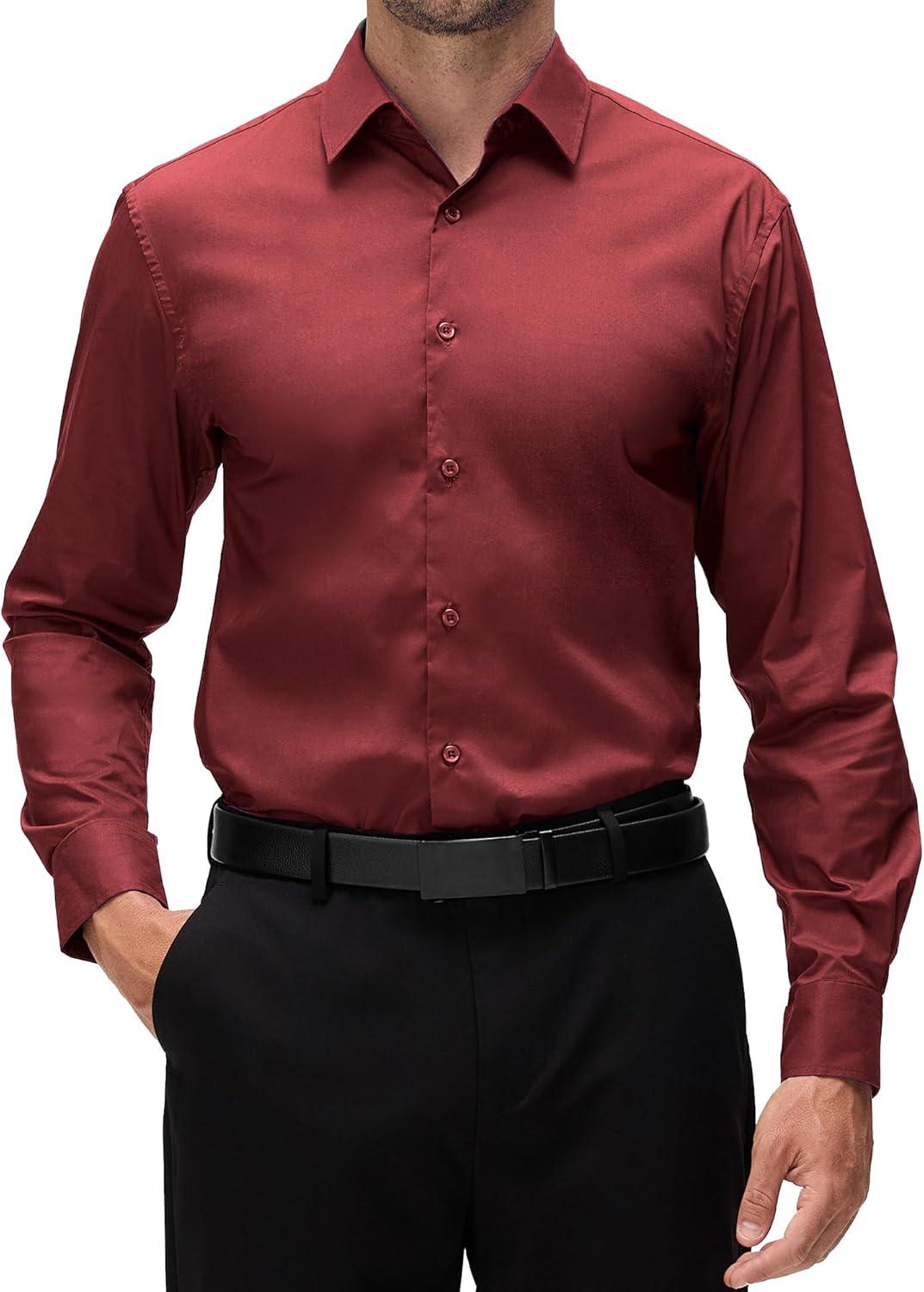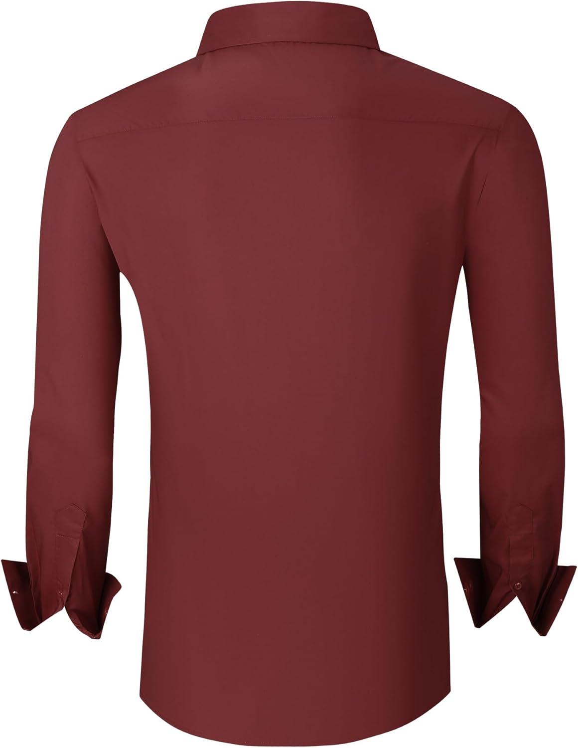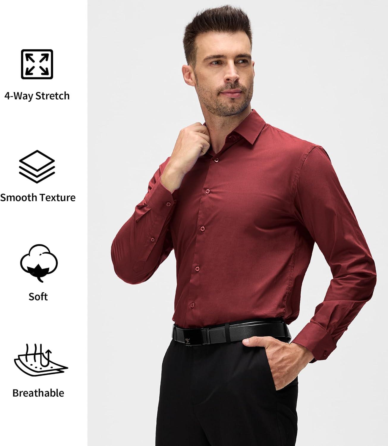 Alex Vando Mens Dress Shirt Wrinkle Free Regular Fit 4-Way Stretch Button Down Shirts(Cotton Burgundy)