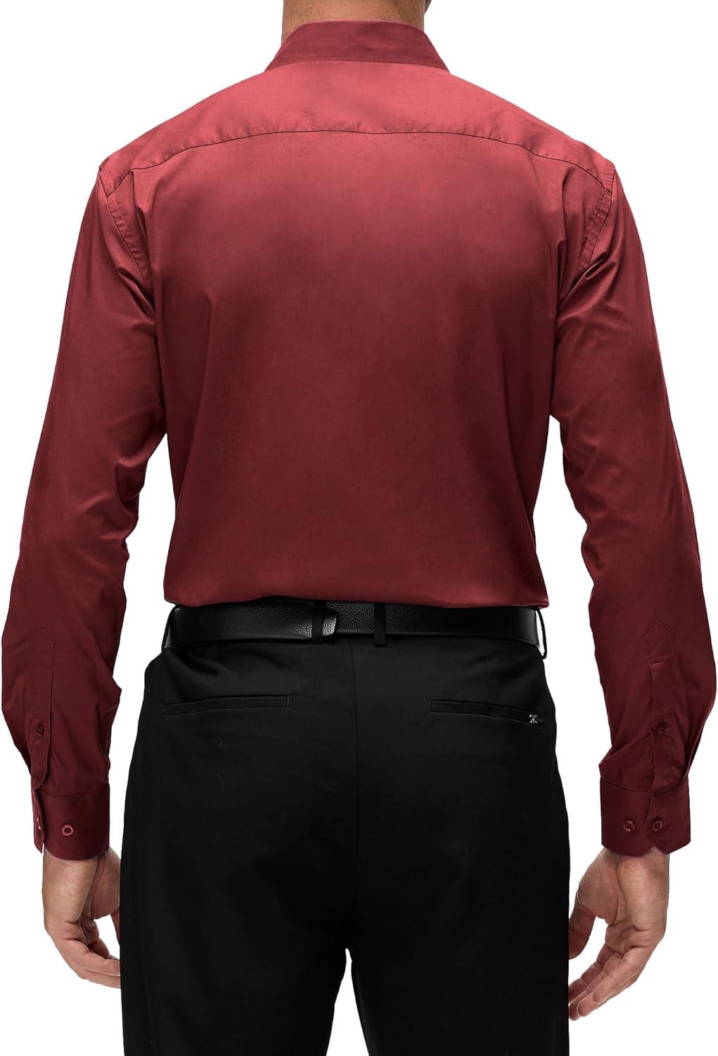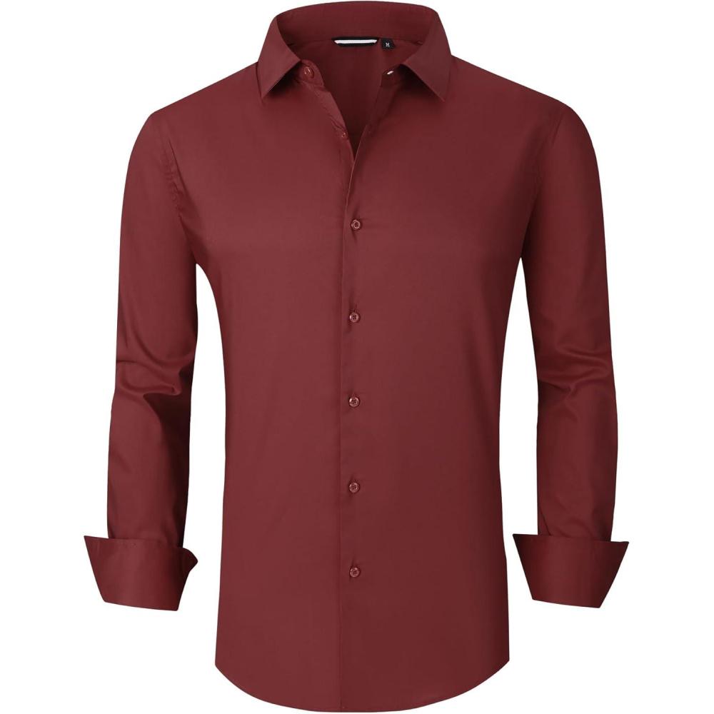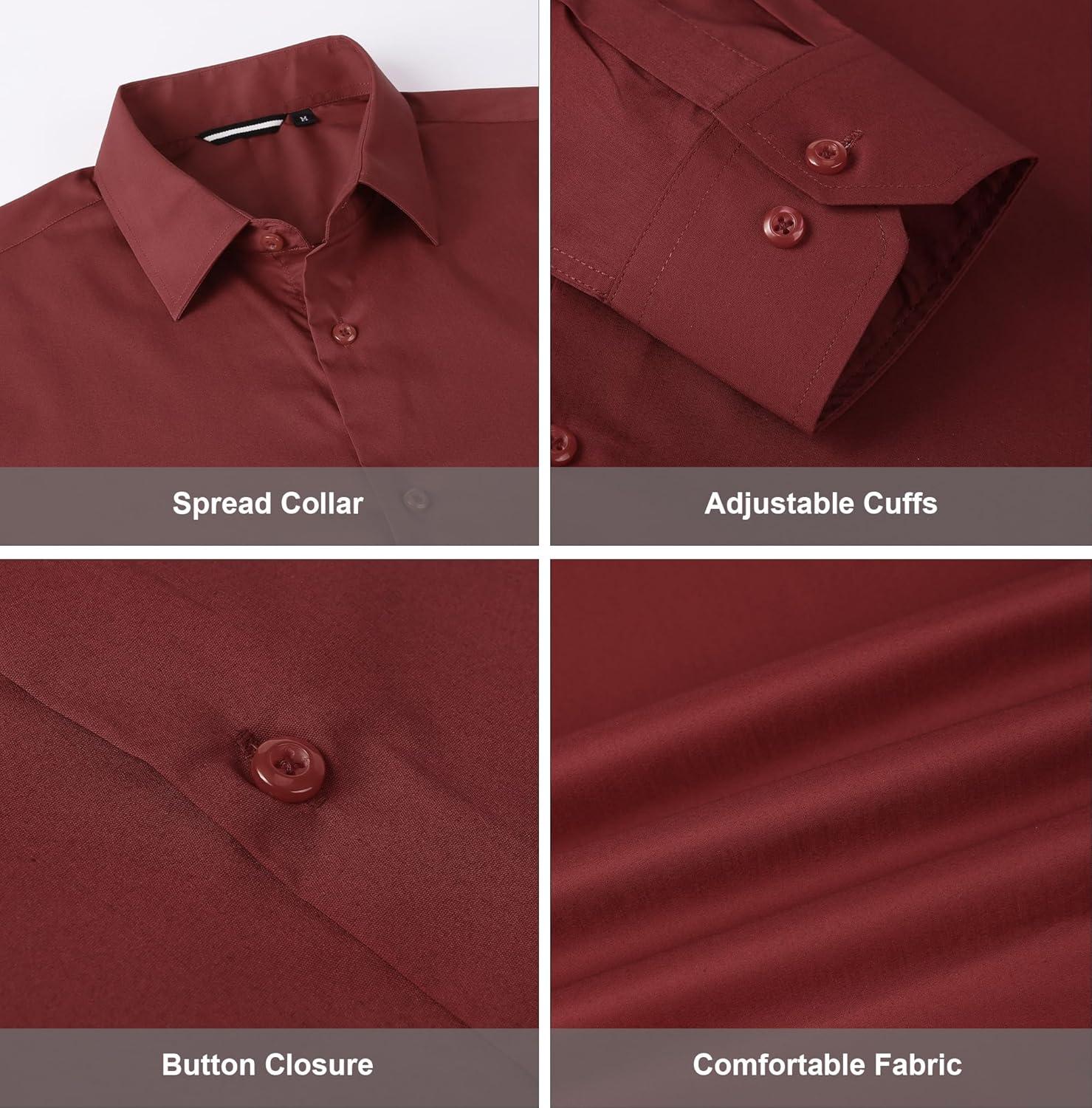 Alex Vando Mens Dress Shirt Wrinkle Free Regular Fit 4-Way Stretch Button Down Shirts(Cotton Burgundy)