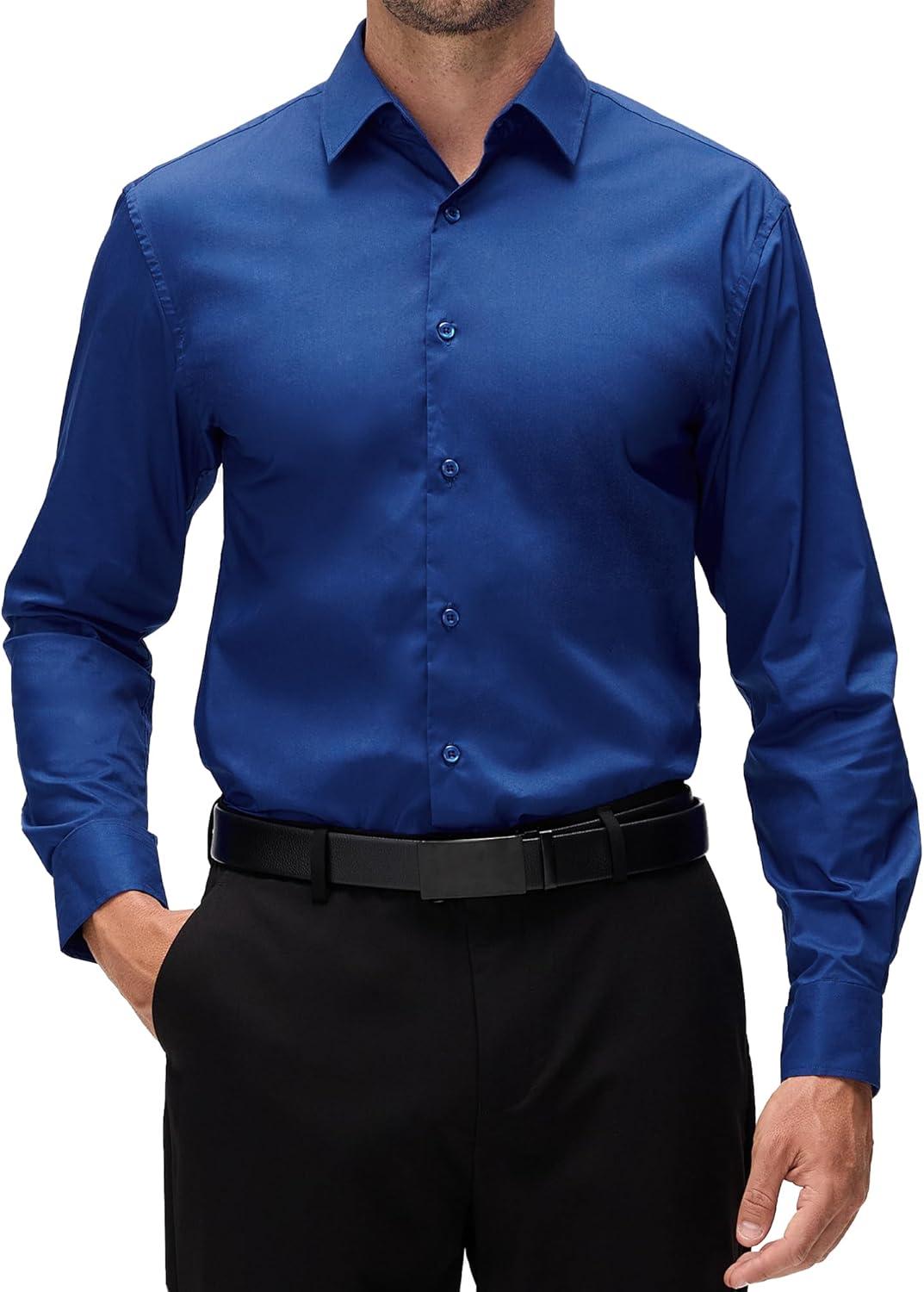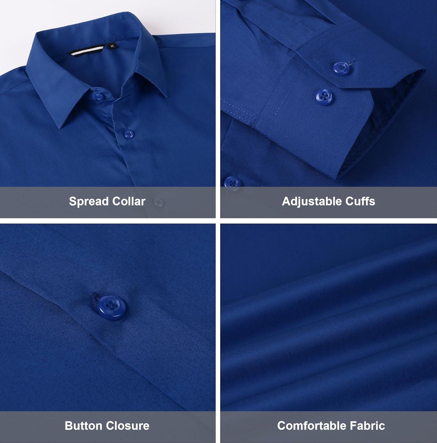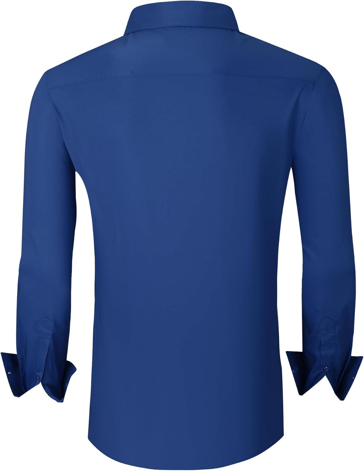 Alex Vando Mens Dress Shirt Wrinkle Free Regular Fit 4-Way Stretch Button Down Shirts(Cotton Royal)