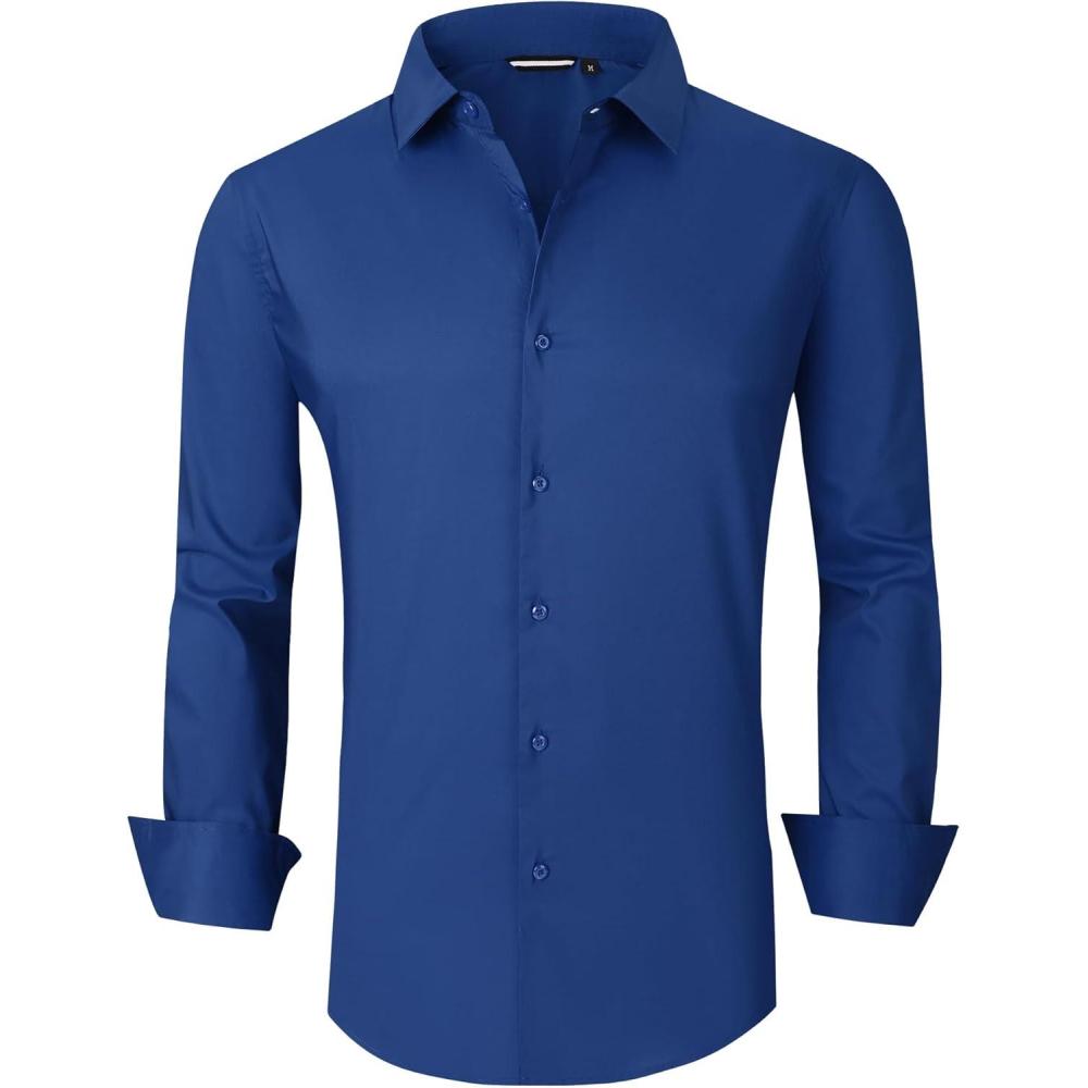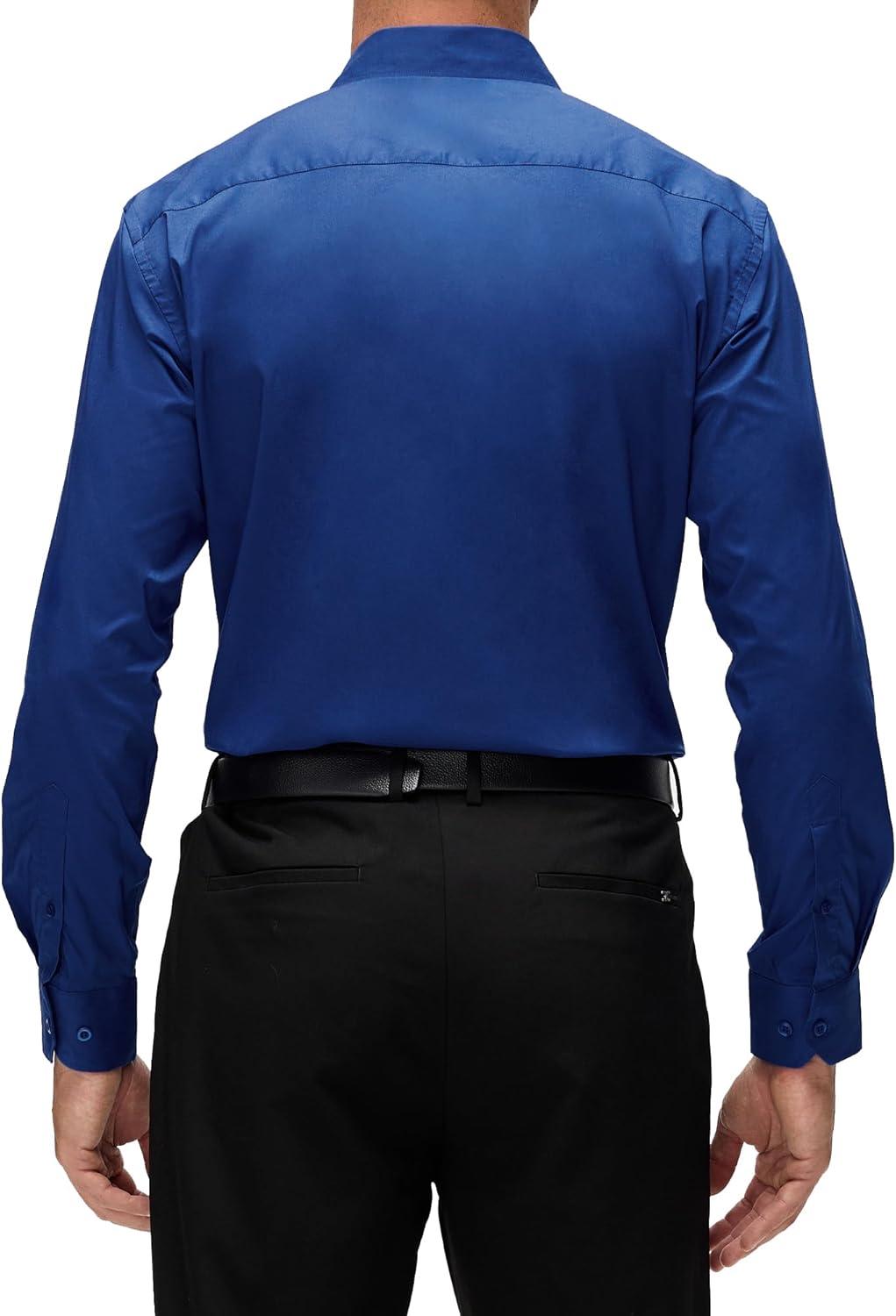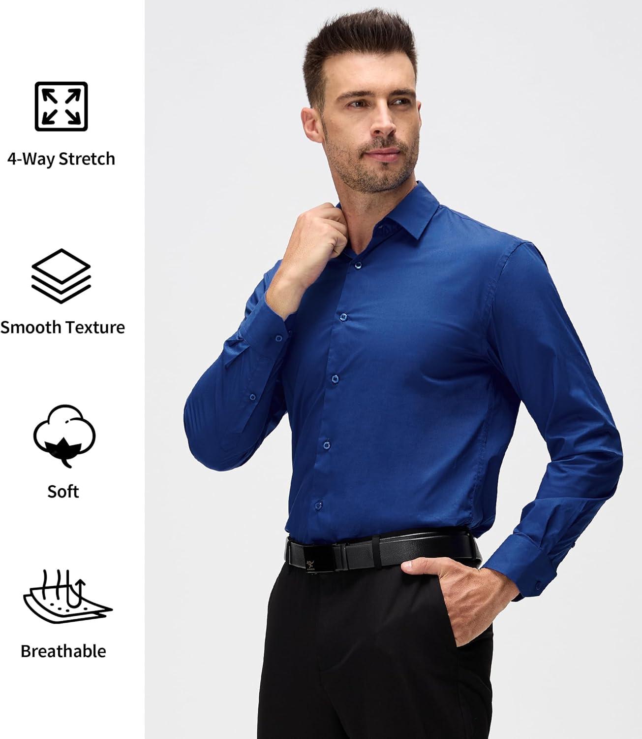 Alex Vando Mens Dress Shirt Wrinkle Free Regular Fit 4-Way Stretch Button Down Shirts(Cotton Royal)