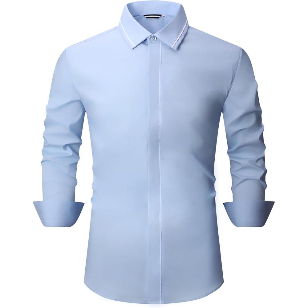 Alex Vando Mens Dress Shirt Wrinkle Free Regular Fit 4-Way Stretch Button Down Shirts(Hidden Blue)