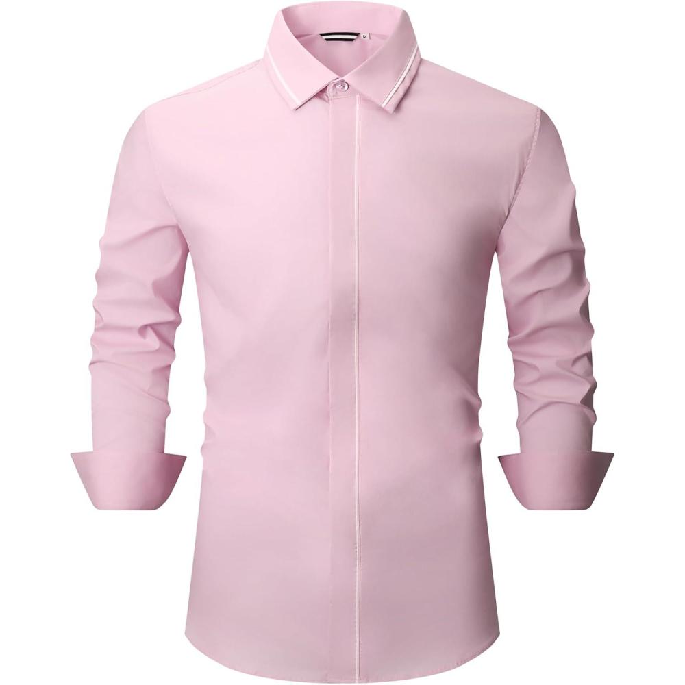 Alex Vando Mens Dress Shirt Wrinkle Free Regular Fit 4-Way Stretch Button Down Shirts(Hidden Pink)