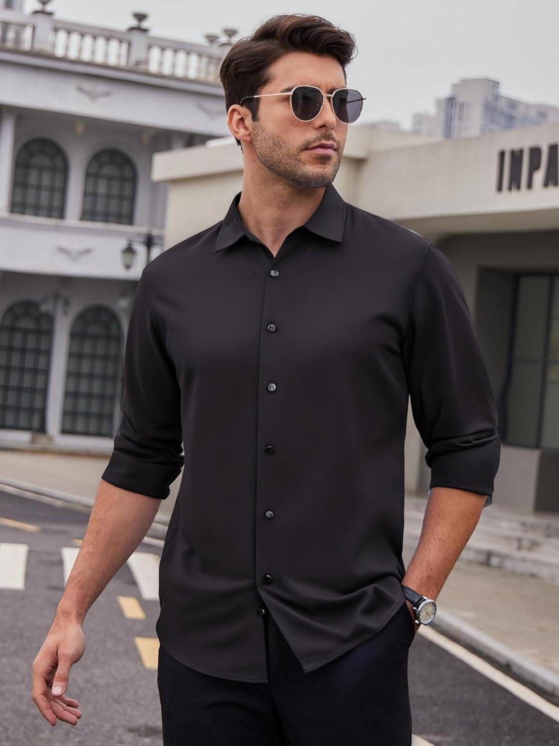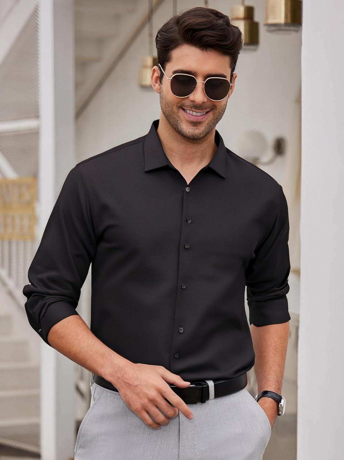 Get up to 70% off on Alex Vando Mens Dress Shirts 8-Way Super Stretch French Placket Business Button Down Shirt Men(Black) styles during our end-of-season clearance event.