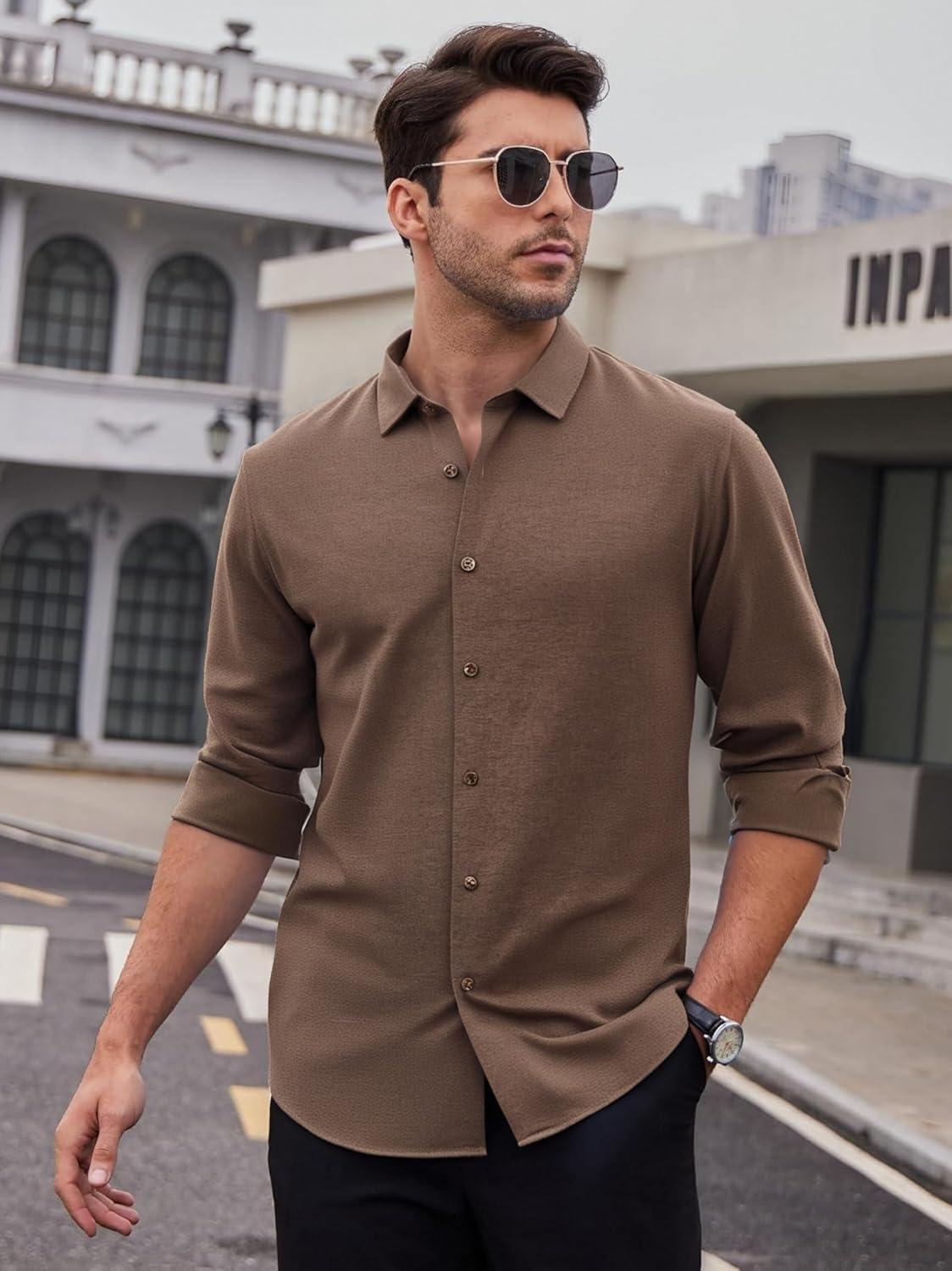 Don’t wait, get up to 50% off on Alex Vando Mens Dress Shirts 8-Way Super Stretch French Placket Business Button Down Shirt Men(Coffee) during our end-of-season sale event.