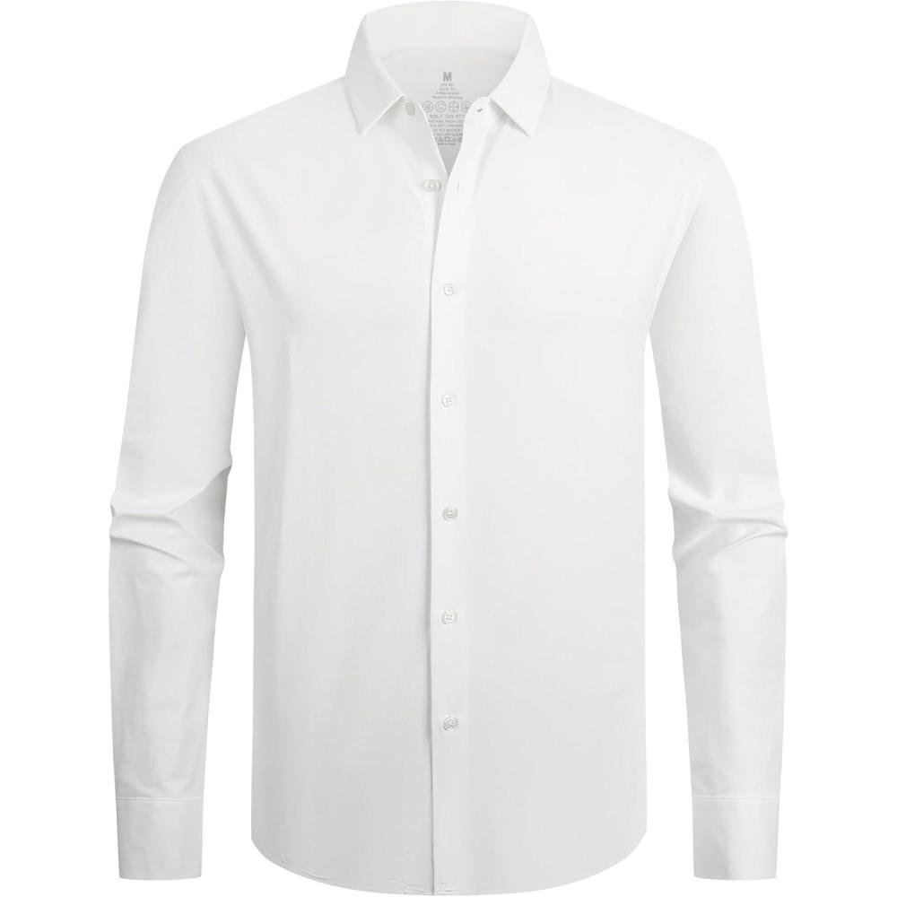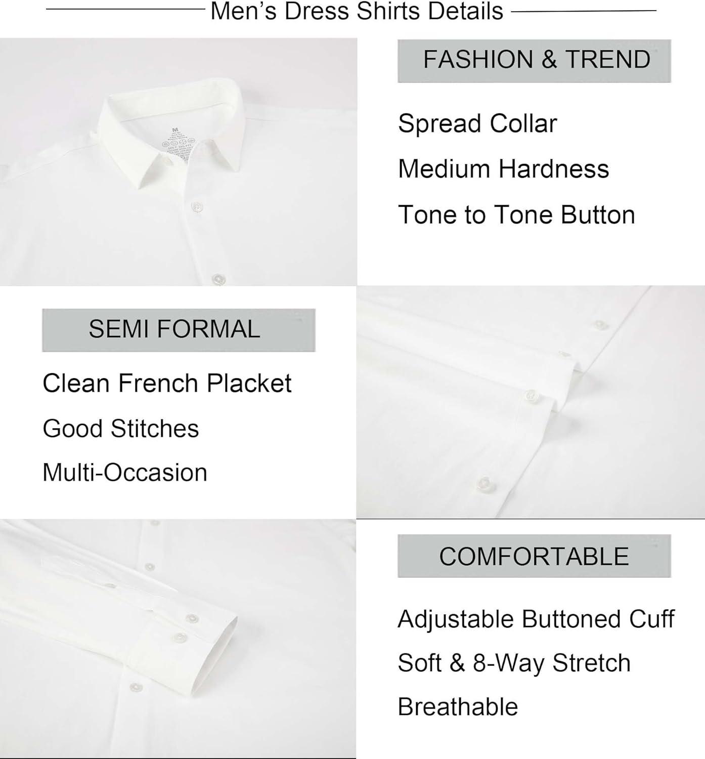 Alex Vando Mens Dress Shirts 8-Way Super Stretch French Placket Business Button Down Shirt Men(White)
