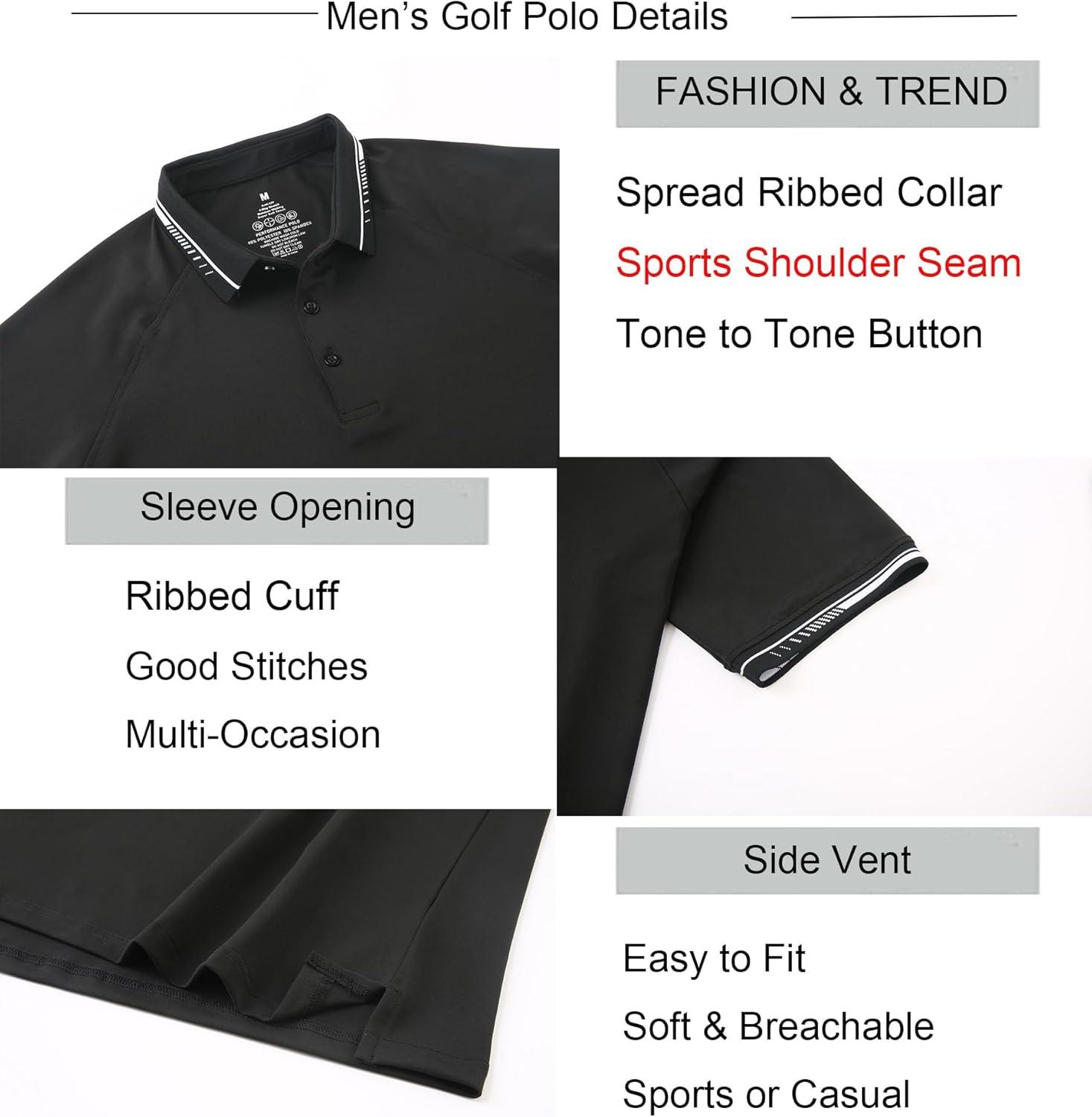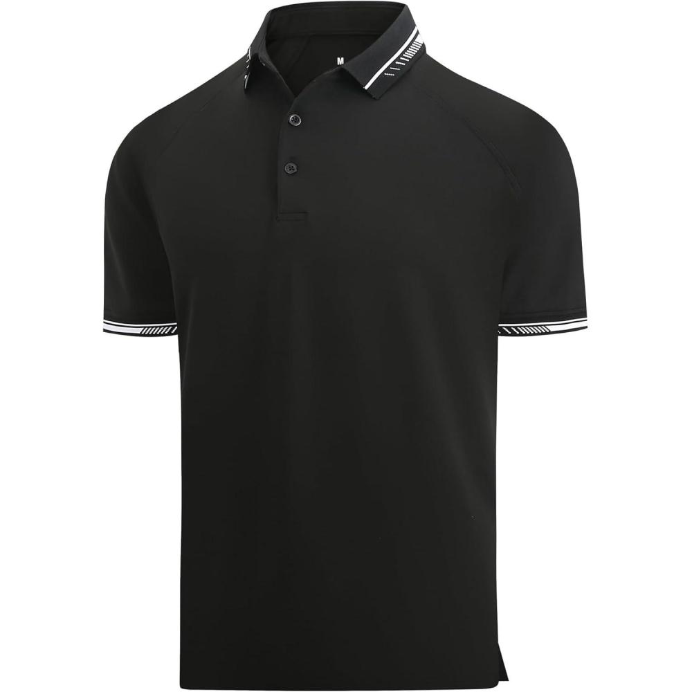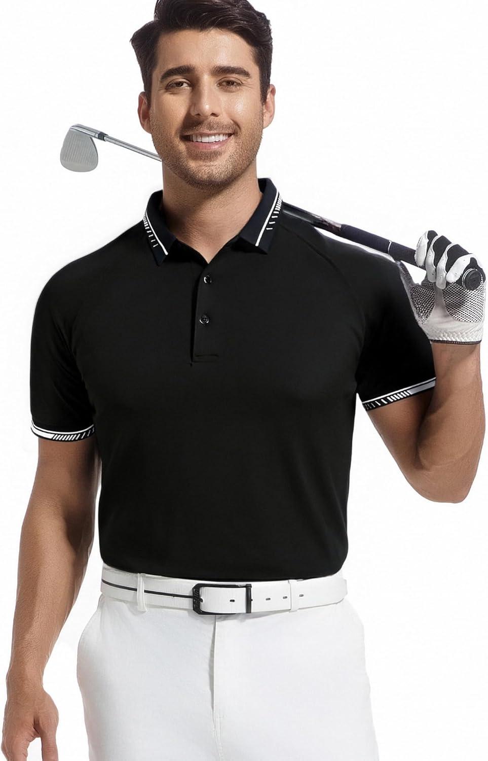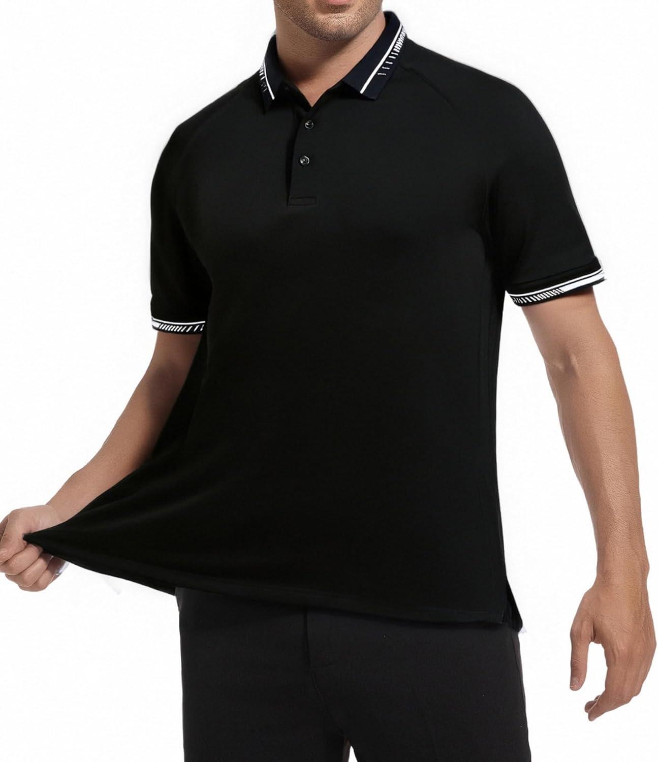 Alex Vando Mens Golf Shirt Cotton-Like Silky Performance Short Sleeve Sports Polo Shirts(Black)