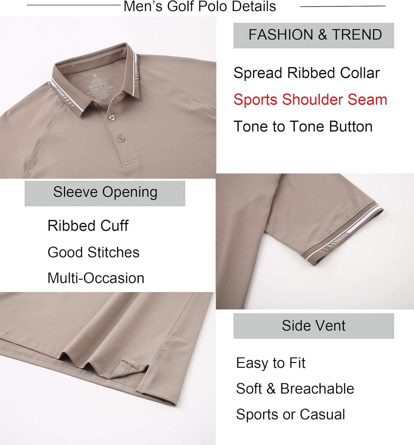 Alex Vando Mens Golf Shirt Cotton-Like Silky Performance Short Sleeve Sports Polo Shirts(Dk Grey)