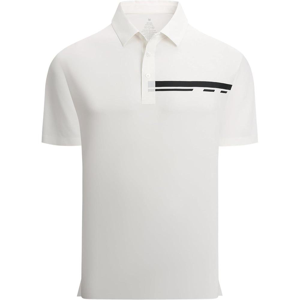 Alex Vando Mens Golf Shirts Moisture Wicking Quick-Dry Short Sleeve Fashion Designed Polo Shirts for Men(White)