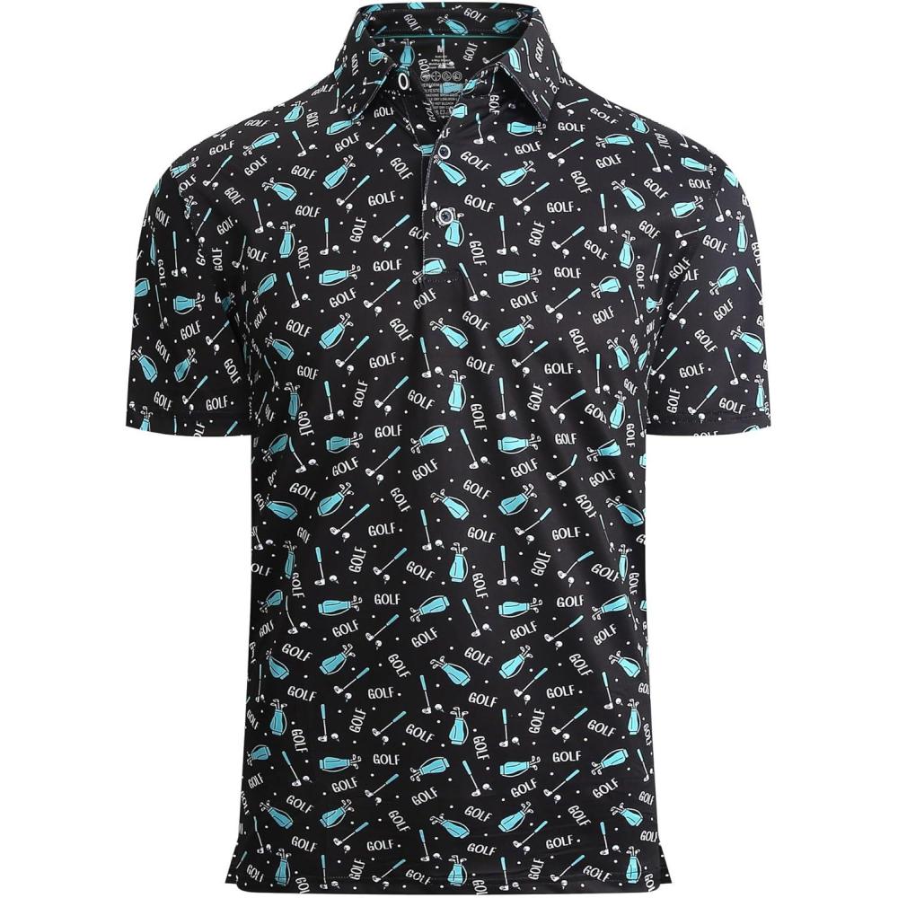 Alex Vando Mens Golf Shirt Moisture Wicking Quick-Dry Print Performance Polo Shirts for Men(Black Golf Club Bag)