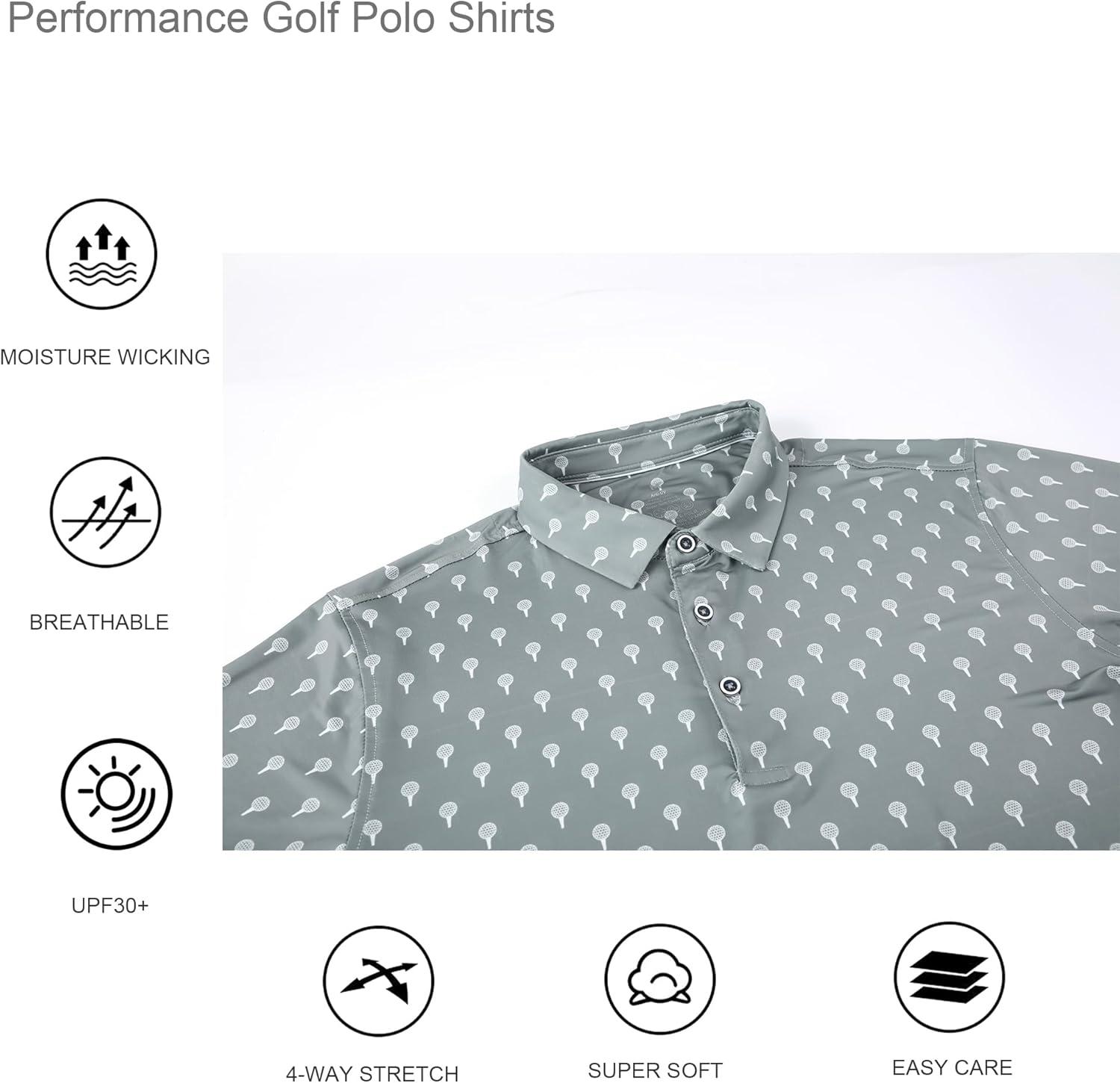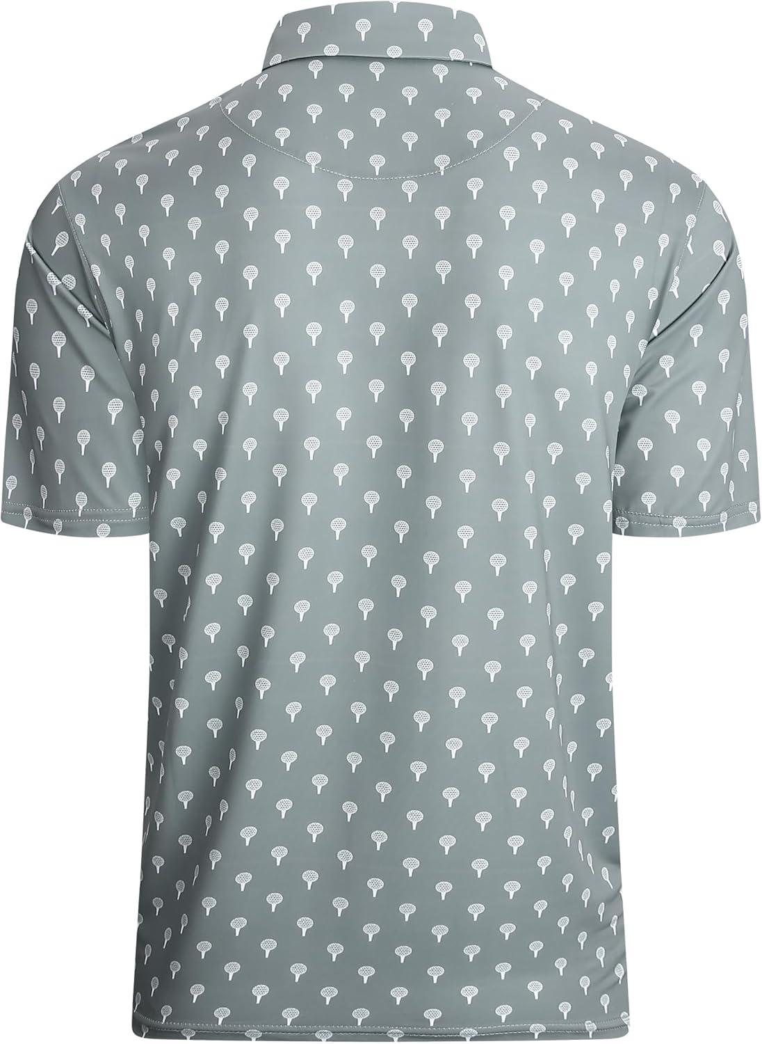 Alex Vando Mens Golf Shirt Moisture Wicking Quick-Dry Print Performance Polo Shirts for Men(Grey Ball)