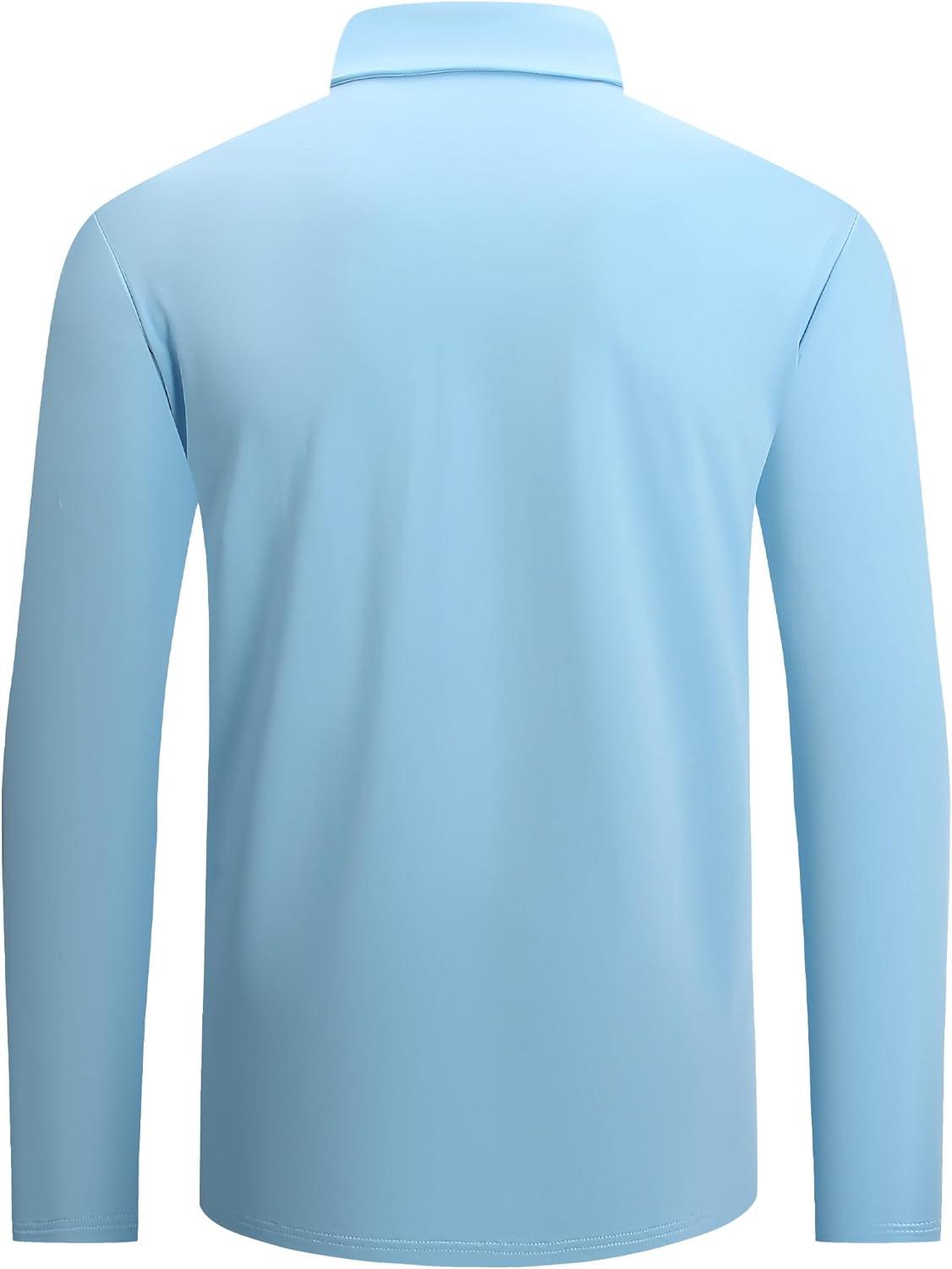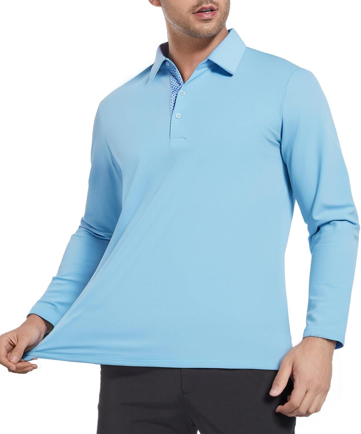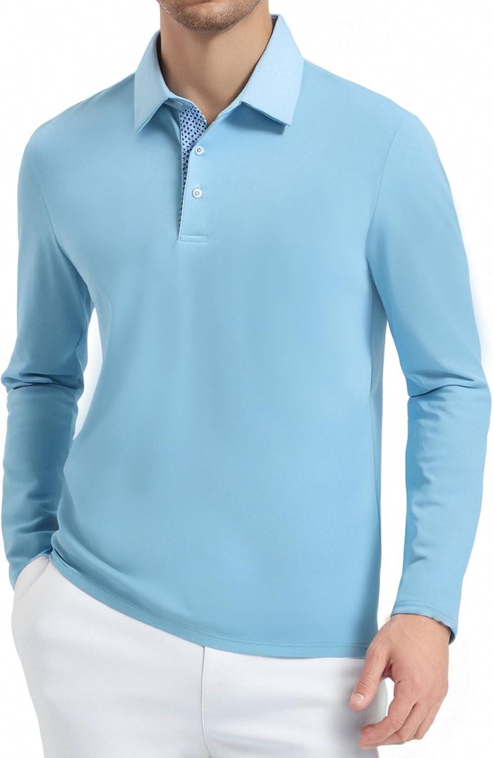 Alex Vando Mens Golf Shirt Moisture Wicking Quick-Dry Solid Long Sleeve Polo Shirts for Men(Lt Blue 09)