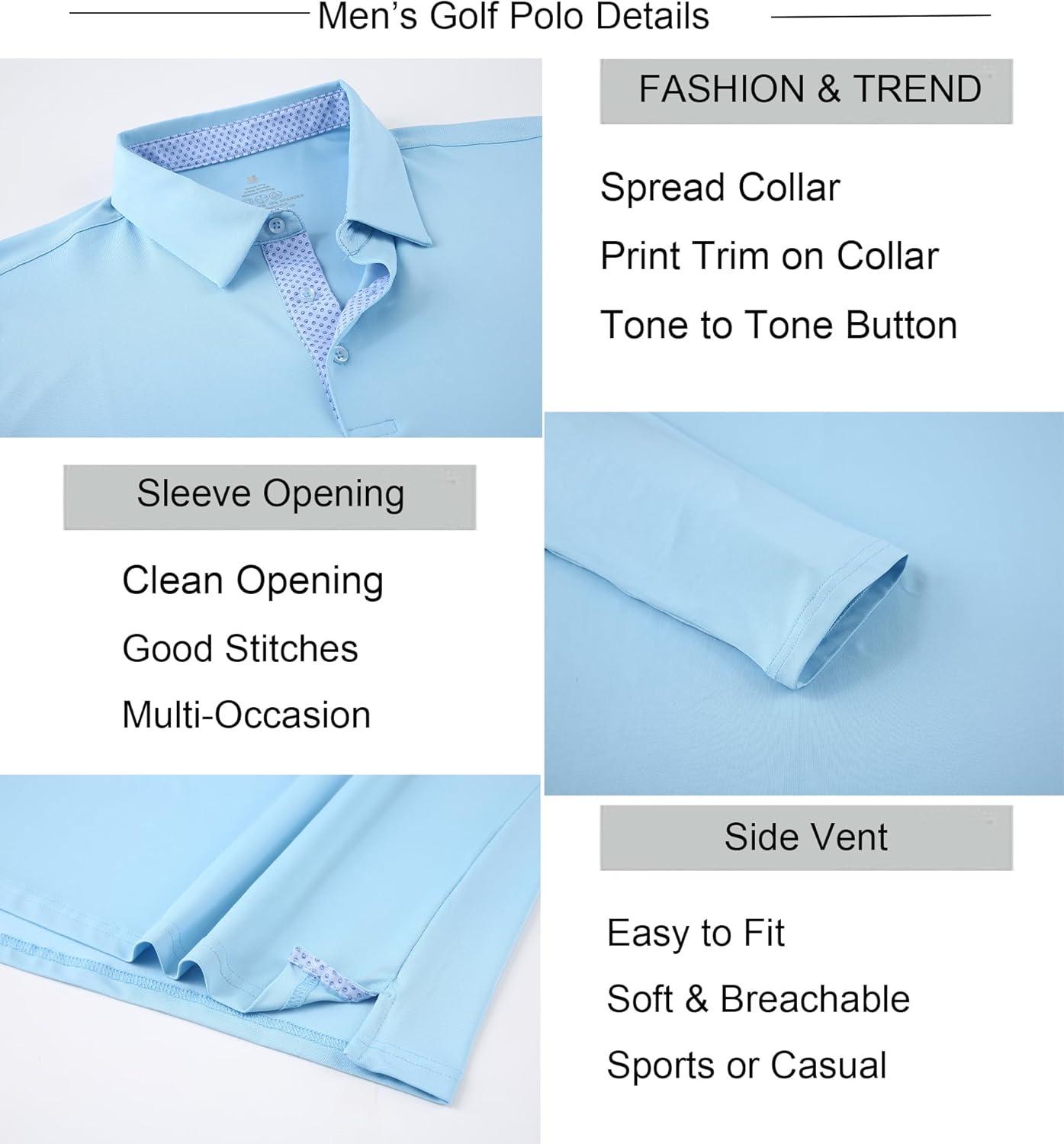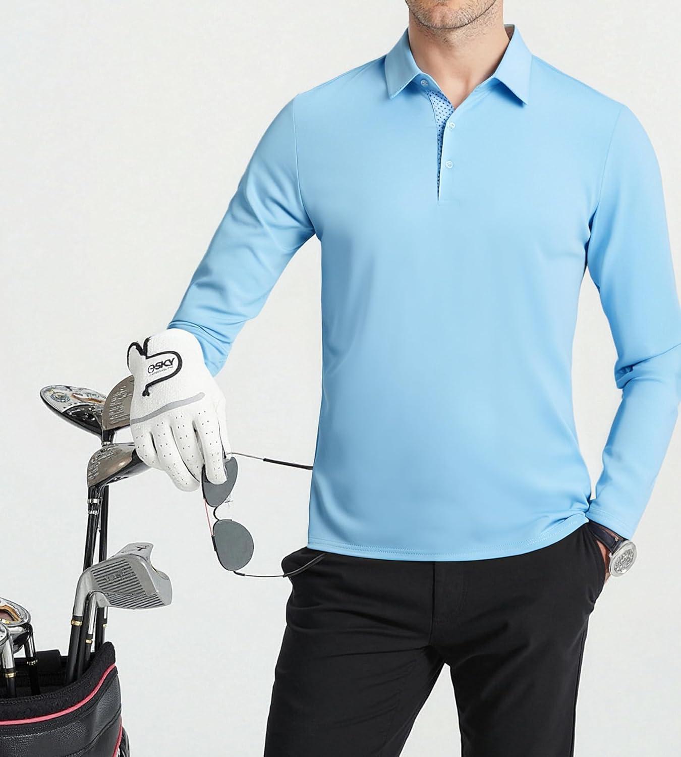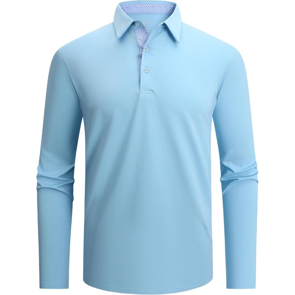Alex Vando Mens Golf Shirt Moisture Wicking Quick-Dry Solid Long Sleeve Polo Shirts for Men(Lt Blue 09)