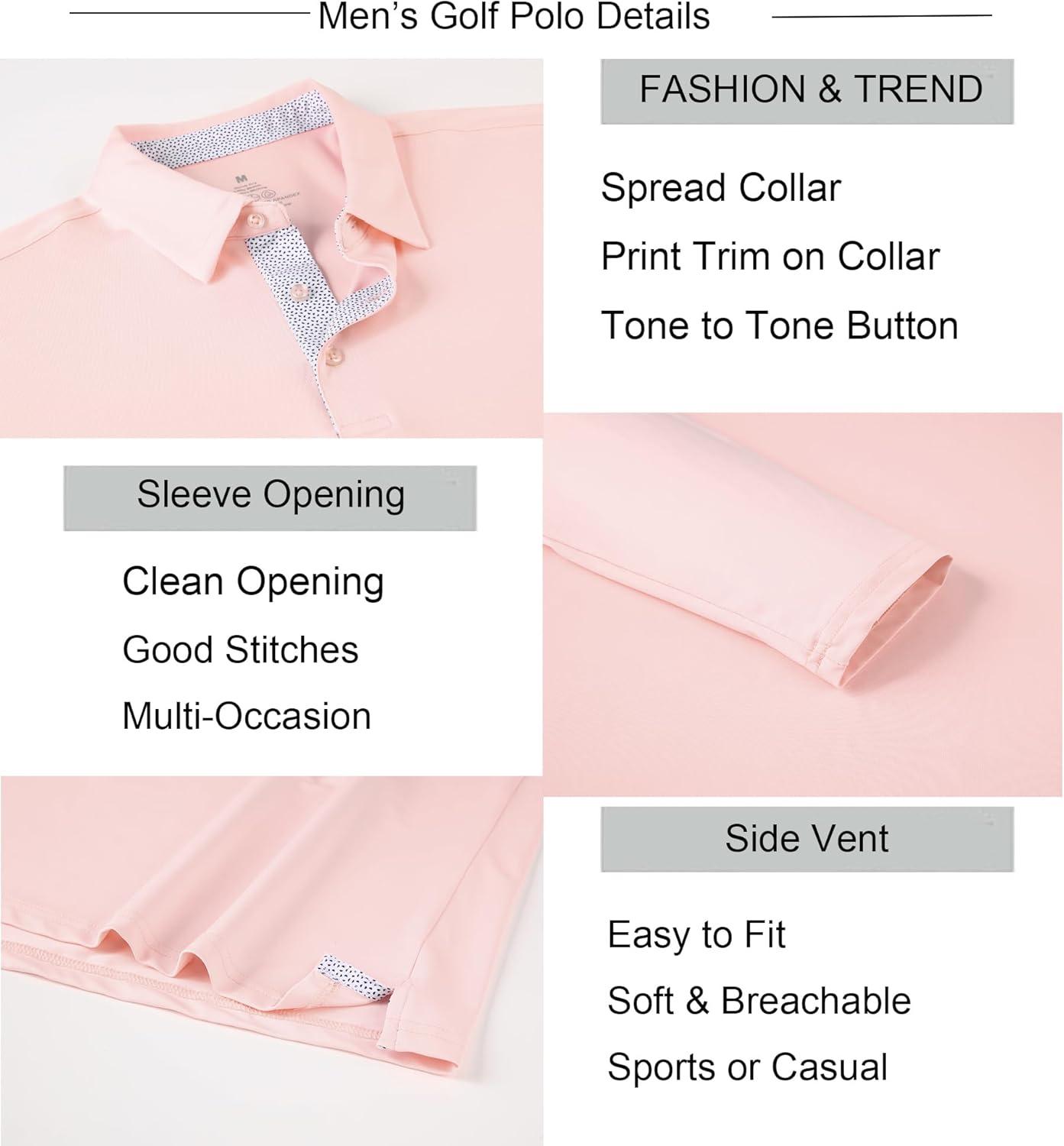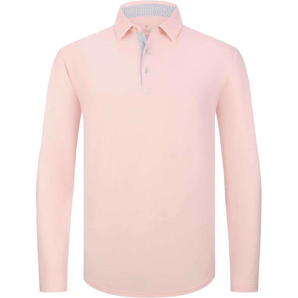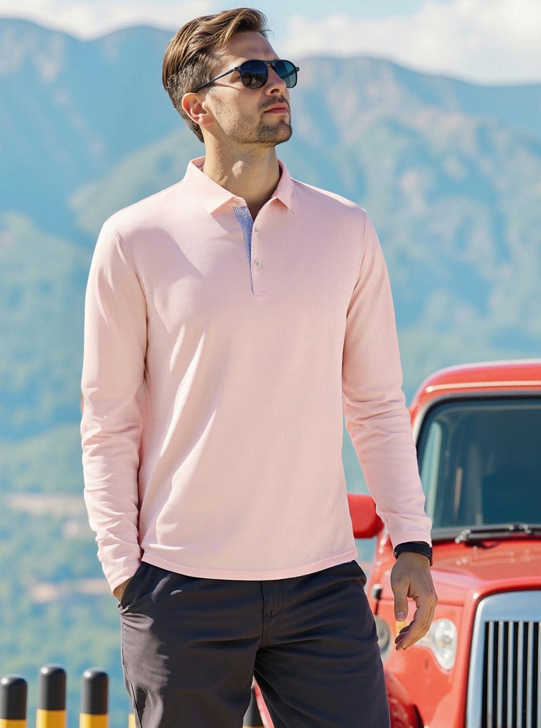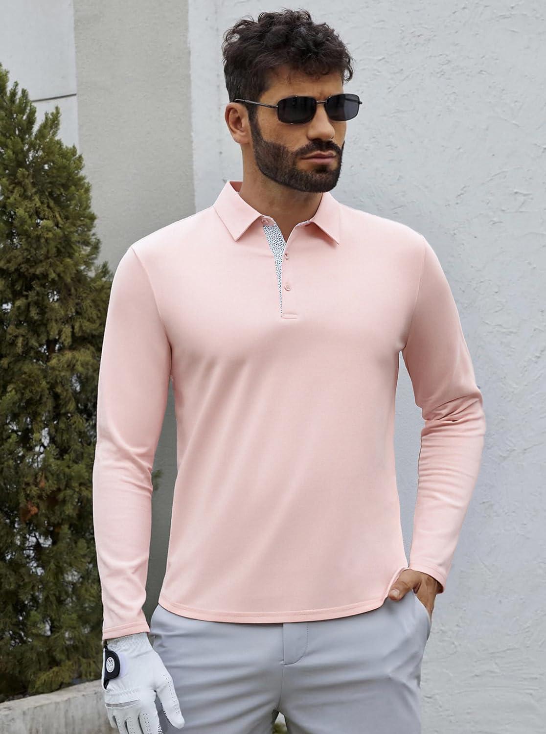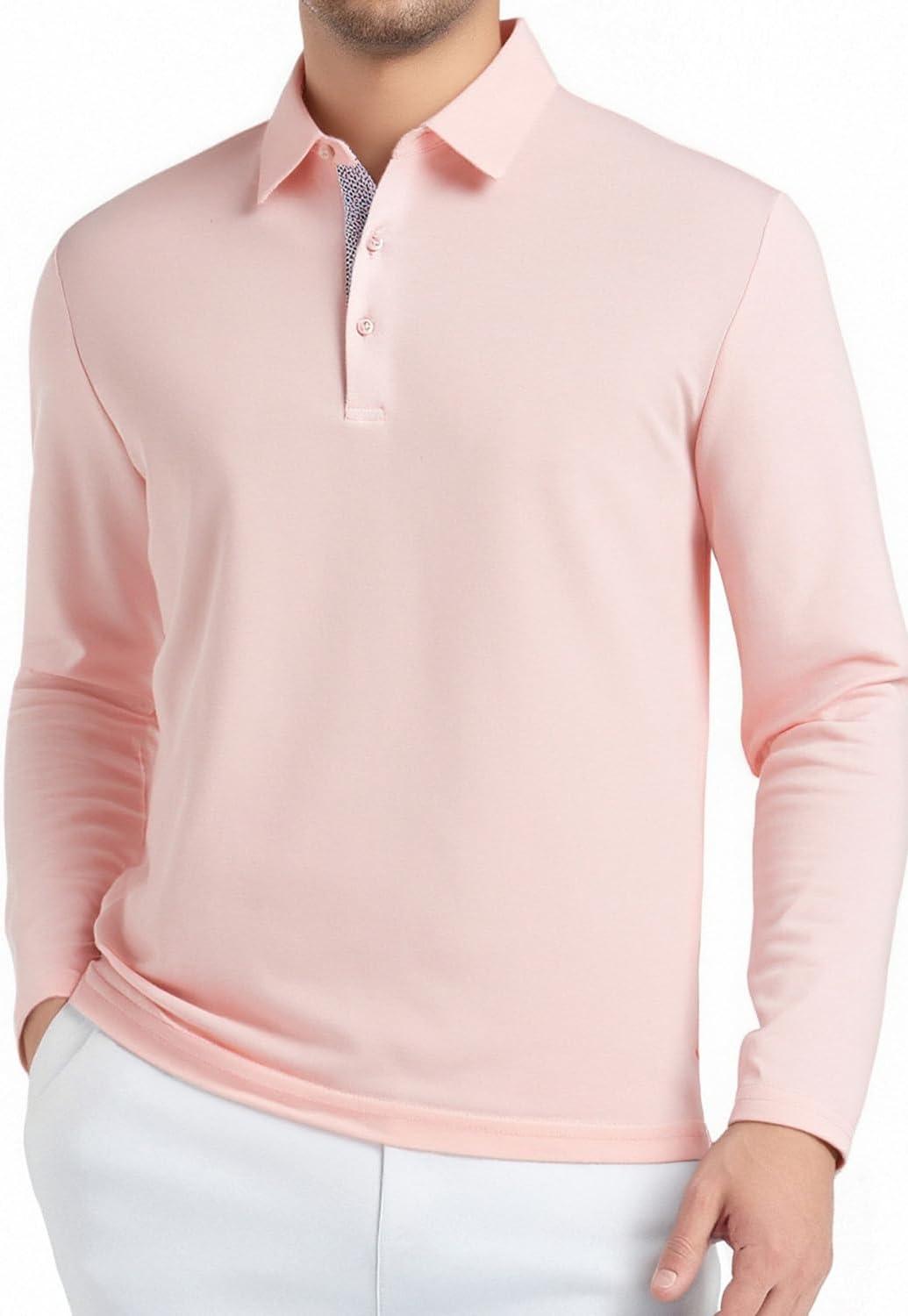 Alex Vando Mens Golf Shirt Moisture Wicking Quick-Dry Solid Long Sleeve Polo Shirts for Men(Lt Pink 09)