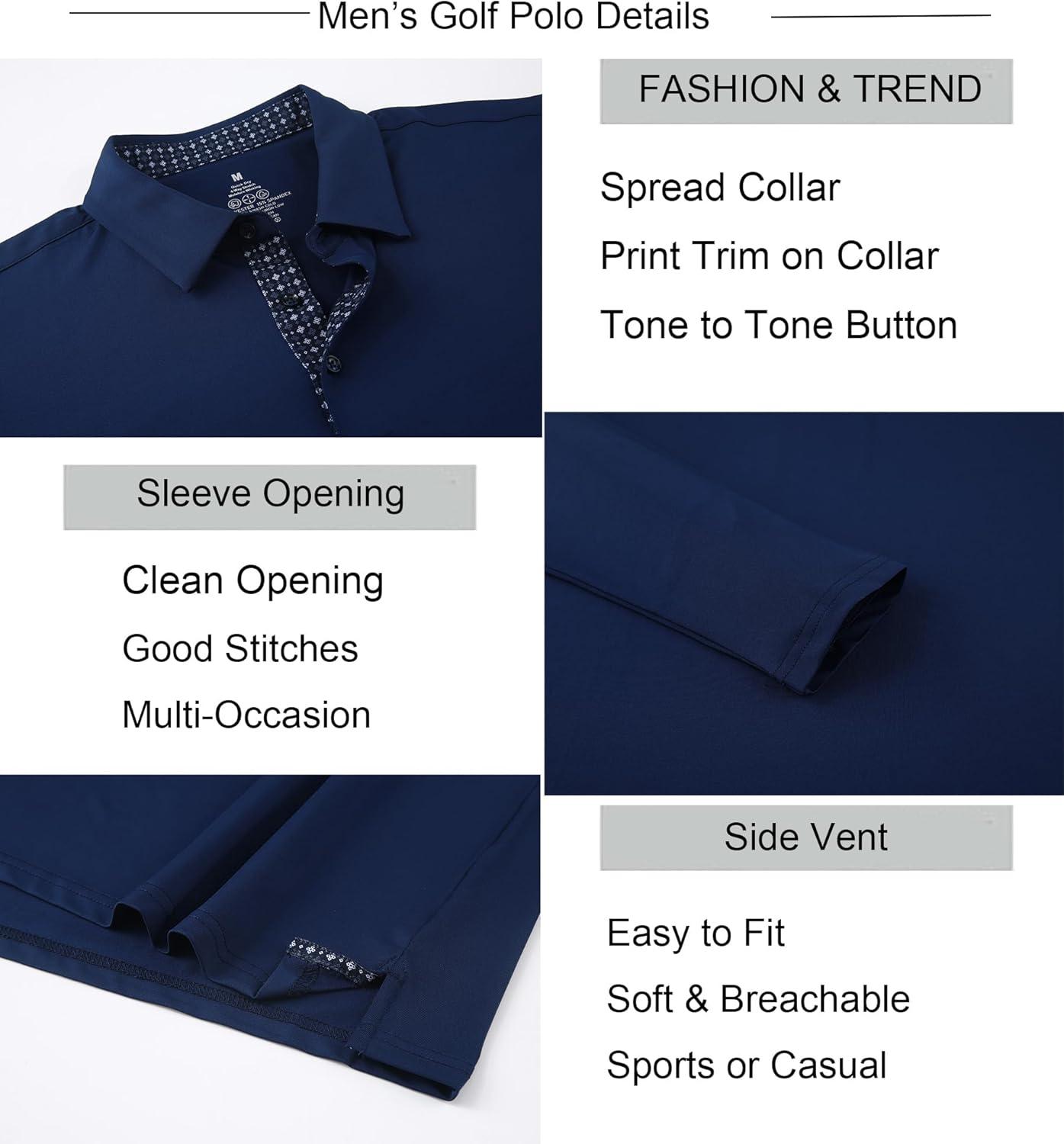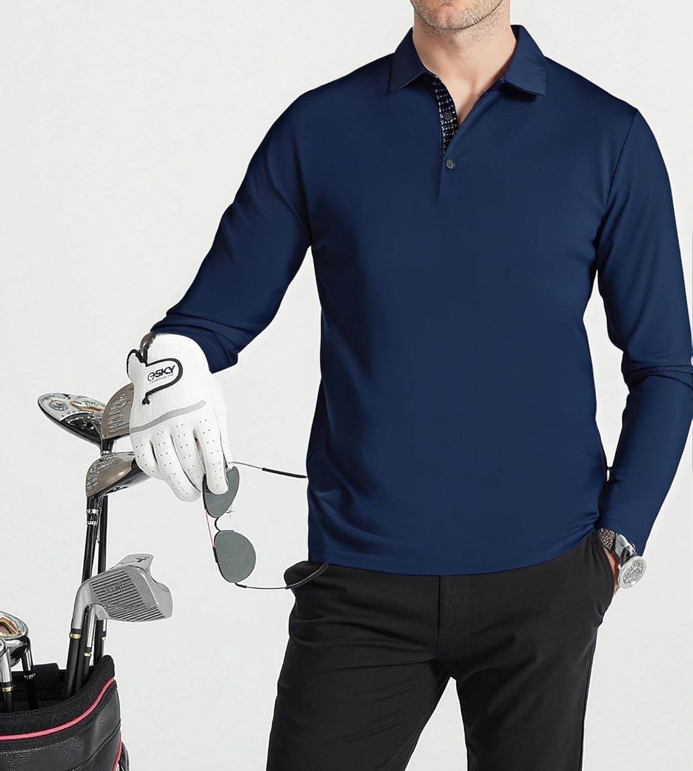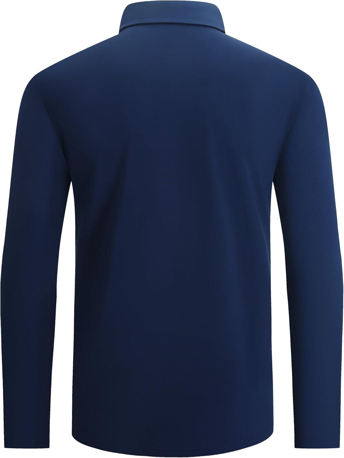 Alex Vando Mens Golf Shirt Moisture Wicking Quick-Dry Solid Long Sleeve Polo Shirts for Men(Navy 09)