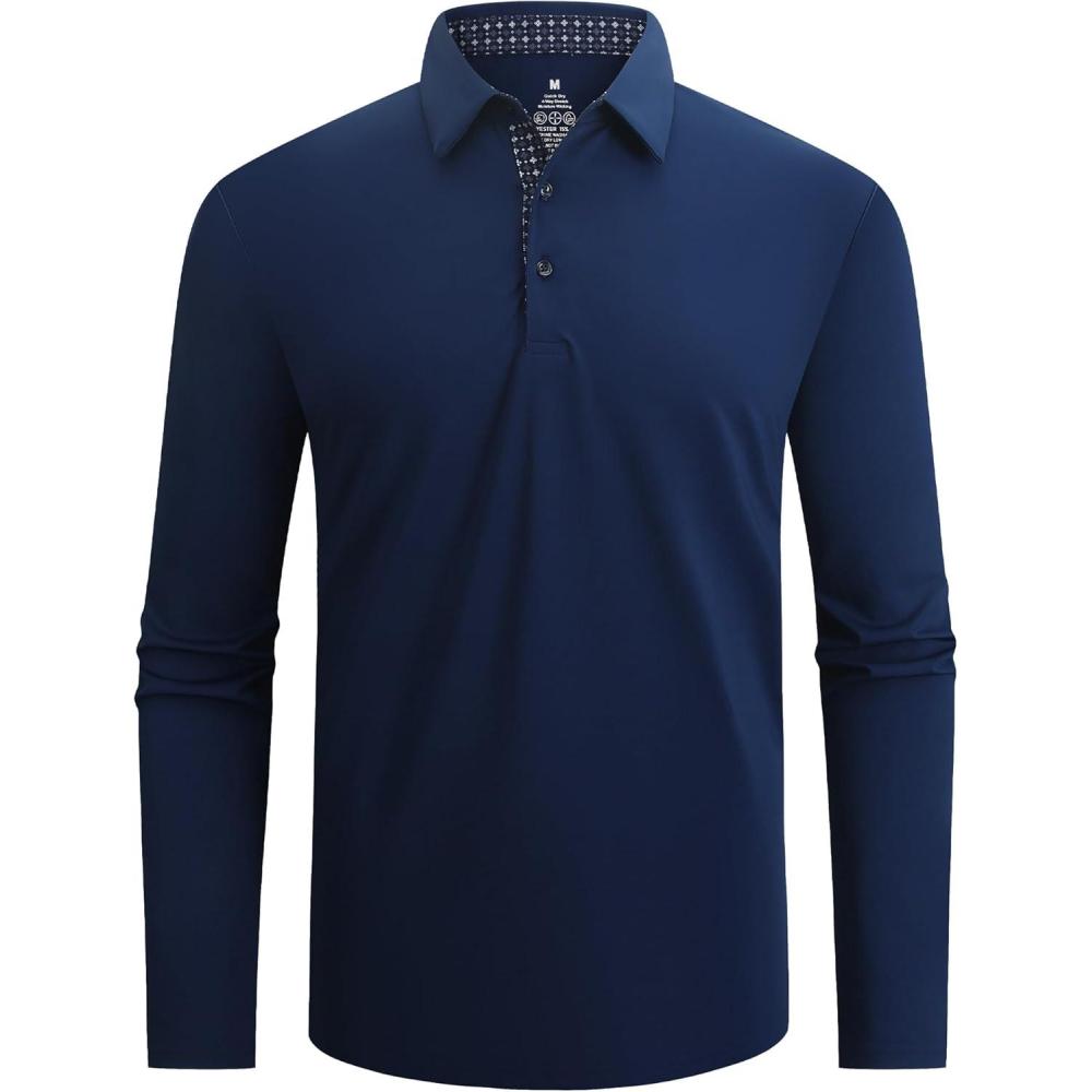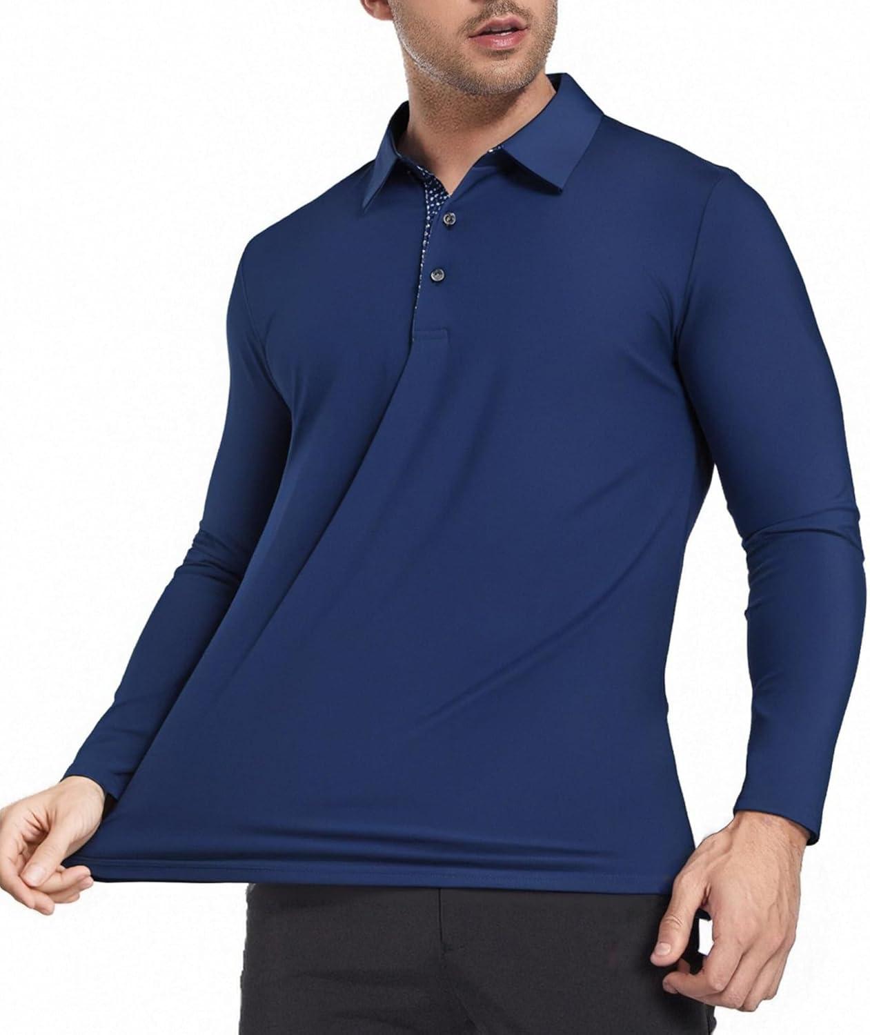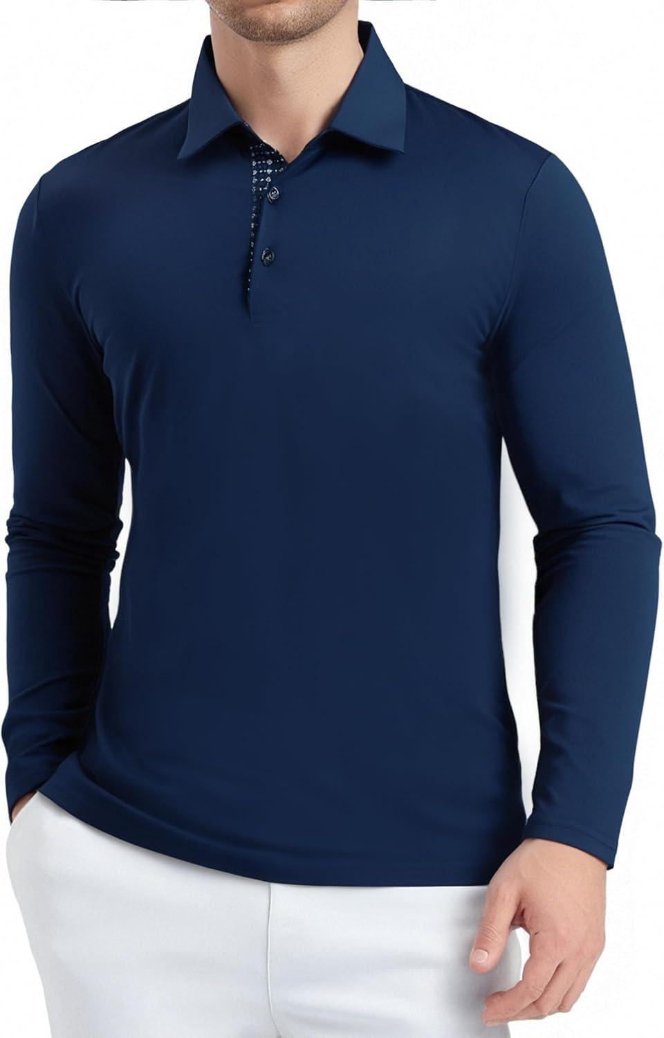 Alex Vando Mens Golf Shirt Moisture Wicking Quick-Dry Solid Long Sleeve Polo Shirts for Men(Navy 09)