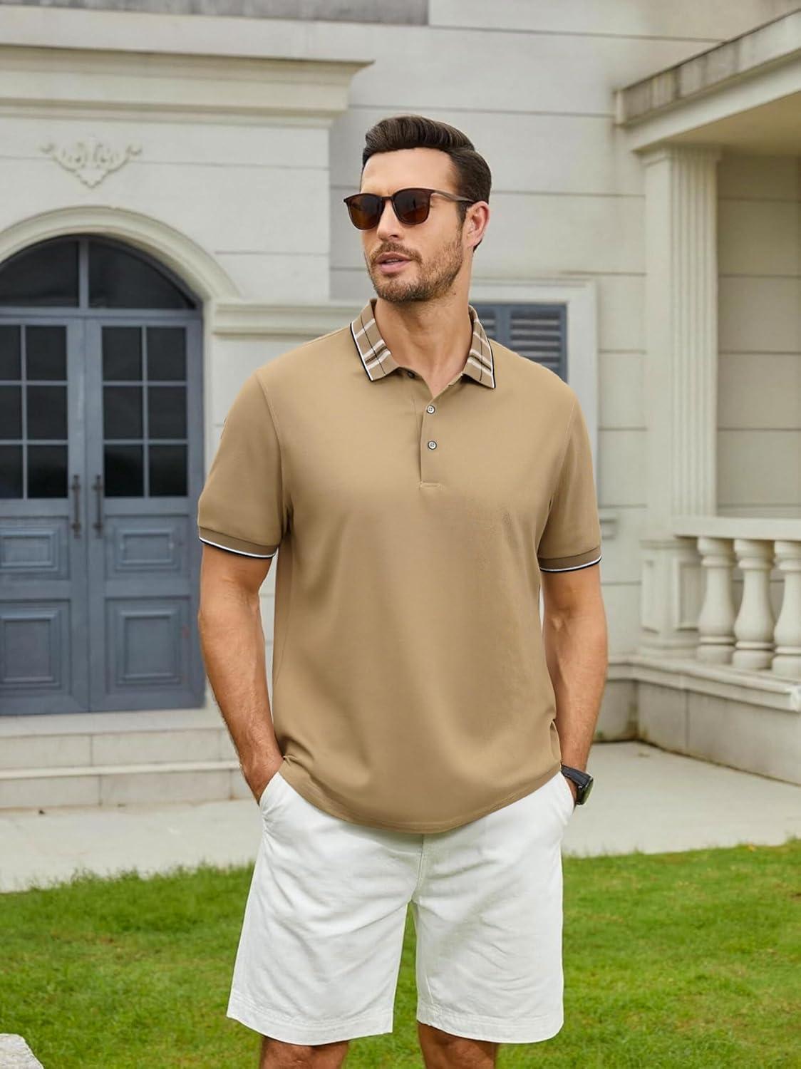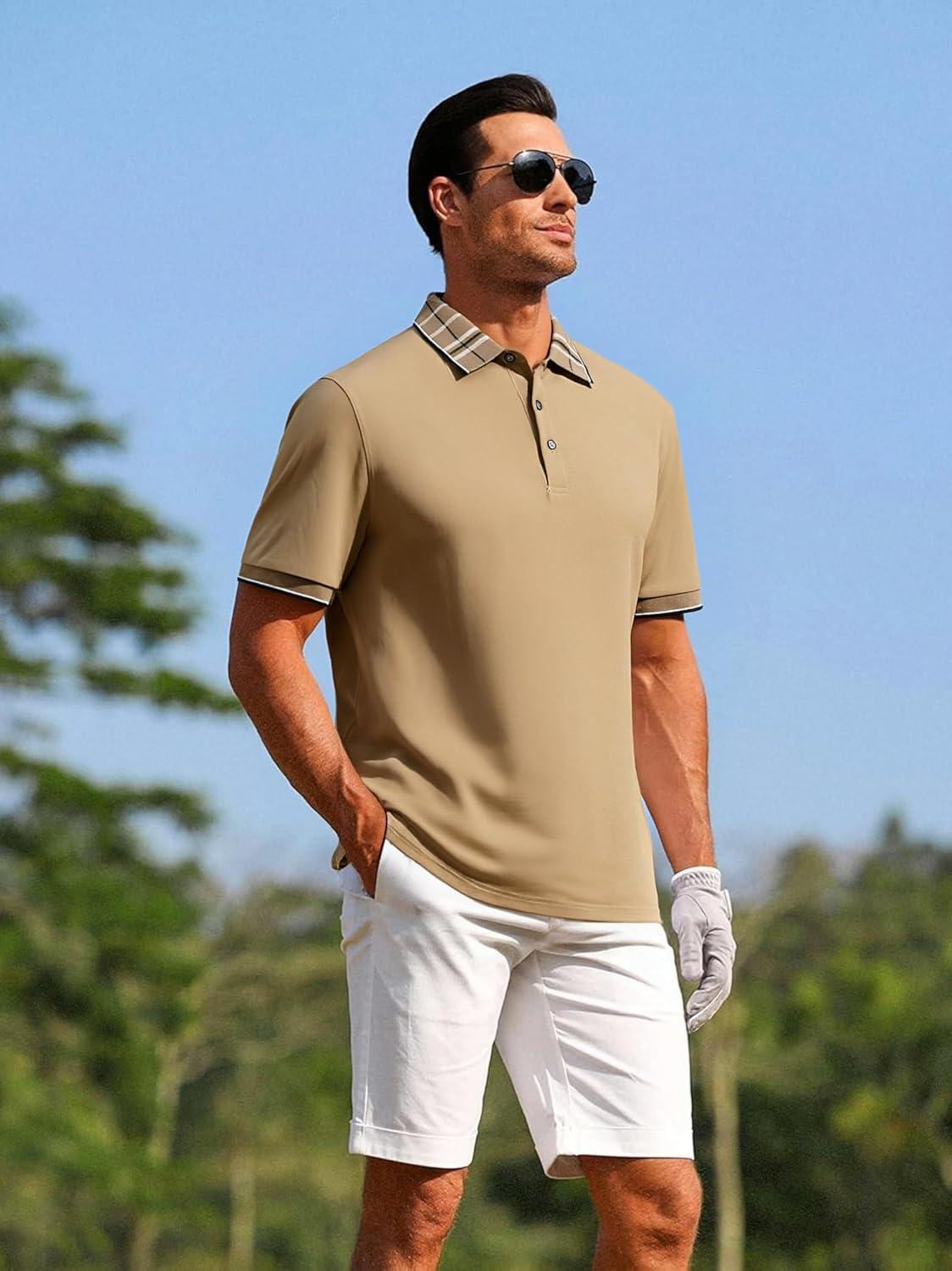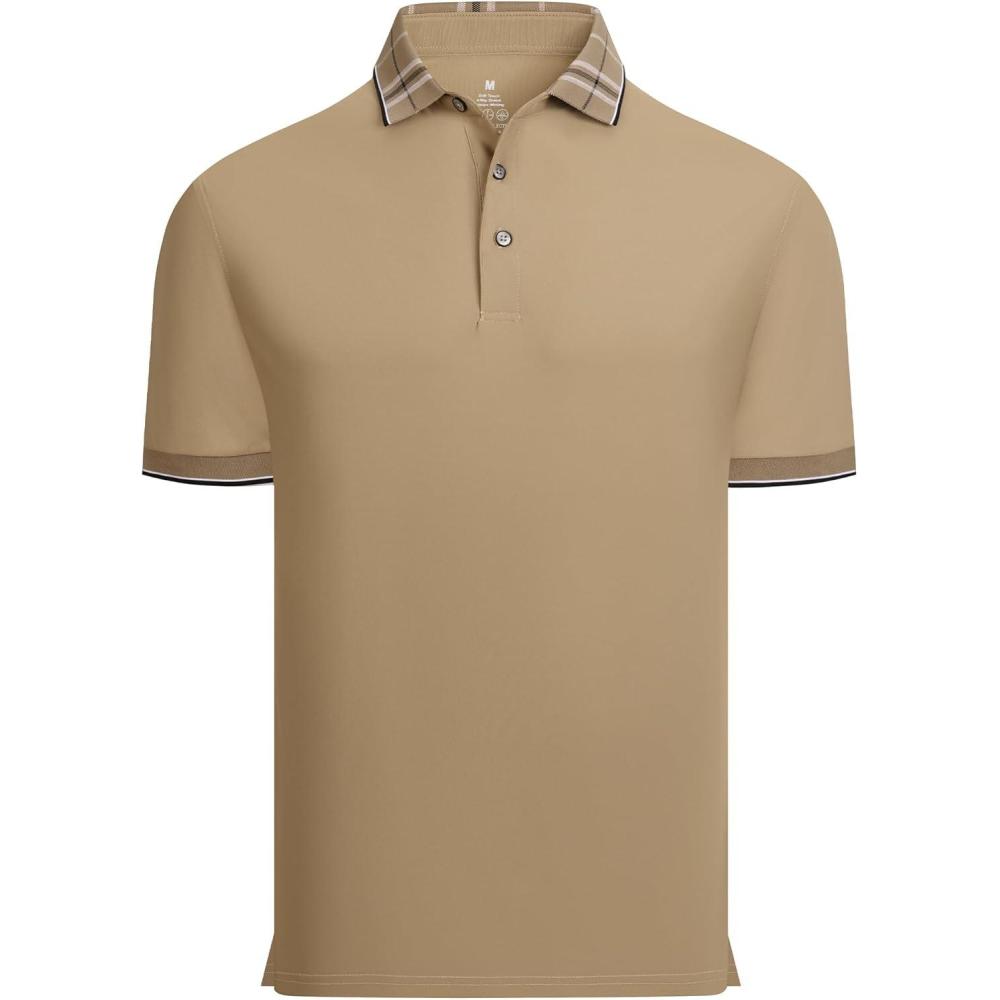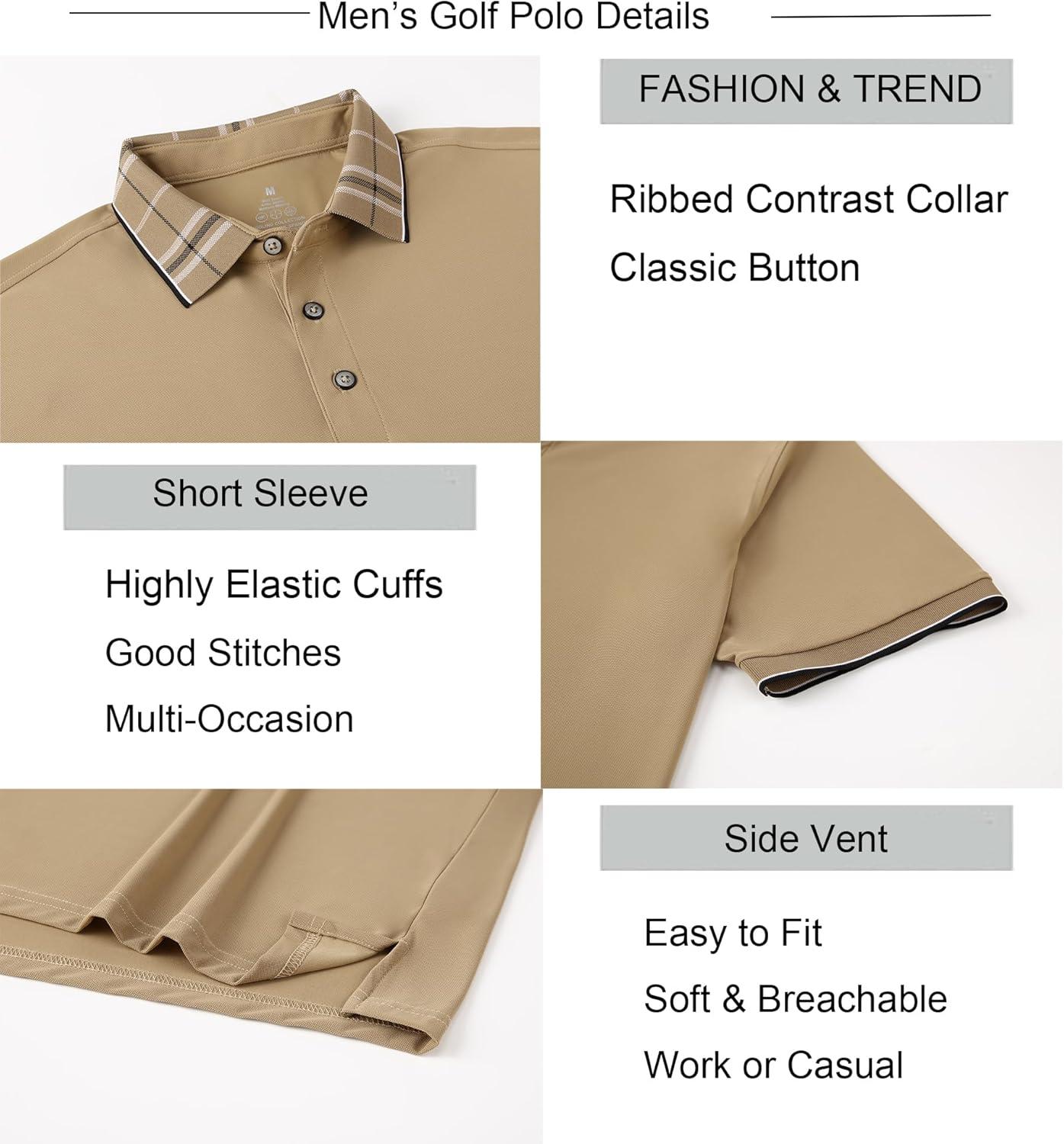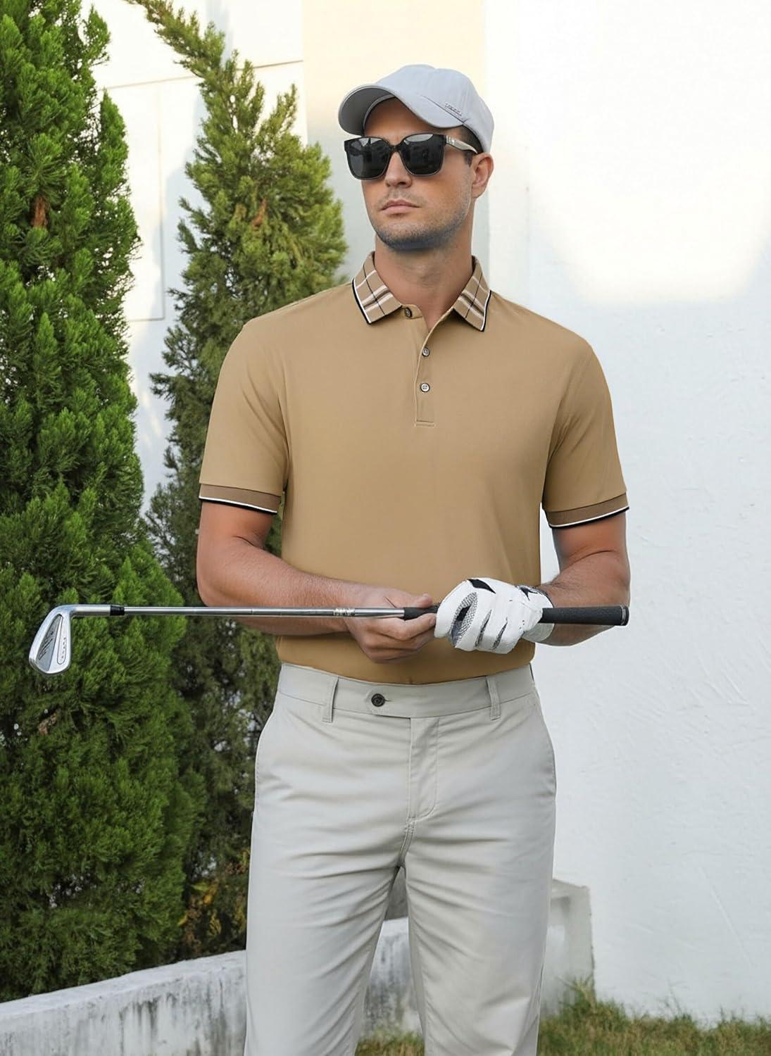 Alex Vando Mens Golf Shirts Moisture Wicking Quick-Dry Short Sleeve Fashion Designed Polo Shirts for Men(Khaki)
