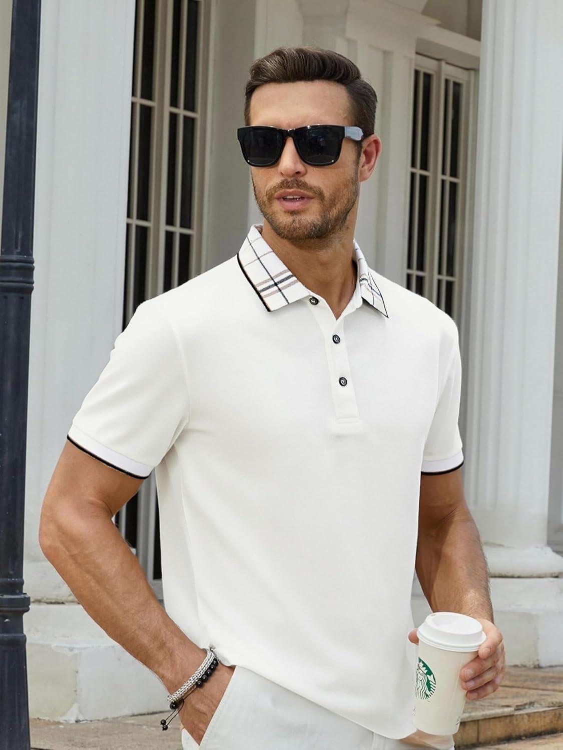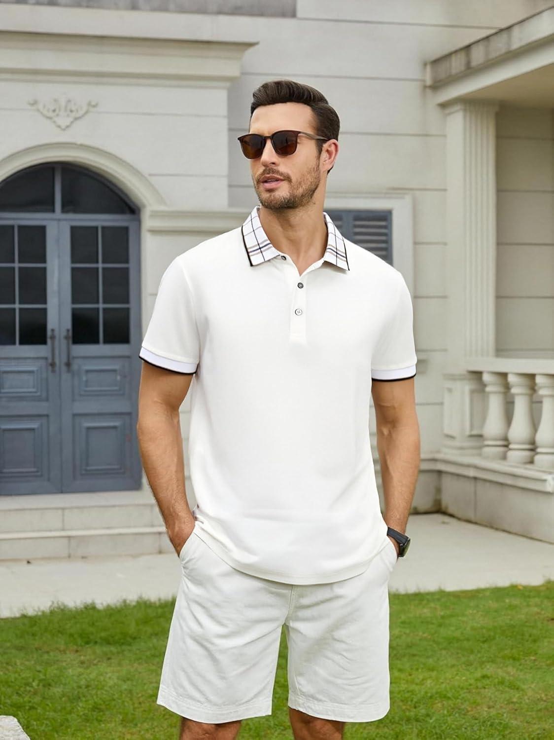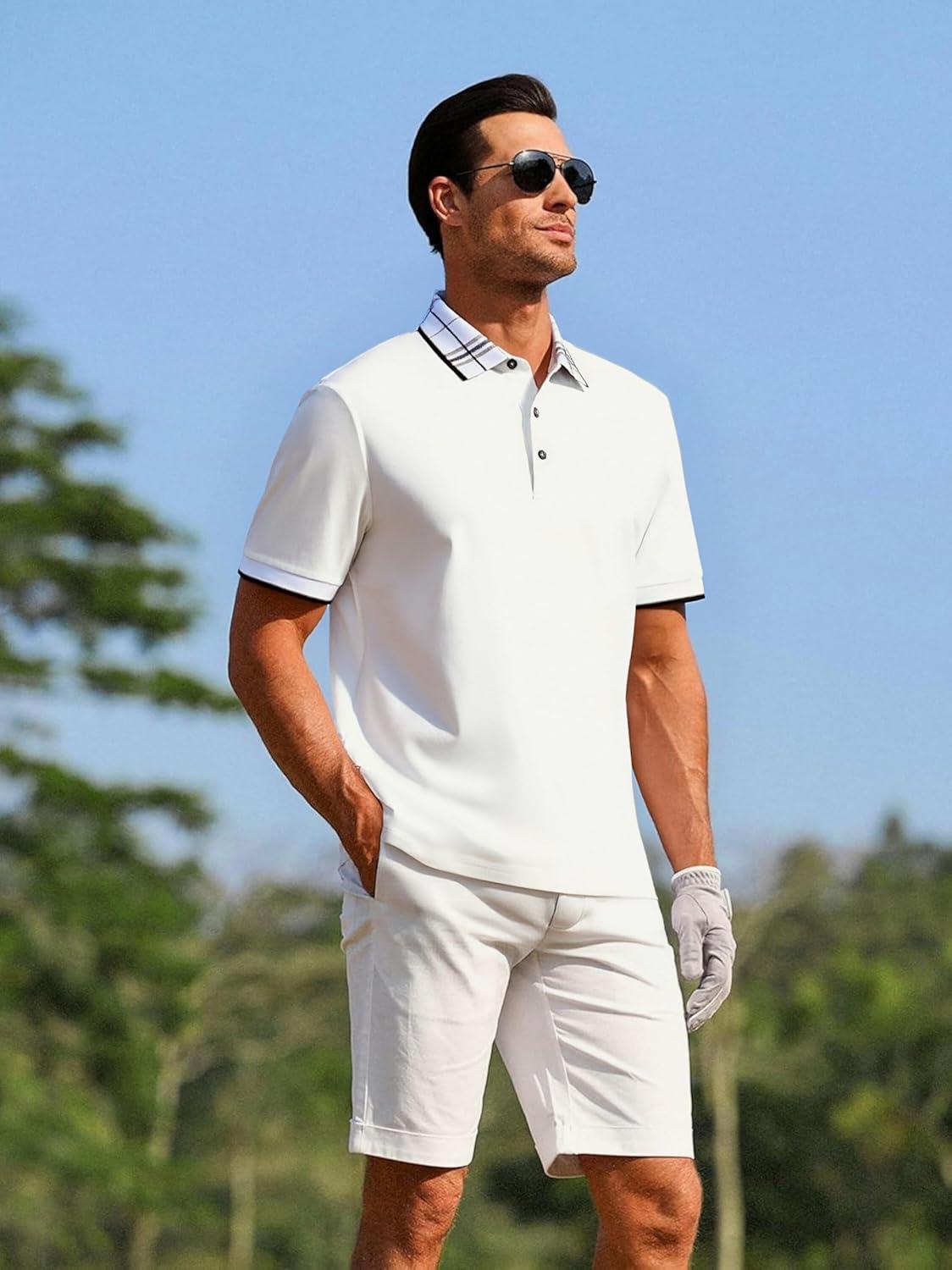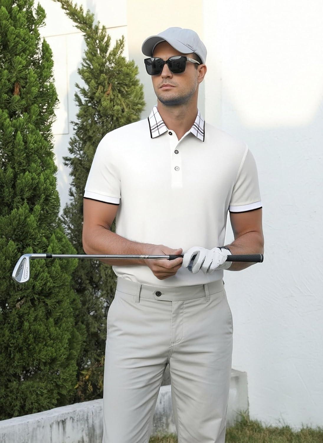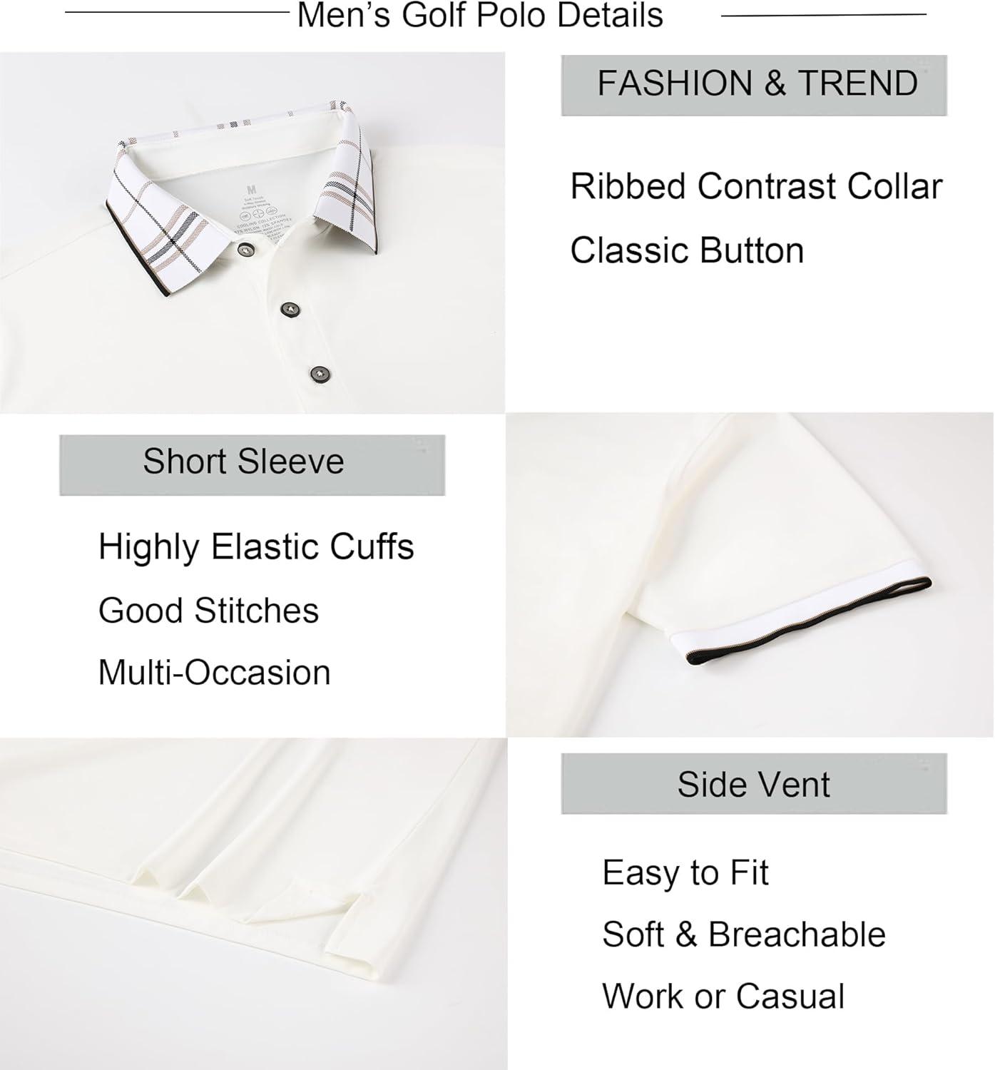 Alex Vando Mens Golf Shirts Moisture Wicking Quick-Dry Short Sleeve Fashion Designed Polo Shirts for Men(White)