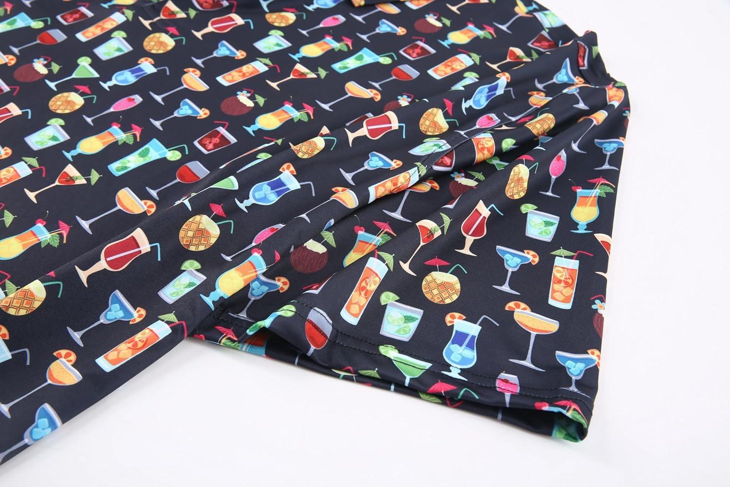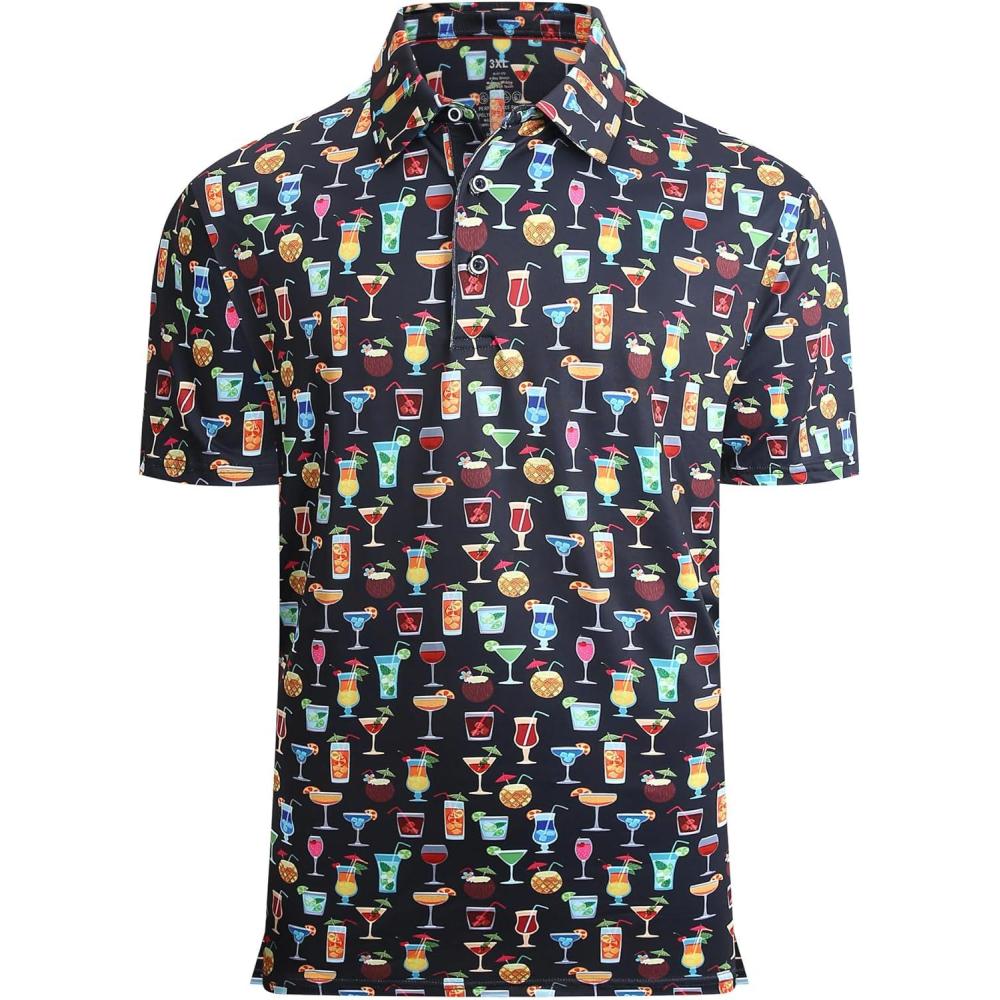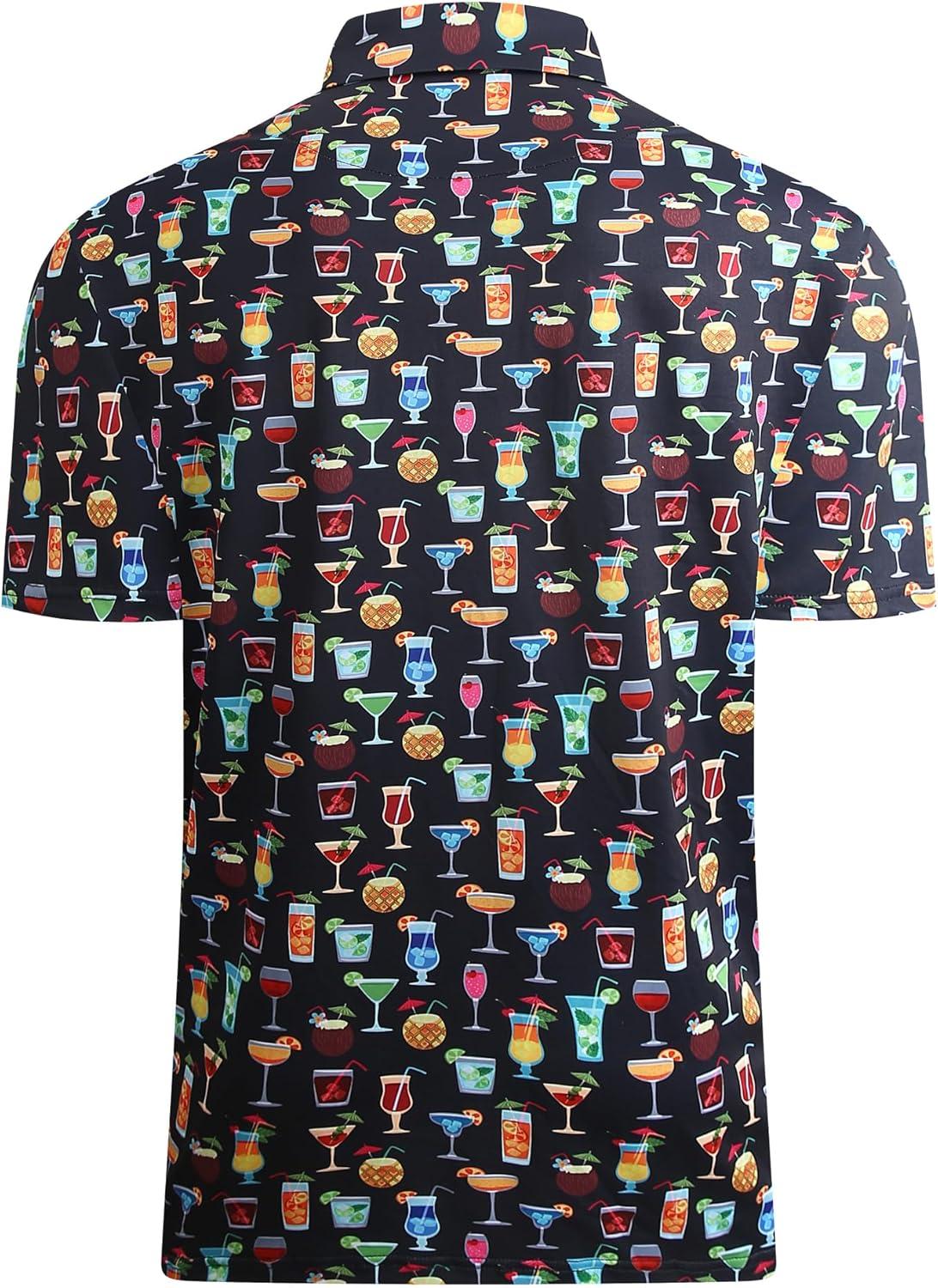 Alex Vando Mens Hawaiian Golf Shirt Moisture Wicking Digital Print Golf Shirts for Men(Black Drinking)