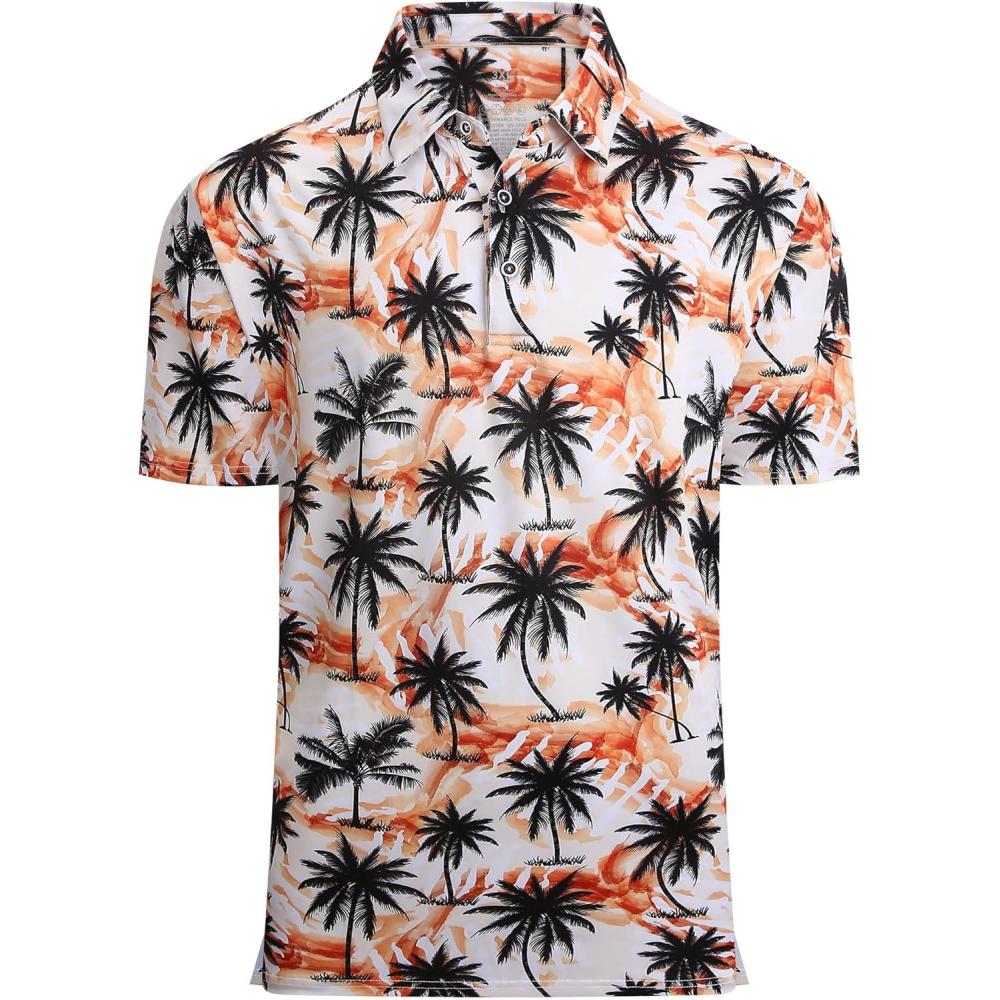 Alex Vando Mens Hawaiian Golf Shirt Moisture Wicking Digital Print Golf Shirts for Men(Black Palm Tree)