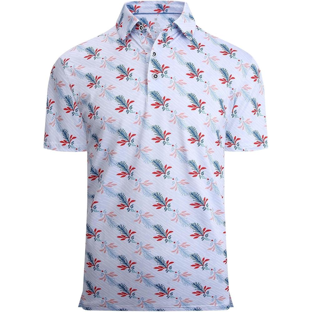 Alex Vando Mens Hawaiian Golf Shirt Moisture Wicking Digital Print Golf Shirts for Men(Blue Christmas Leaf)