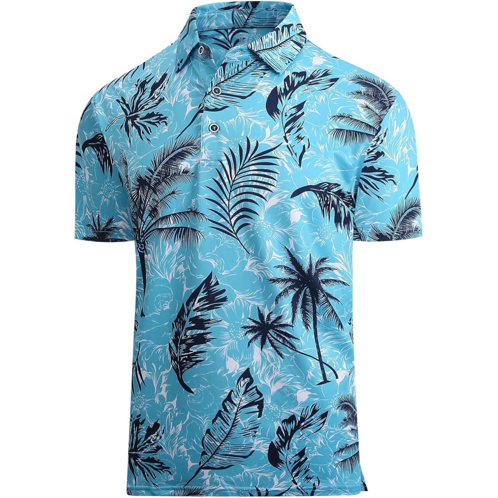 Alex Vando Mens Hawaiian Golf Shirt Moisture Wicking Digital Print Golf Shirts for Men(Blue Palm Tree)
