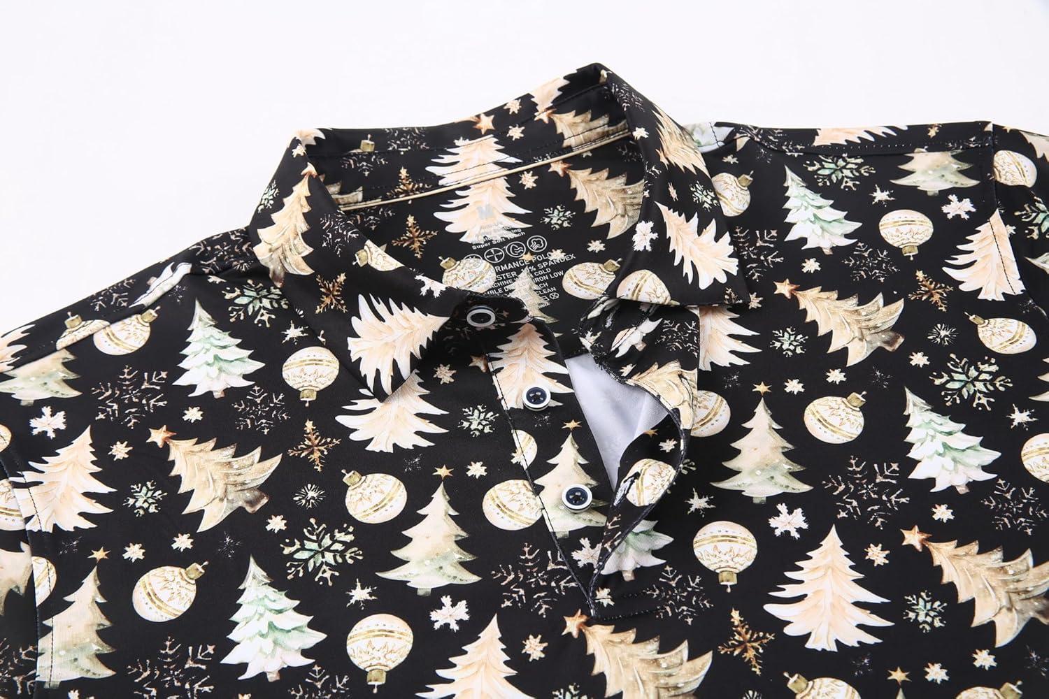 Alex Vando Mens Hawaiian Golf Shirt Moisture Wicking Digital Print Golf Shirts for Men(Gold Christmas Tree)