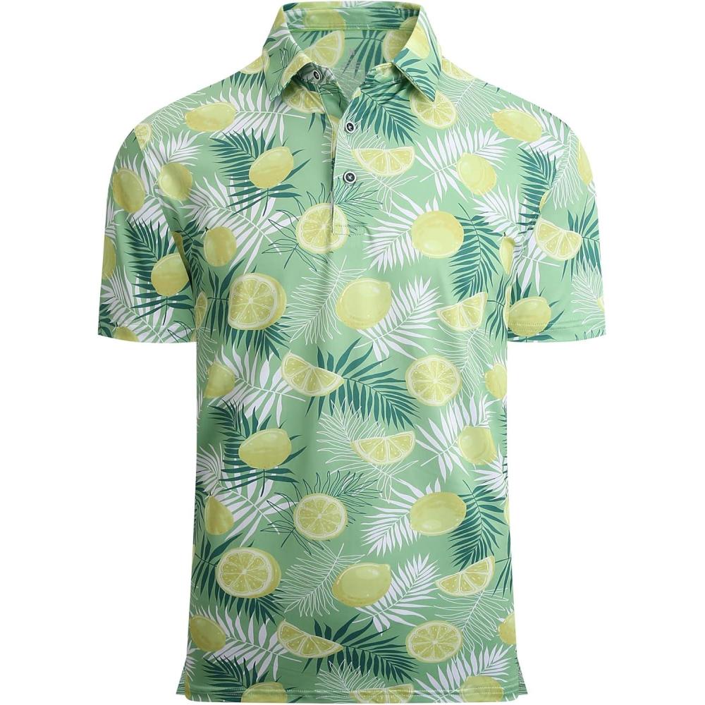 Alex Vando Mens Hawaiian Golf Shirt Moisture Wicking Digital Print Golf Shirts for Men(Green Lemon)