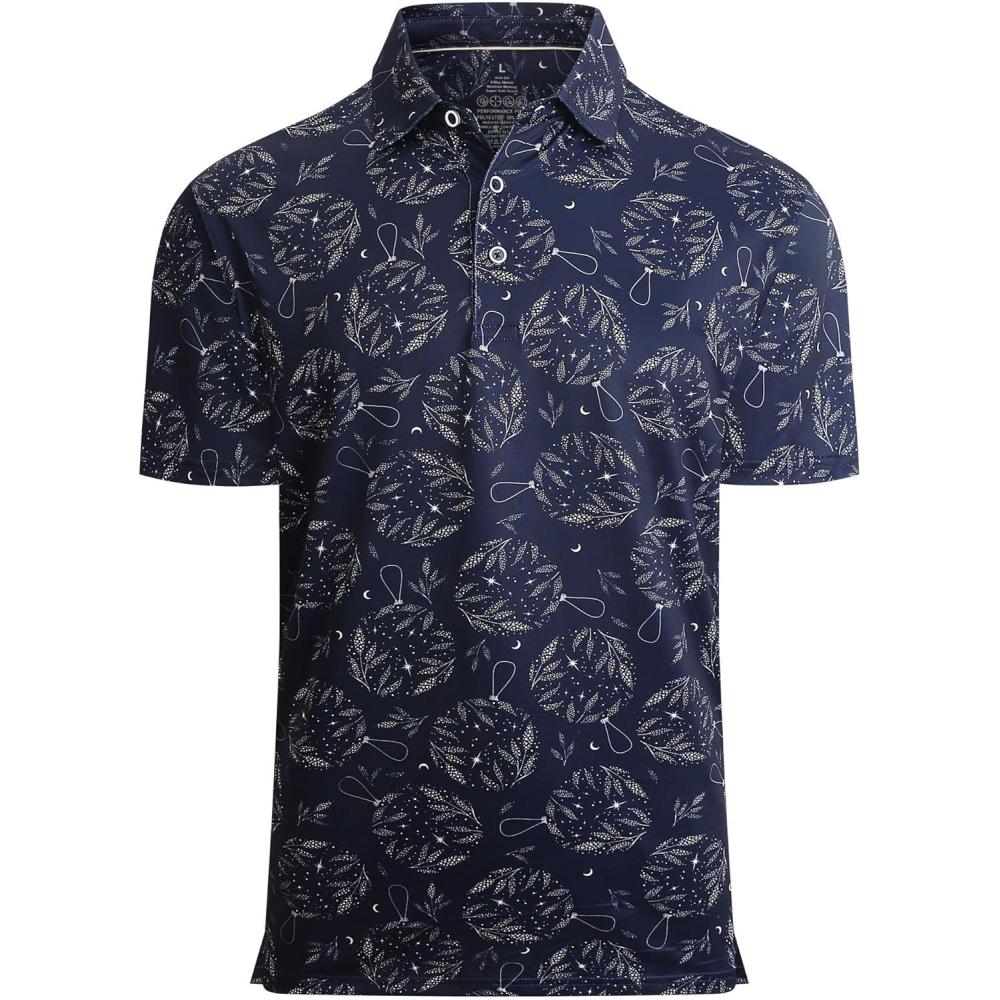Alex Vando Mens Hawaiian Golf Shirt Moisture Wicking Digital Print Golf Shirts for Men(Navy Christmas Ball)