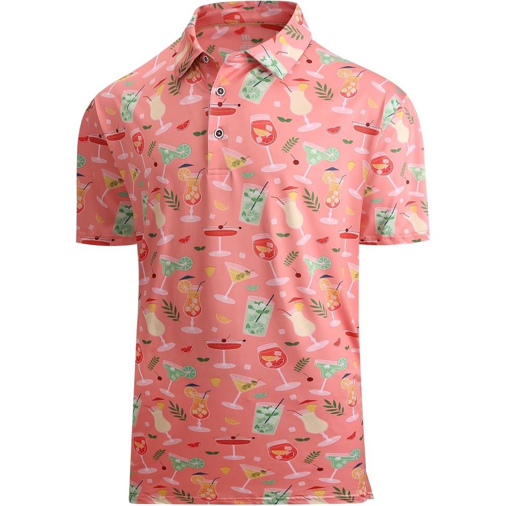 Alex Vando Mens Hawaiian Golf Shirt Moisture Wicking Digital Print Golf Shirts for Men(Pink Drinking)