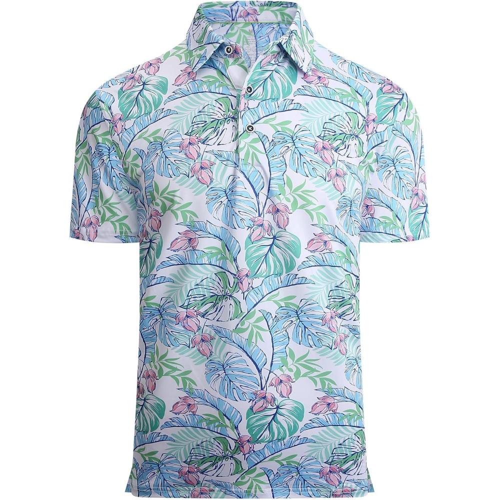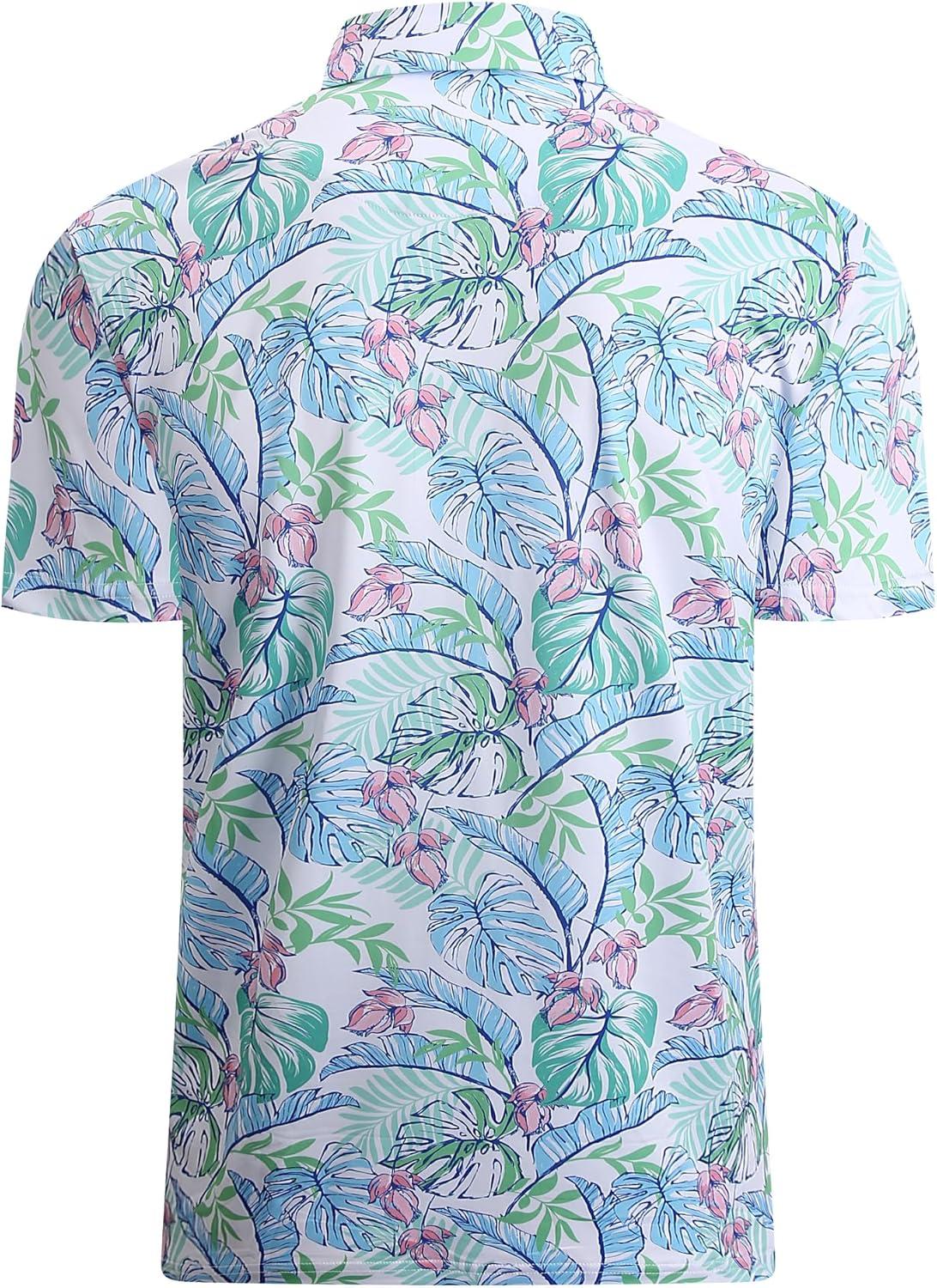 Alex Vando Mens Hawaiian Golf Shirt Moisture Wicking Digital Print Golf Shirts for Men(White Flower)