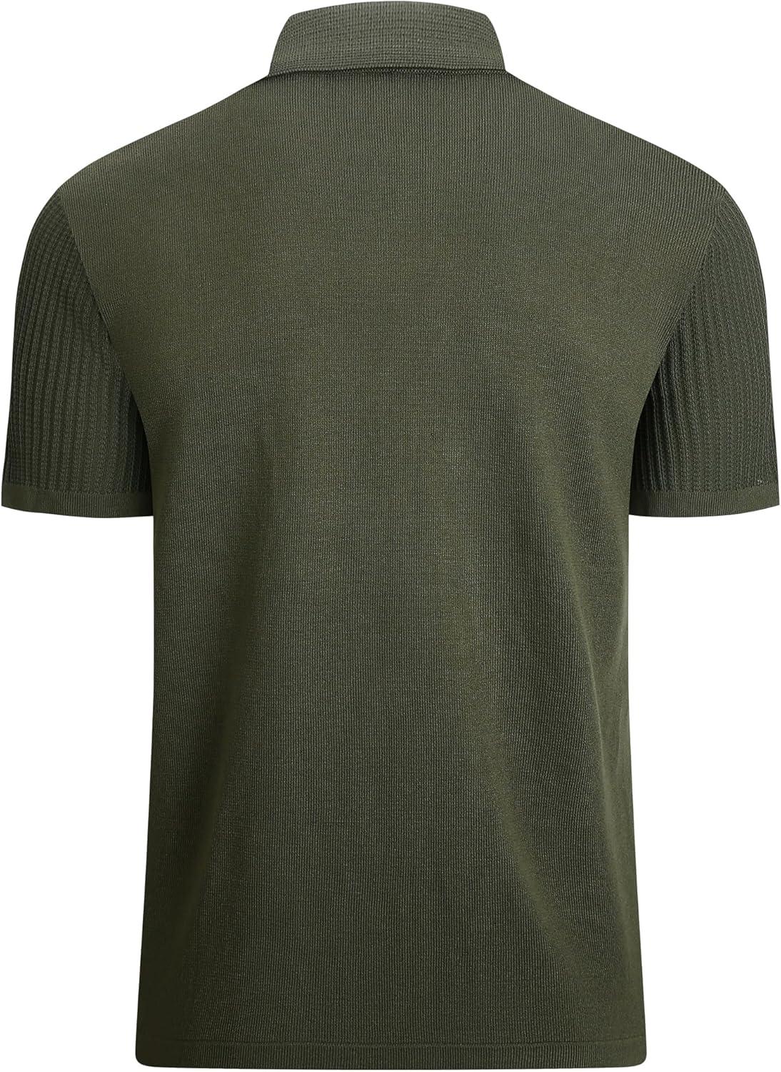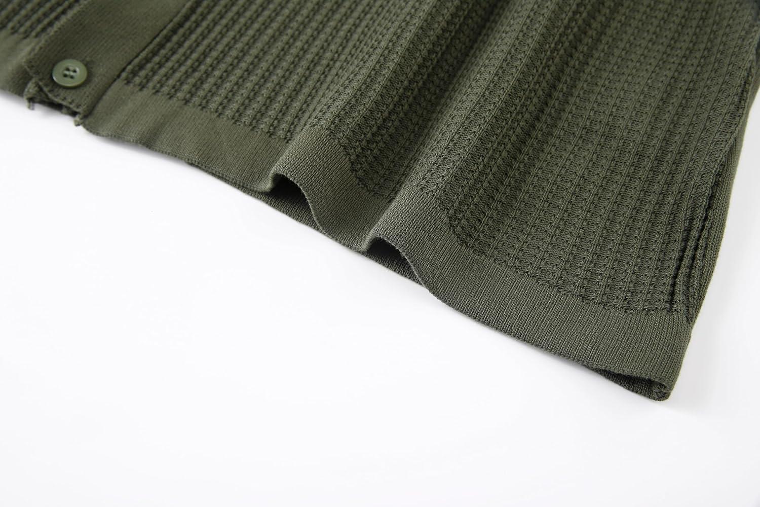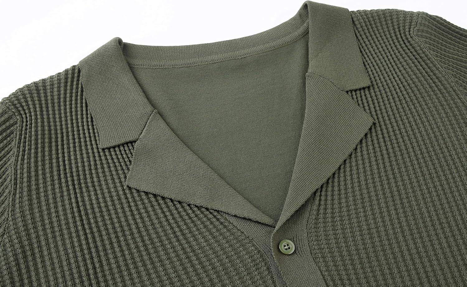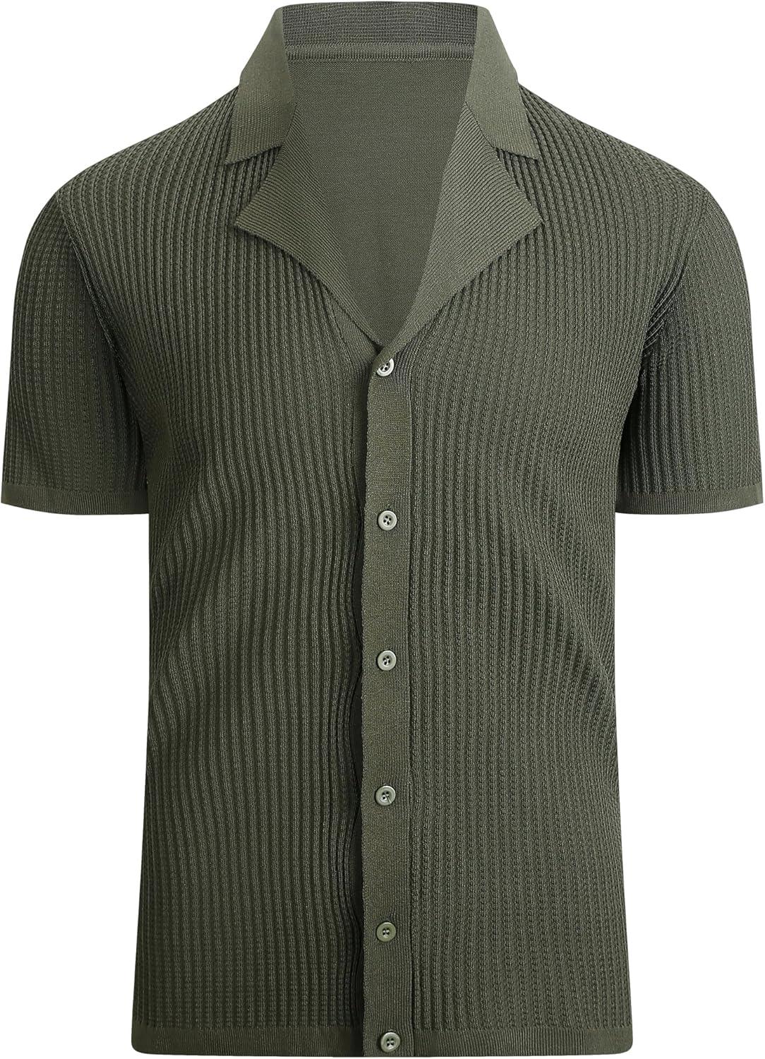 Alex Vando Mens Knit Dress Shirts Camp Collar Jacquard Short Sleeve Shirt for Men(Stripe Army)