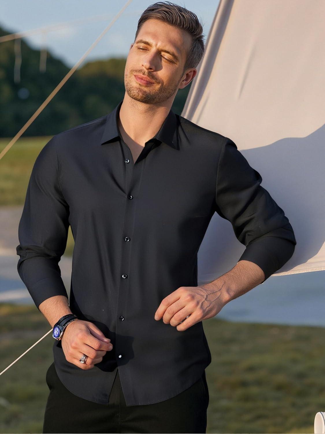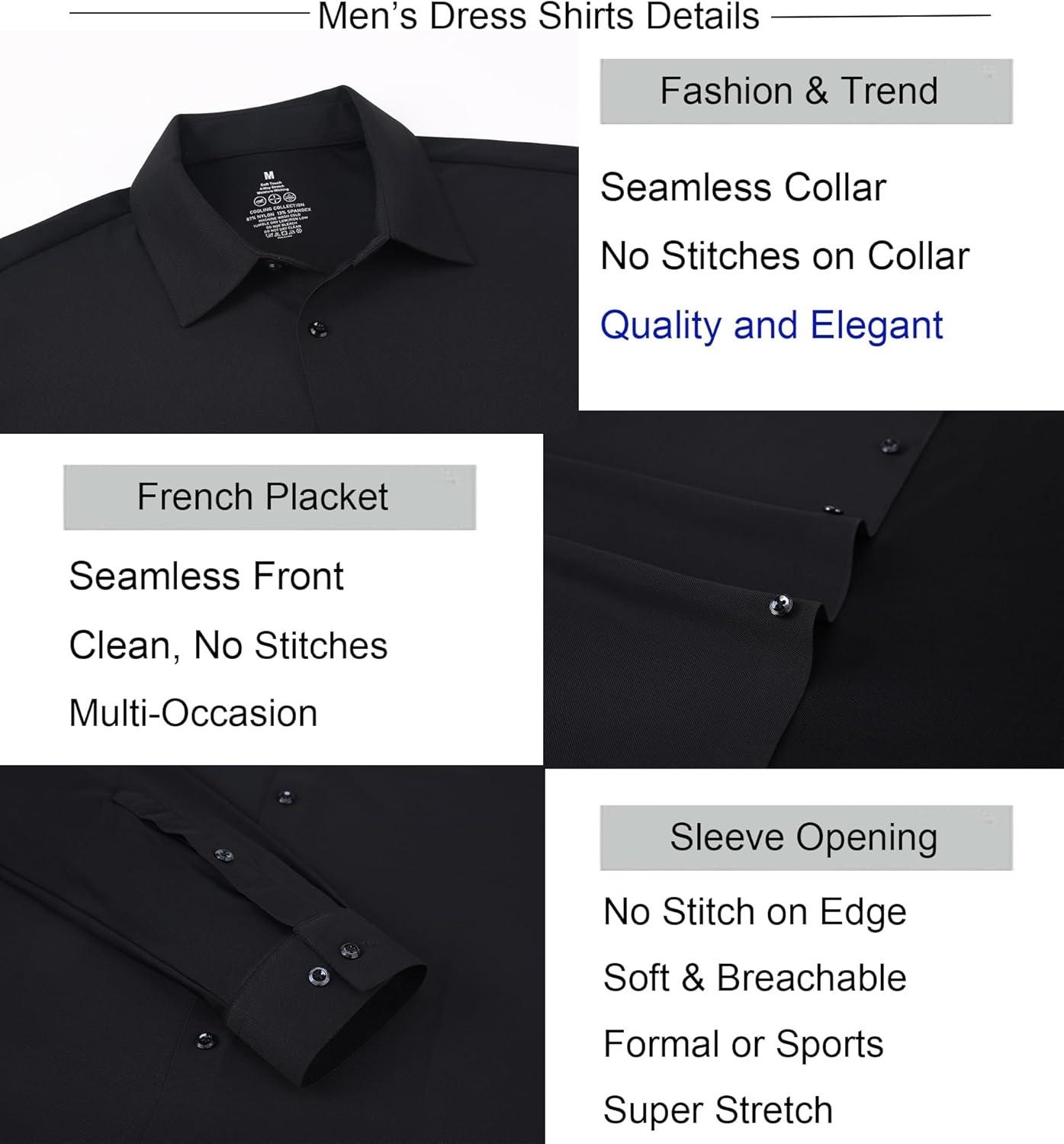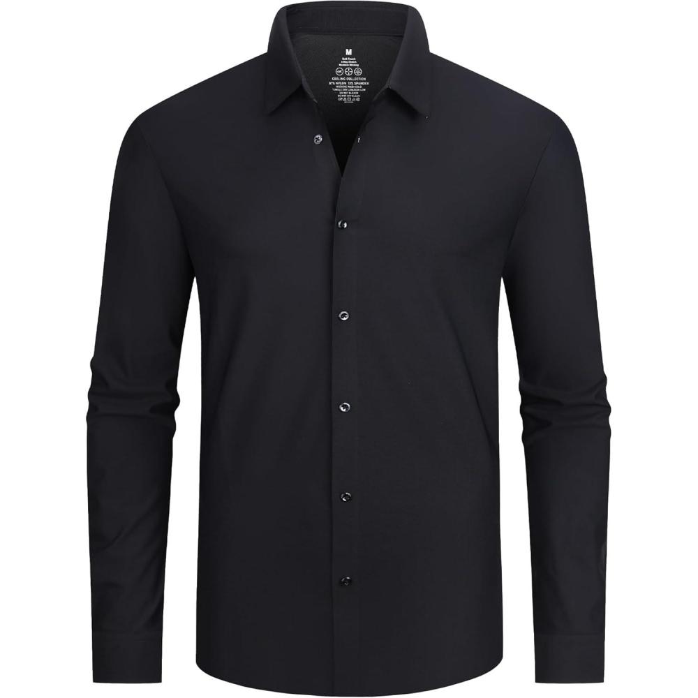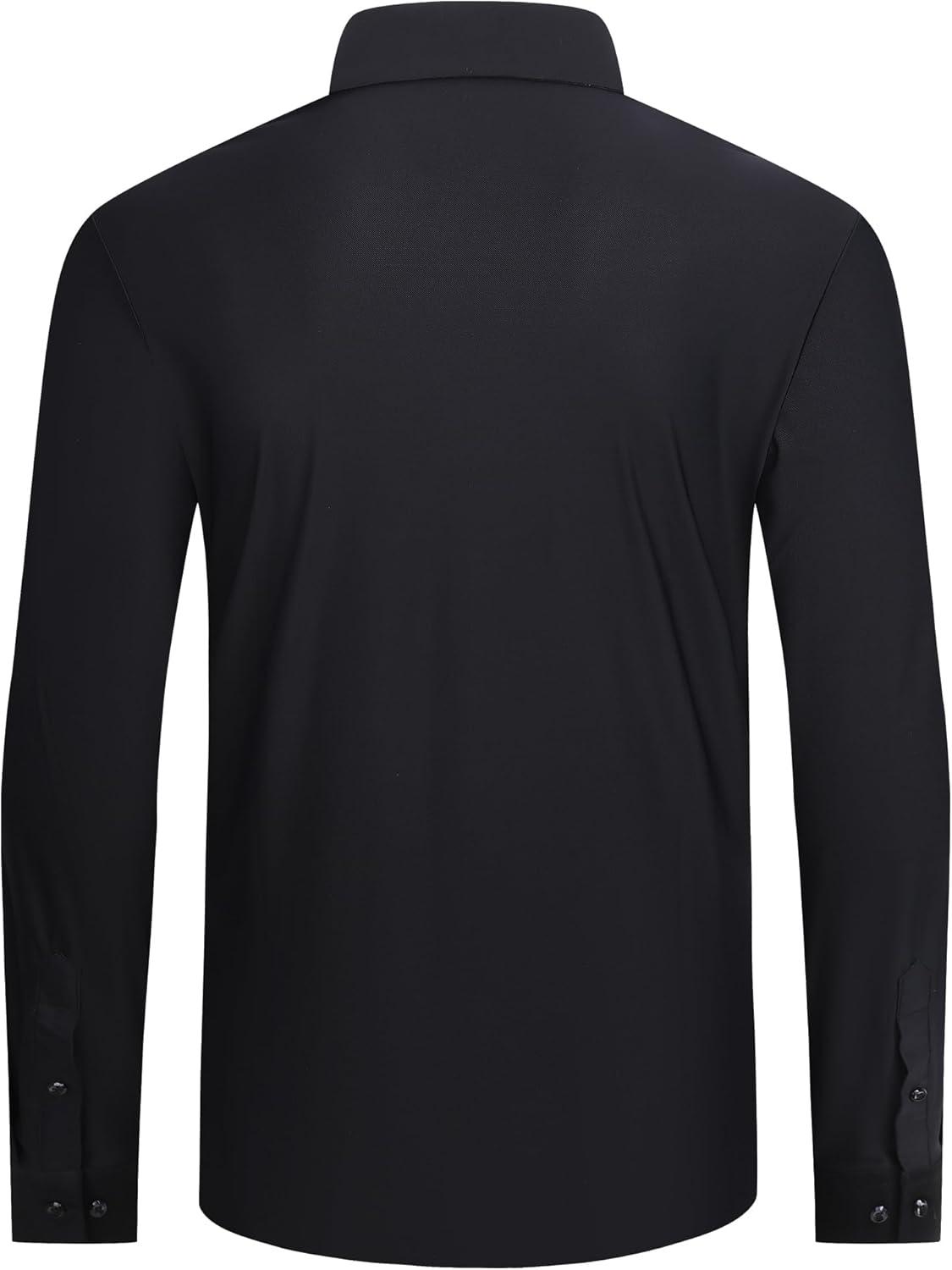 Alex Vando Mens Knit Dress Shirts Seamless Collar Long Sleeve Super Stretch Sports Shirts for Men(Black)