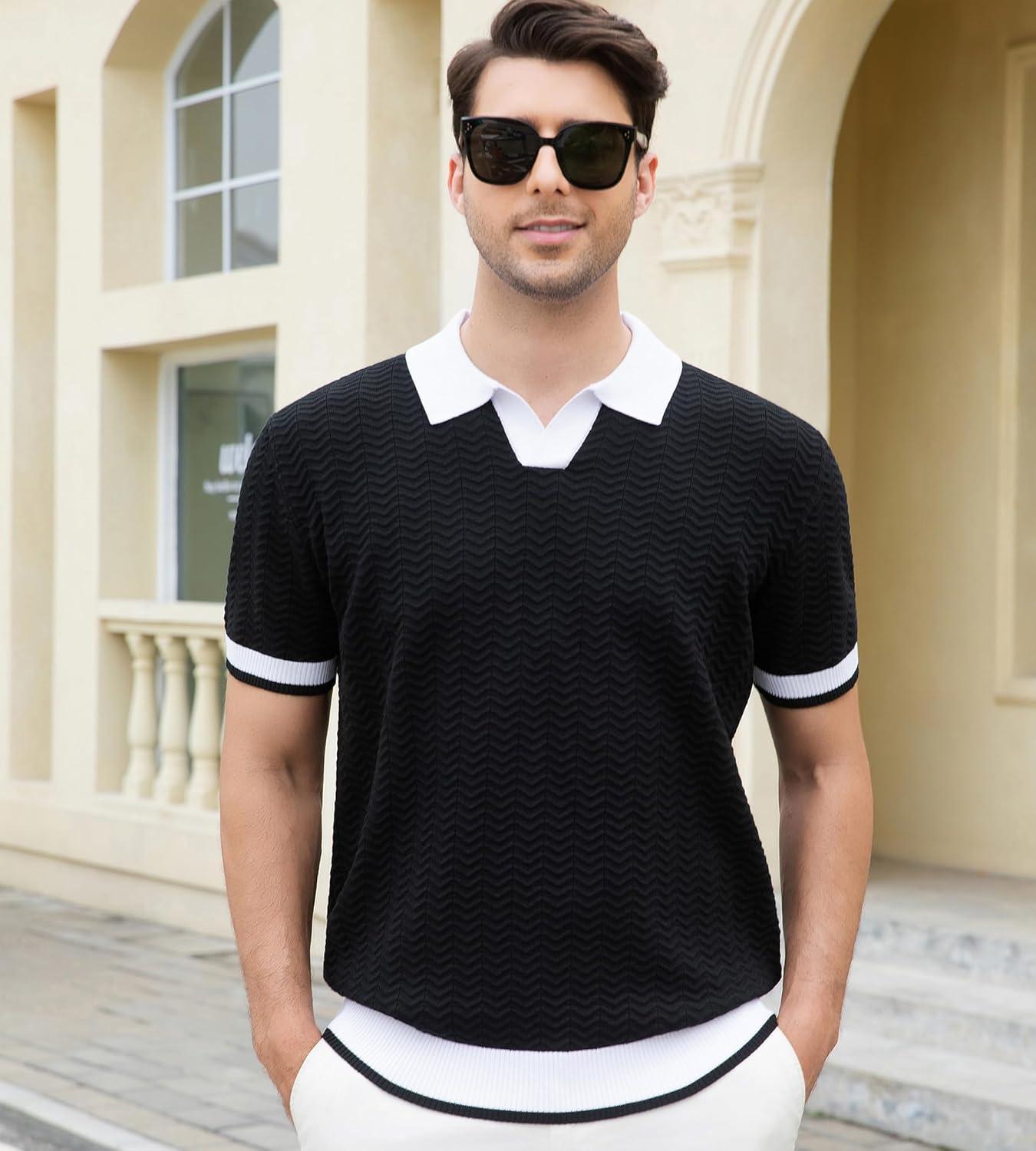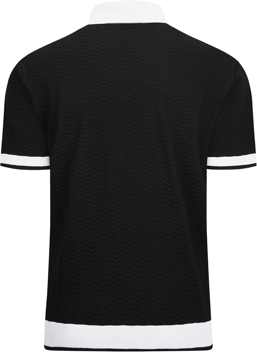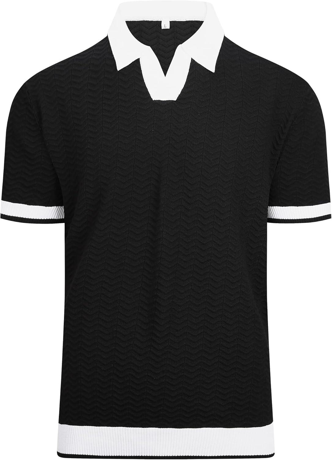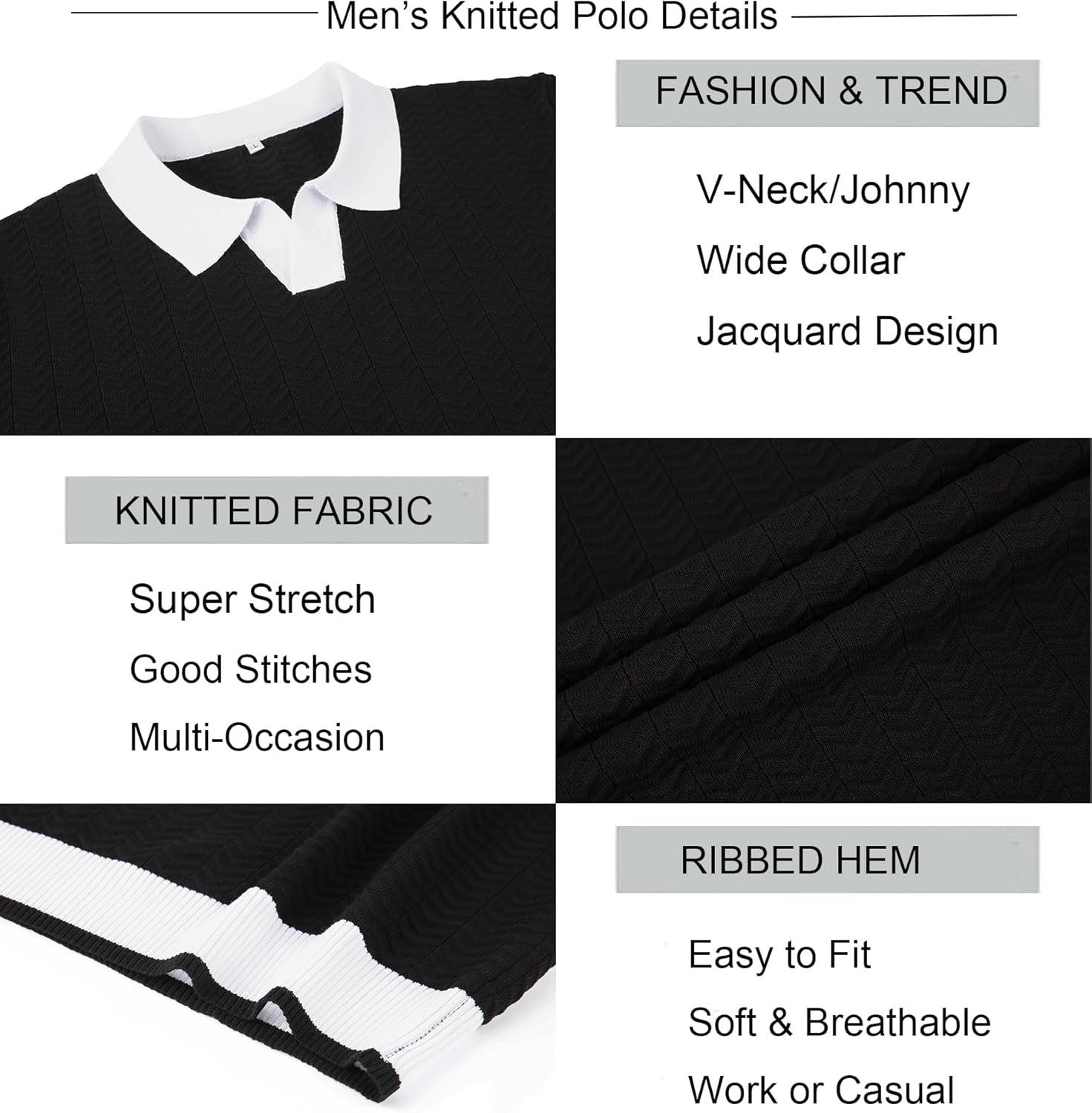 Alex Vando Mens Knit Polo Shirts Casual Short Sleeve Johnny Collar Golf Shirts(Black)