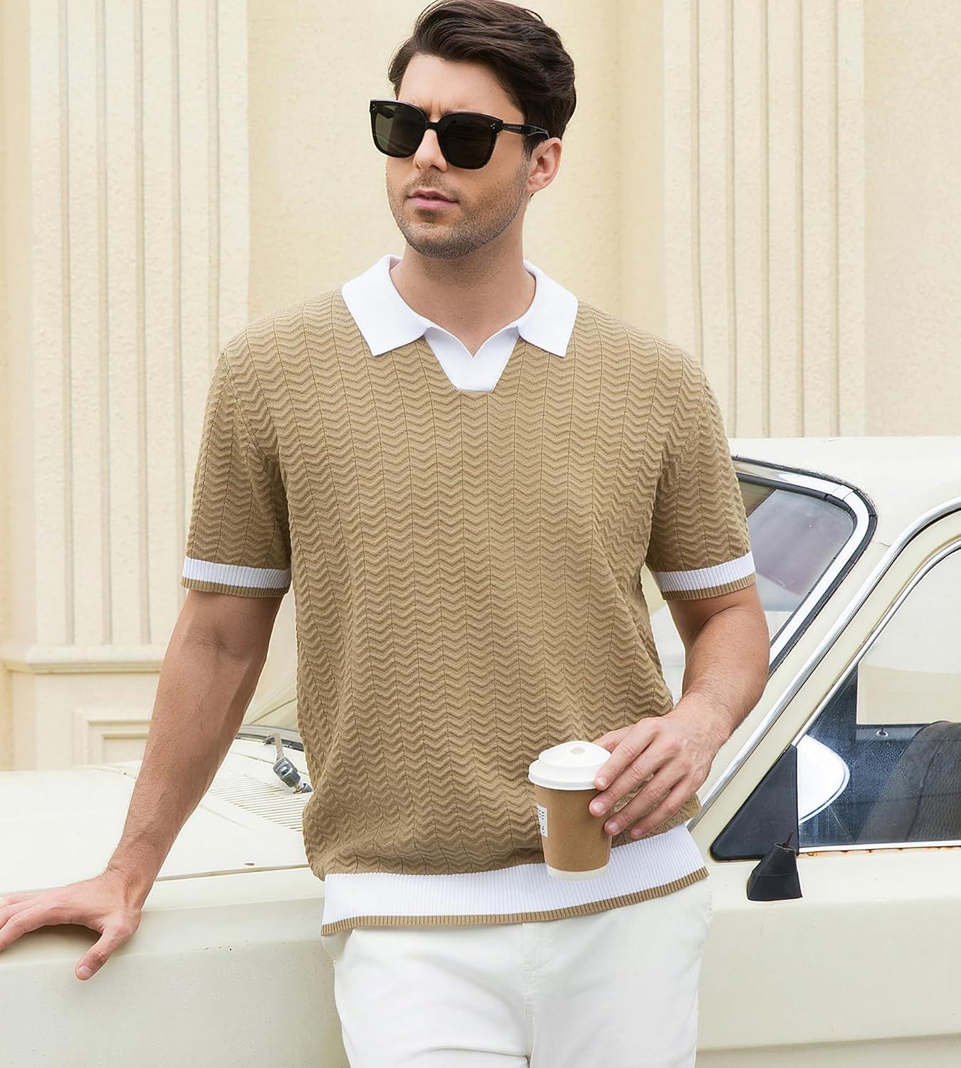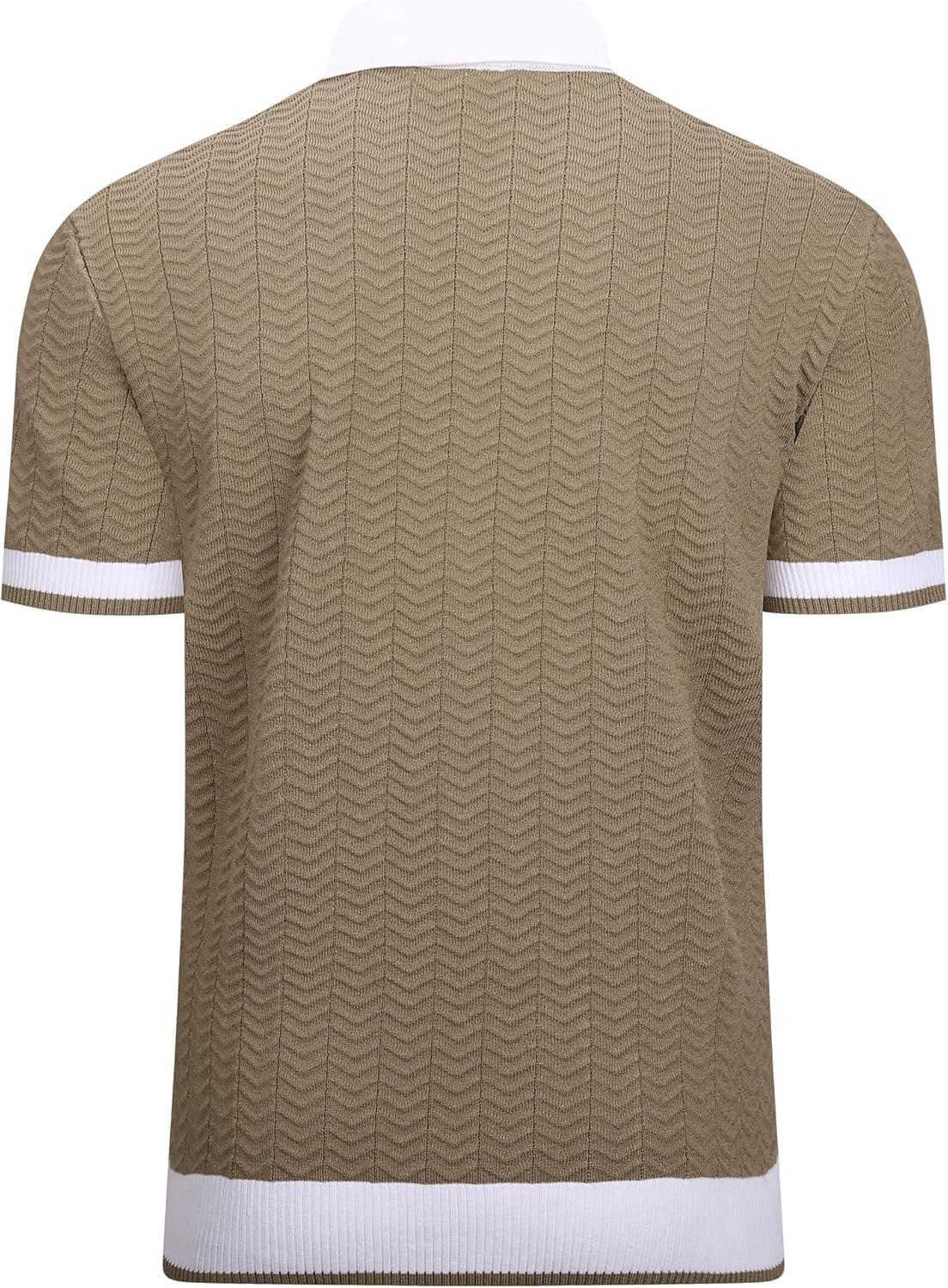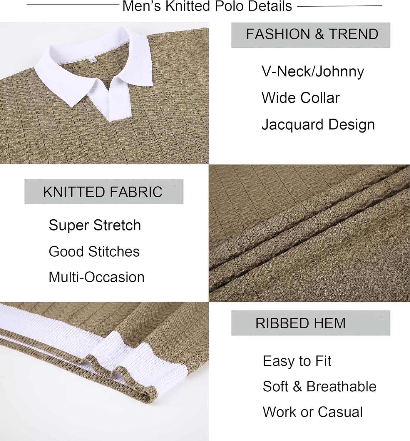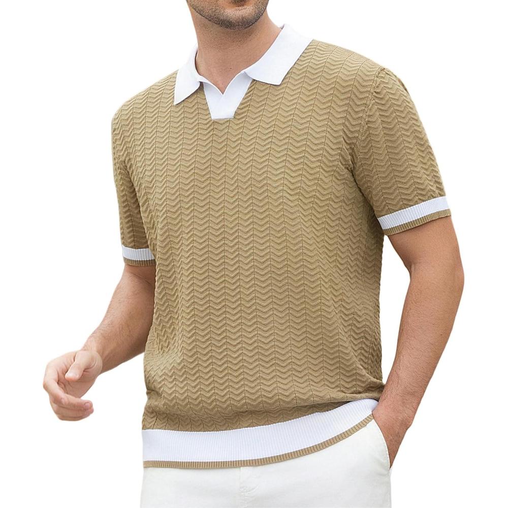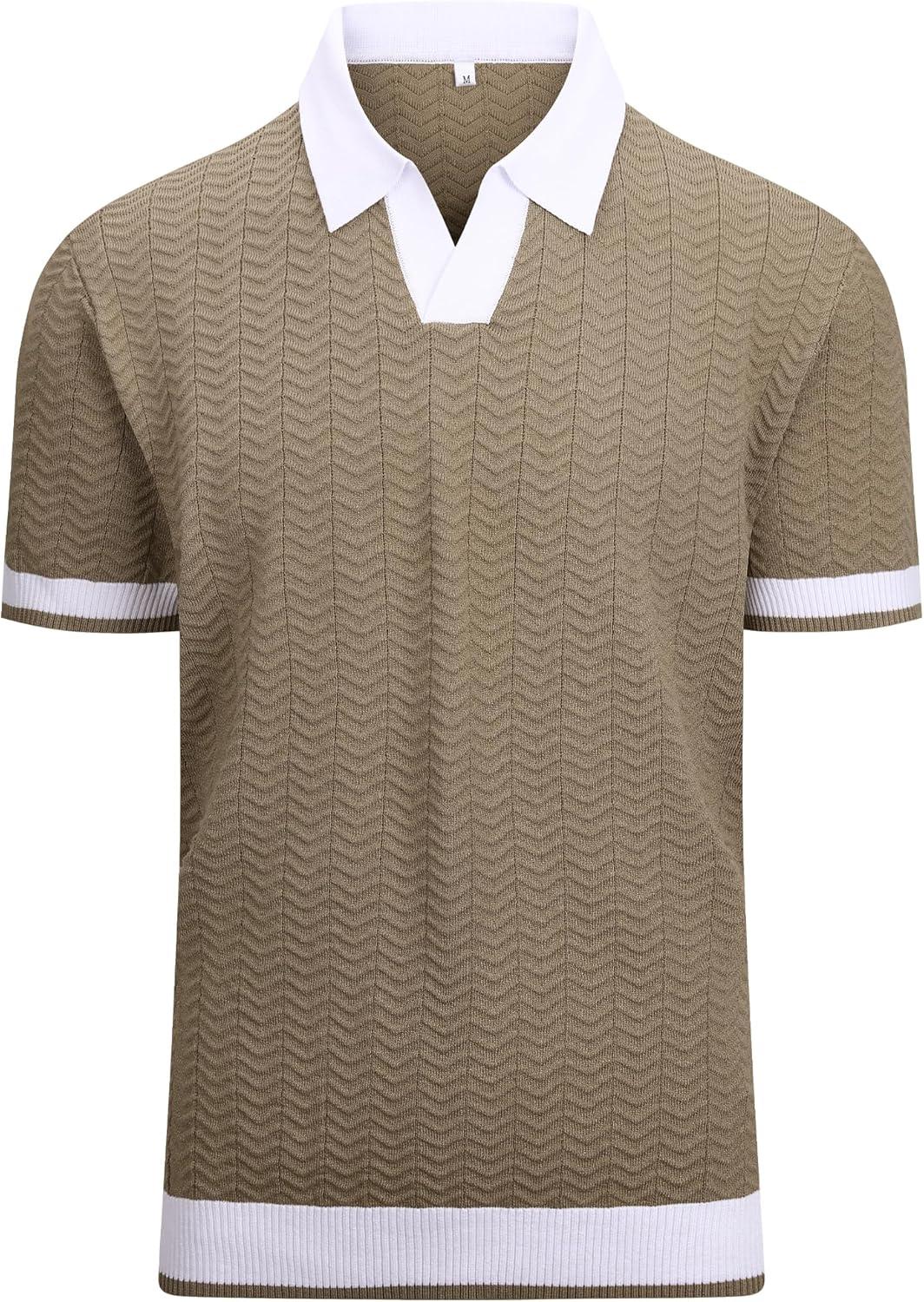Alex Vando Mens Knit Polo Shirts Casual Short Sleeve Johnny Collar Golf Shirts(Khaki)