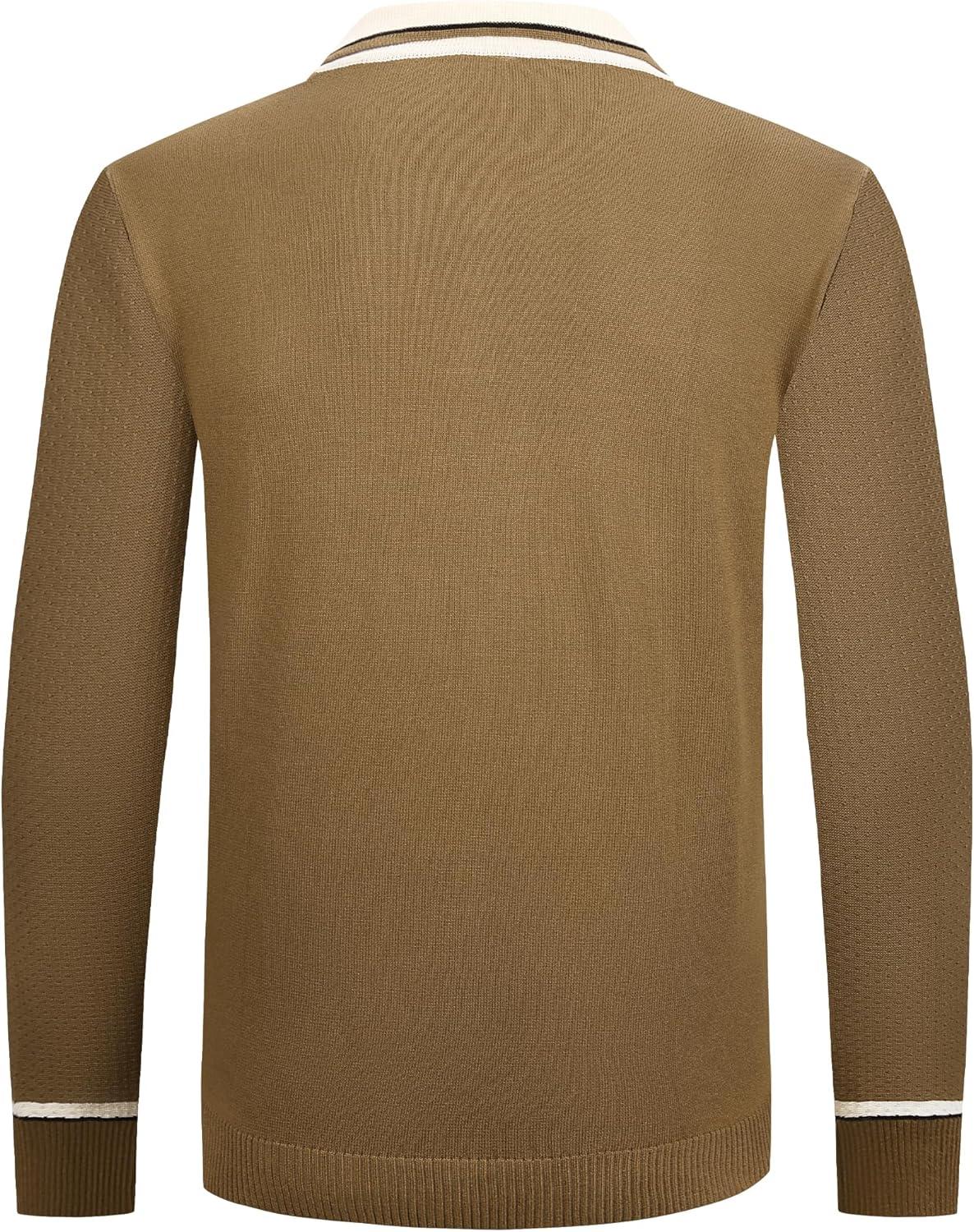 Alex Vando Mens Knit Polo Shirts Long Sleeve Sweater Casual Fashion Classic Button Down Polo Shirts(Brown)