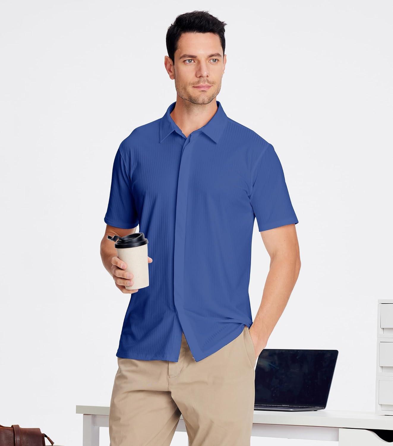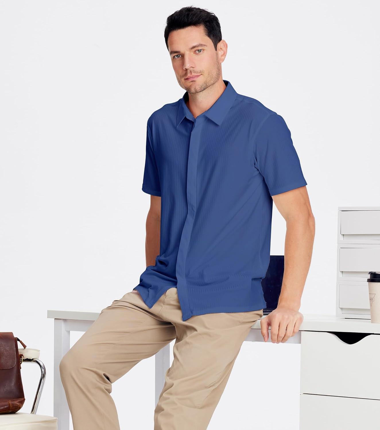 Alex Vando Mens Knitted Dress Shirts 8-Way Stretch Easy Care Solid Short Sleeve Shirt for Men(62 Royal)