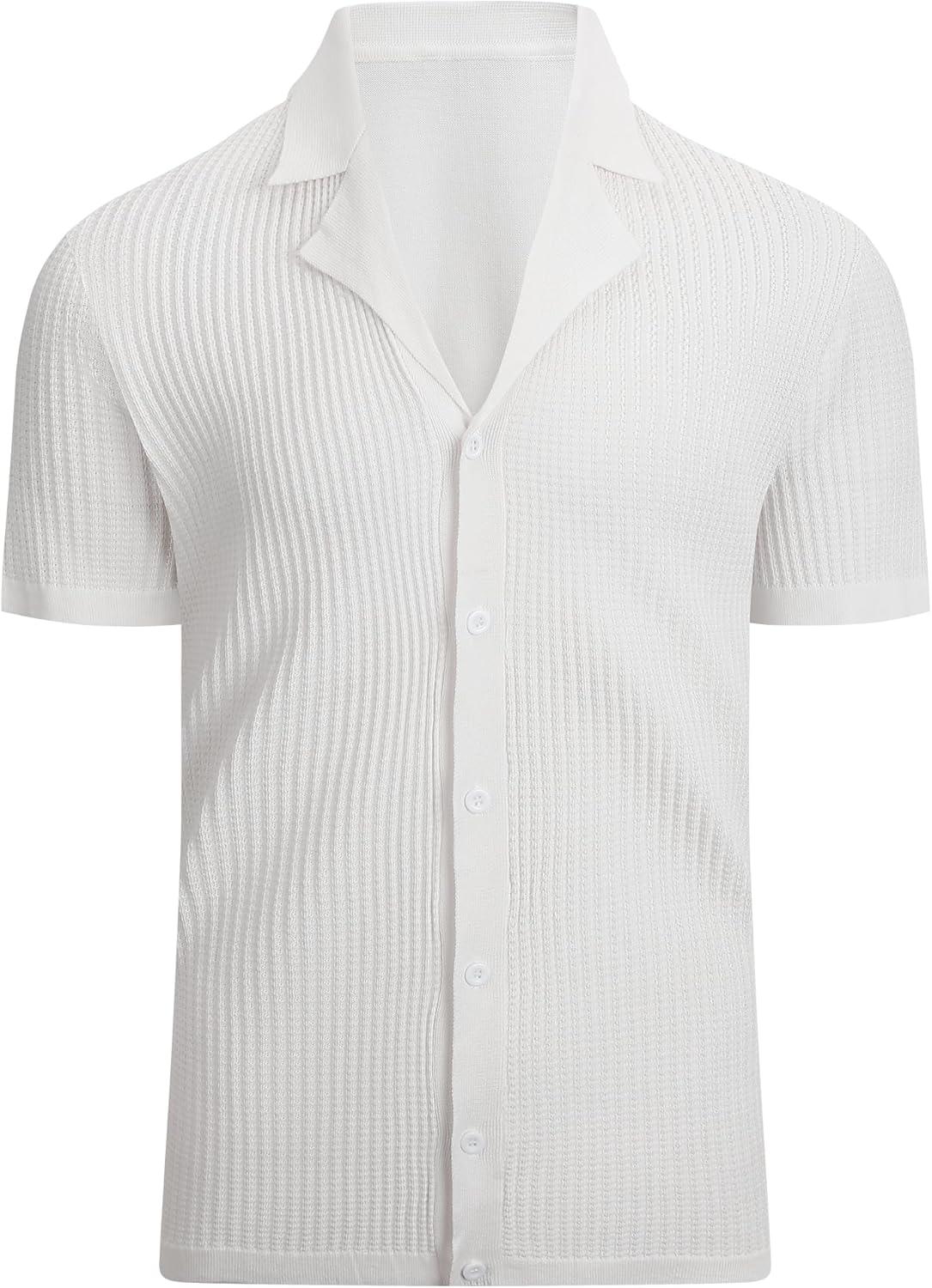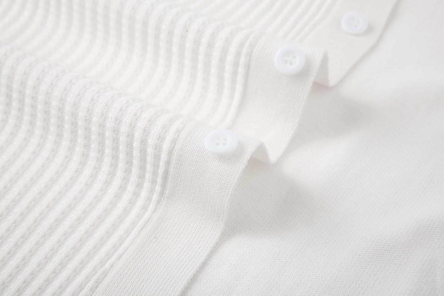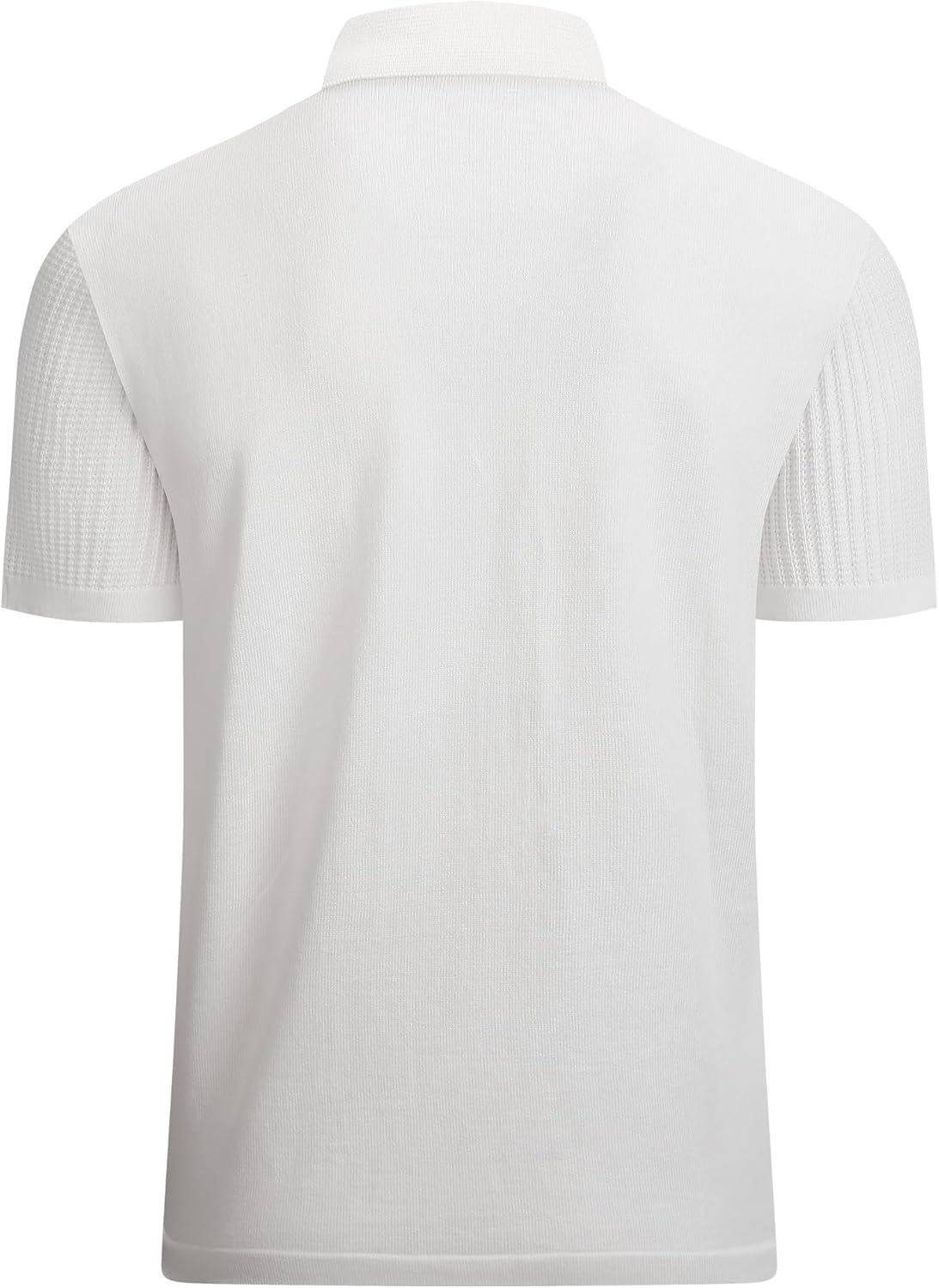 Alex Vando Mens Knitted Dress Shirts 8-Way Stretch Easy Care Solid Short Sleeve Shirt for Men(62 White)