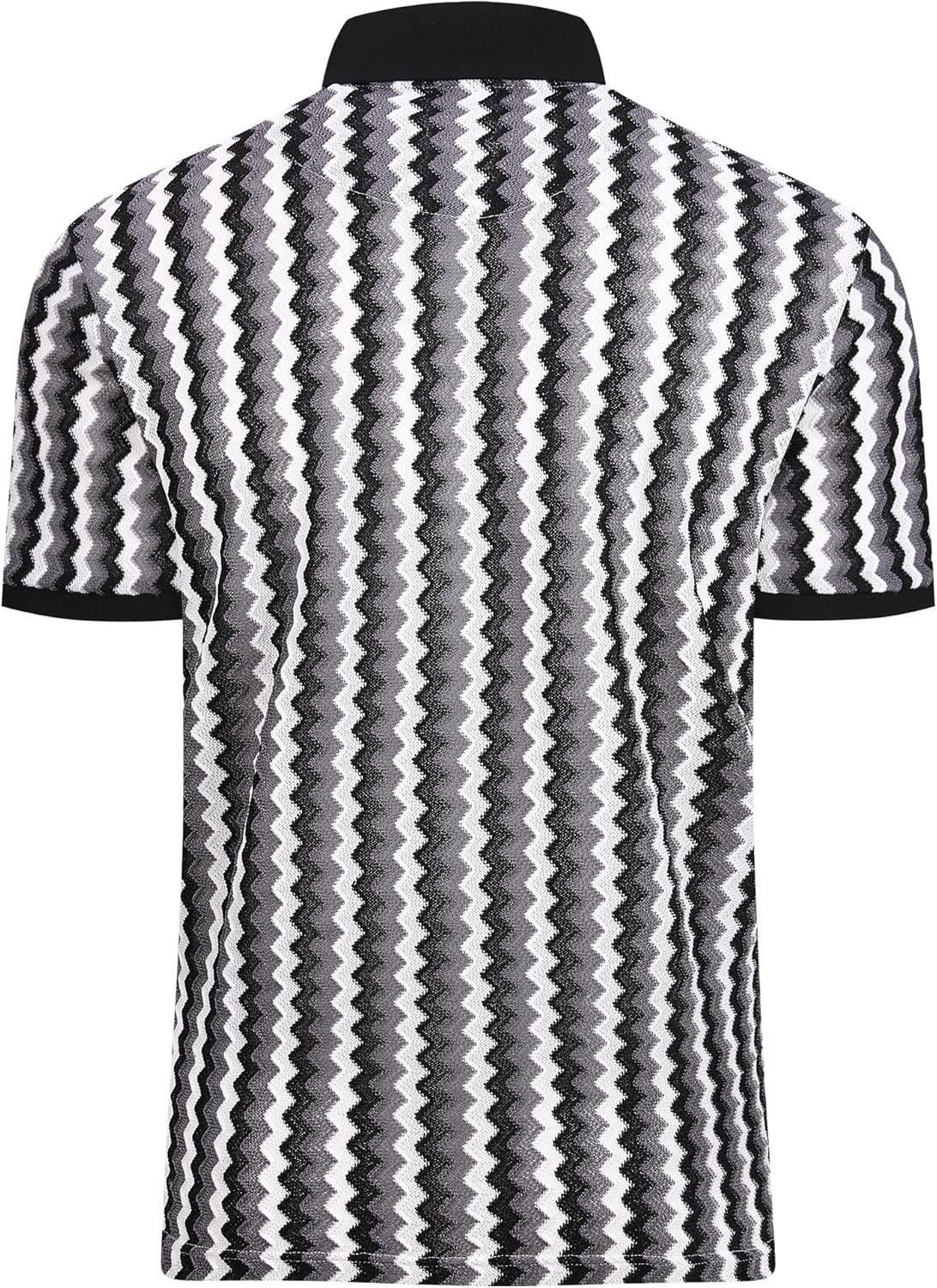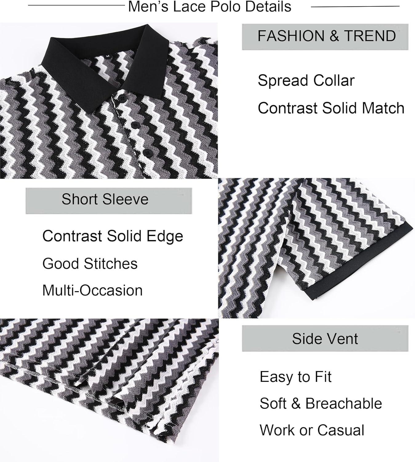 Alex Vando Mens Lace Polo Shirts Fashion Vibrant Short Sleeve Casual Shirts for Men(White Multi)