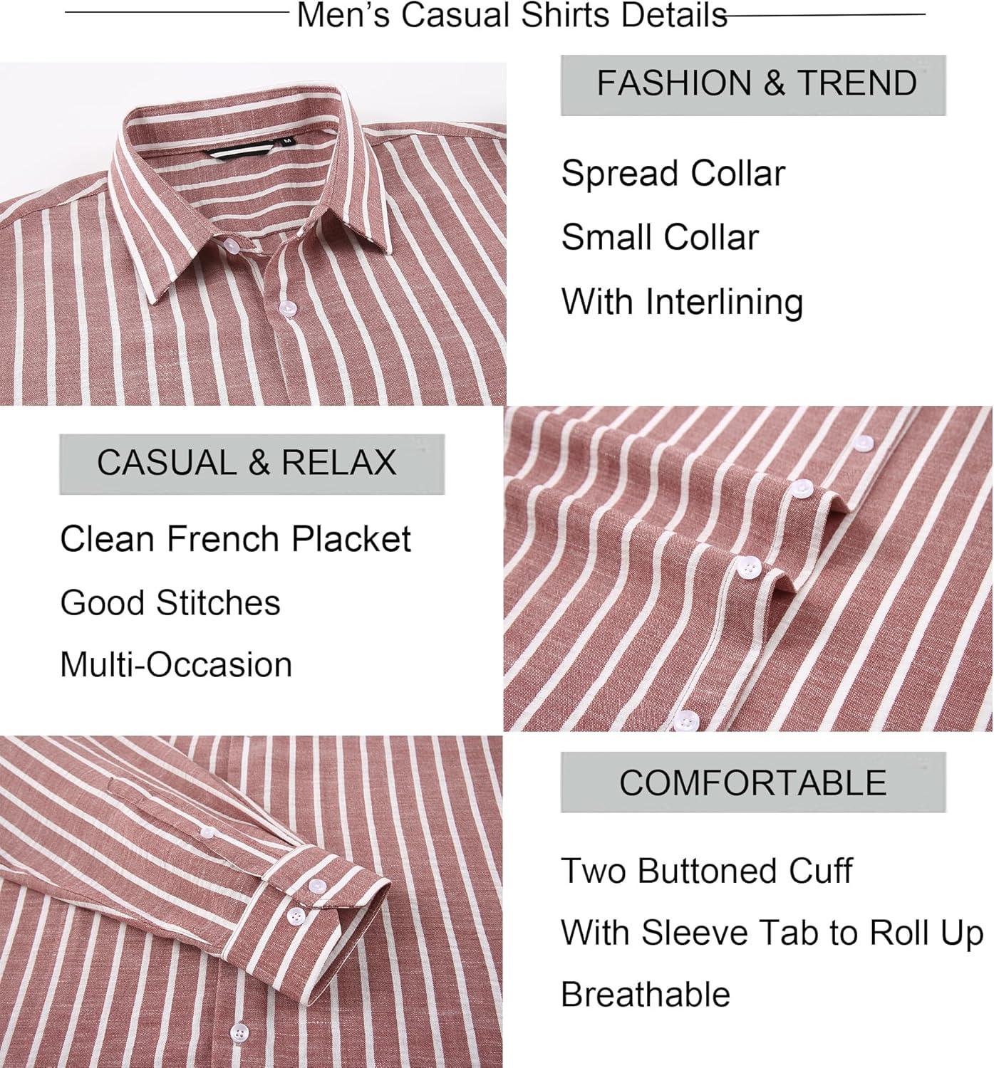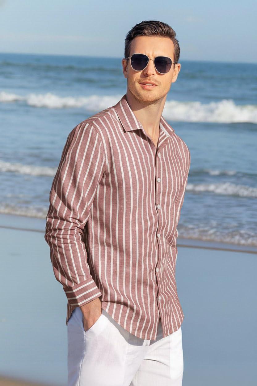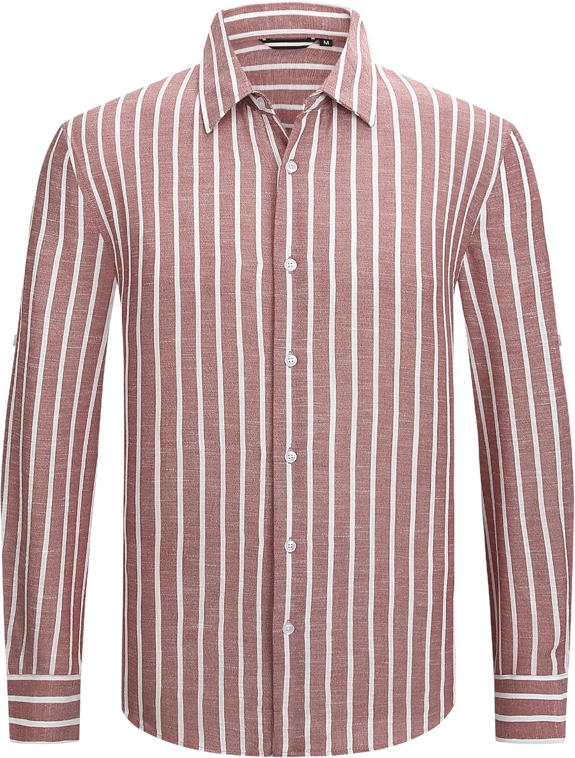 Alex Vando Mens Linen Long Sleeve Casual Button Down Shirt for Men Beach Wedding Shirts(Burgundy)