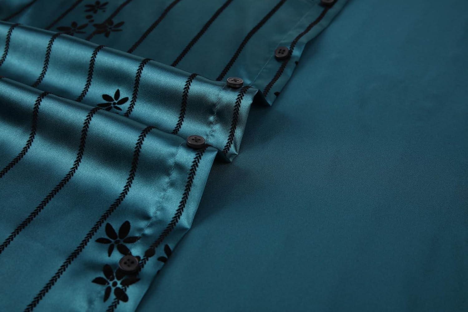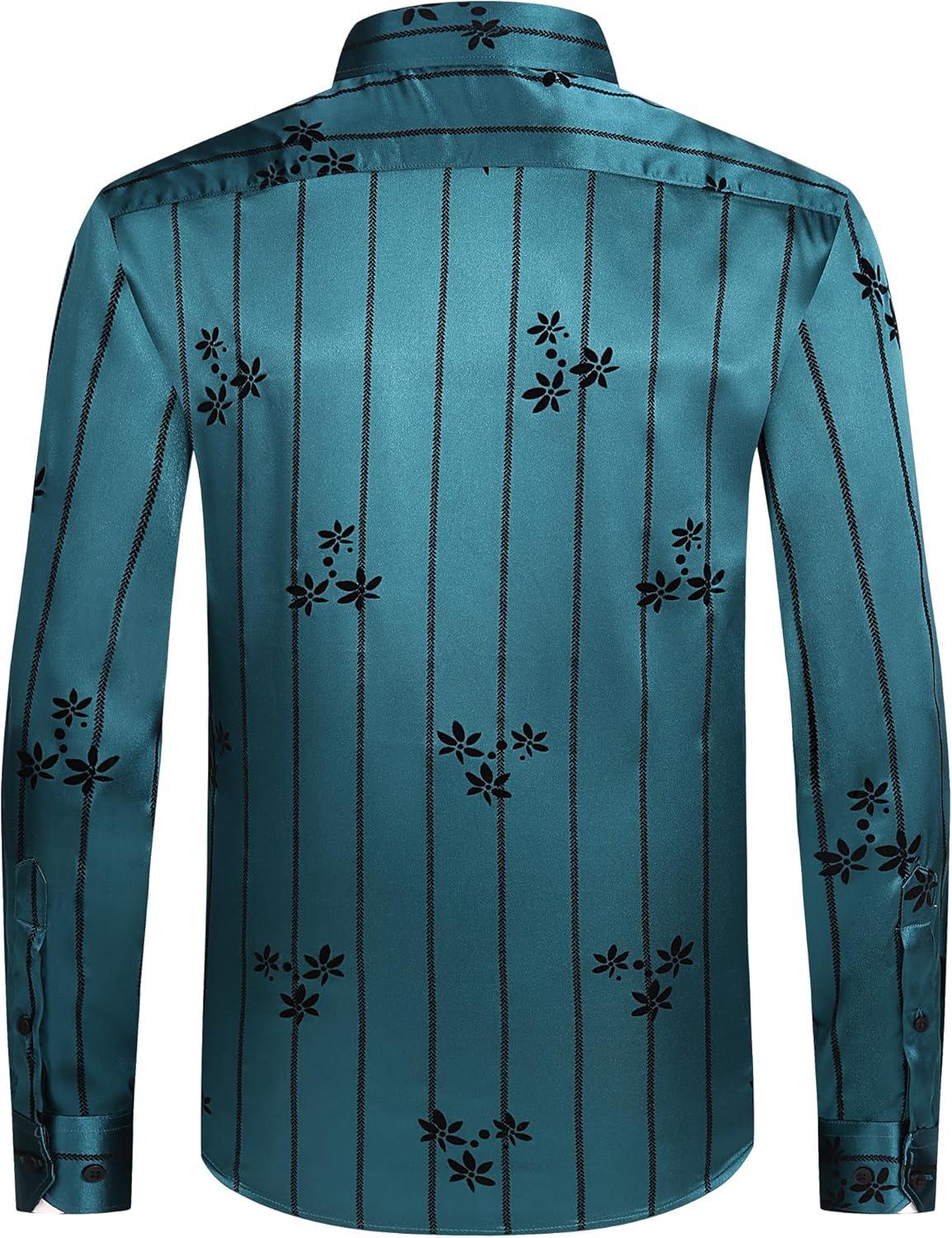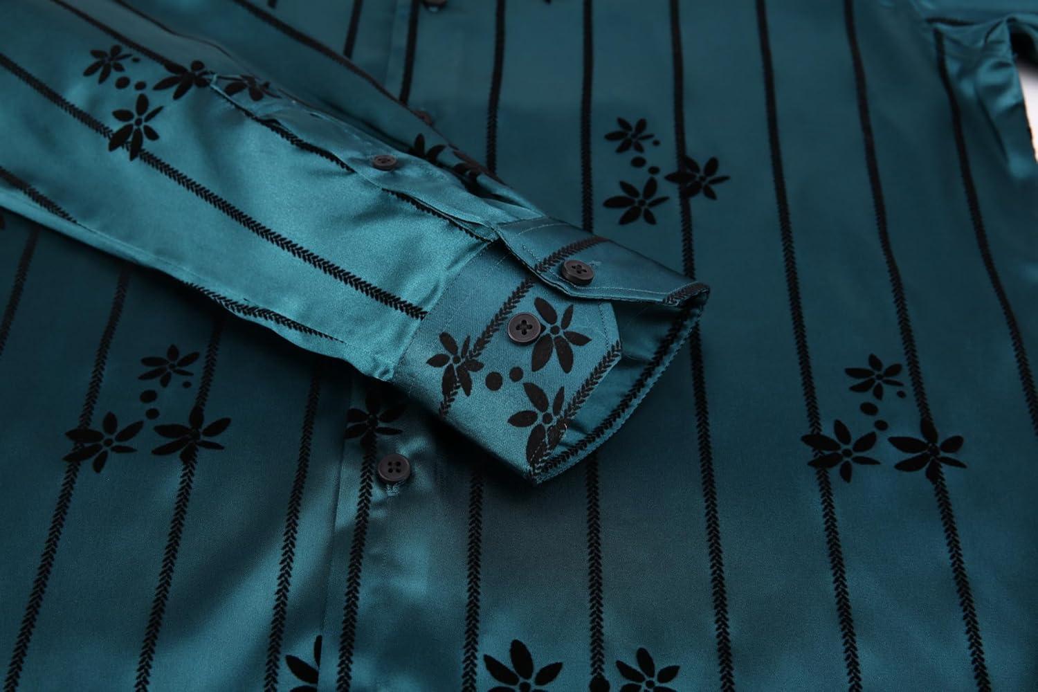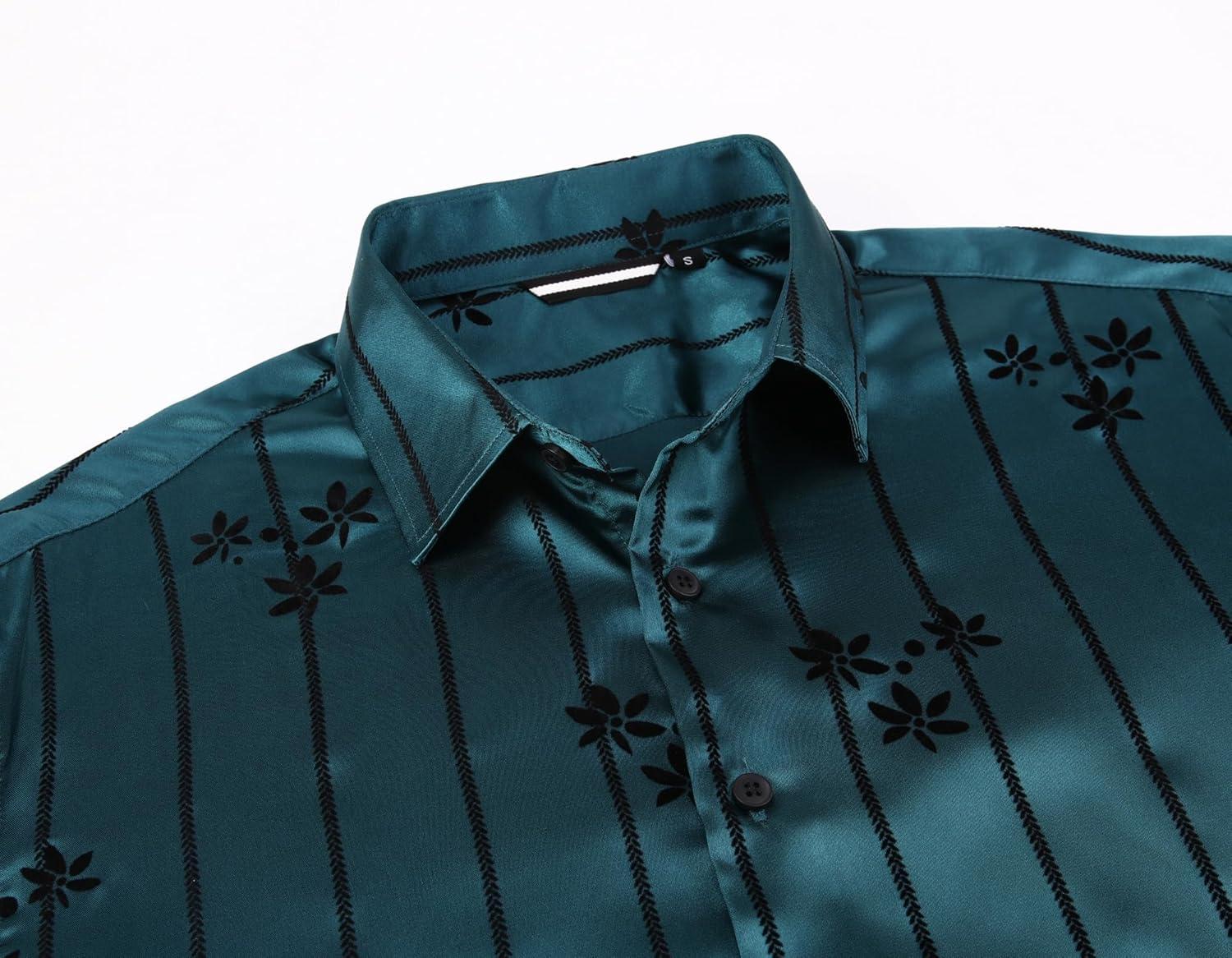 Alex Vando Men’s Luxury Flocked Satin Shirt Long Sleeve Stylish Button Down for Nightlife, Events, and Bold Fashion(Flower Green)